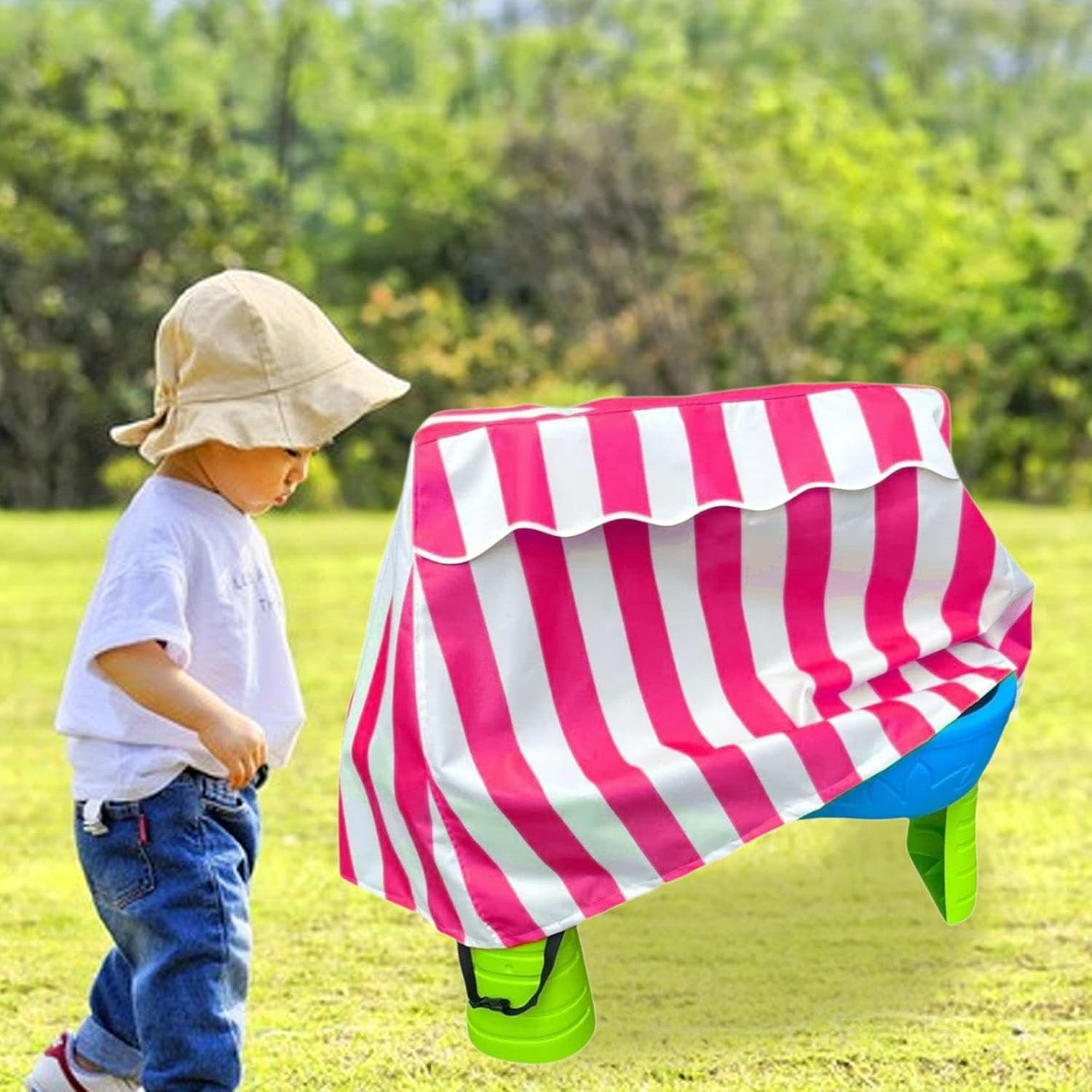 【Dimensioni della copertura del tavolo d'acqua】: le dimensioni della copertura del tavolo d'acqua sono 94 cm x 56 cm x 65 cm / 37,01 pollici x 22,05 pollici x 25,59 pollici, ottime per tavoli e altri tavoli d'acqua delle stesse dimensioni. Si prega di misurare le dimensioni del tavolo d'acqua prima dell'acquisto 【Facile da usare e riporre】: ci sono maniglie robuste sul lato della copertura del tavolo dell'acqua per una facile installazione e rimozione 【Facile da fissare】: la parte inferiore della copertura del tavolo d'acqua ha un cordino elastico e cinghie con fibbia fisse. Può essere regolata per ottenere una vestibilità aderente 【Antivento Forte】: La copertura per tavolo da gioco per sabbia e acqua da esterno è dotata di bottoni automatici e un cordino nella parte inferiore, che possono fissare la copertura protettiva alle gambe del tavolo da gioco per sabbia e acqua per evitare che spazzata via dal forte. 【Resistente alle intemperie e protezione completa】: la nostra copertura per tavolo d'acqua è realizzata in resistente tessuto Oxford impermeabile, che è robusto. Può fornire una protezione completa per il tavolo da gioco dei tuoi bambini. Può proteggere il tavolo d'acqua da pioggia, polvere, foglie, escrementi di uccelli e ecc. per mantenerlo asciutto e pulito