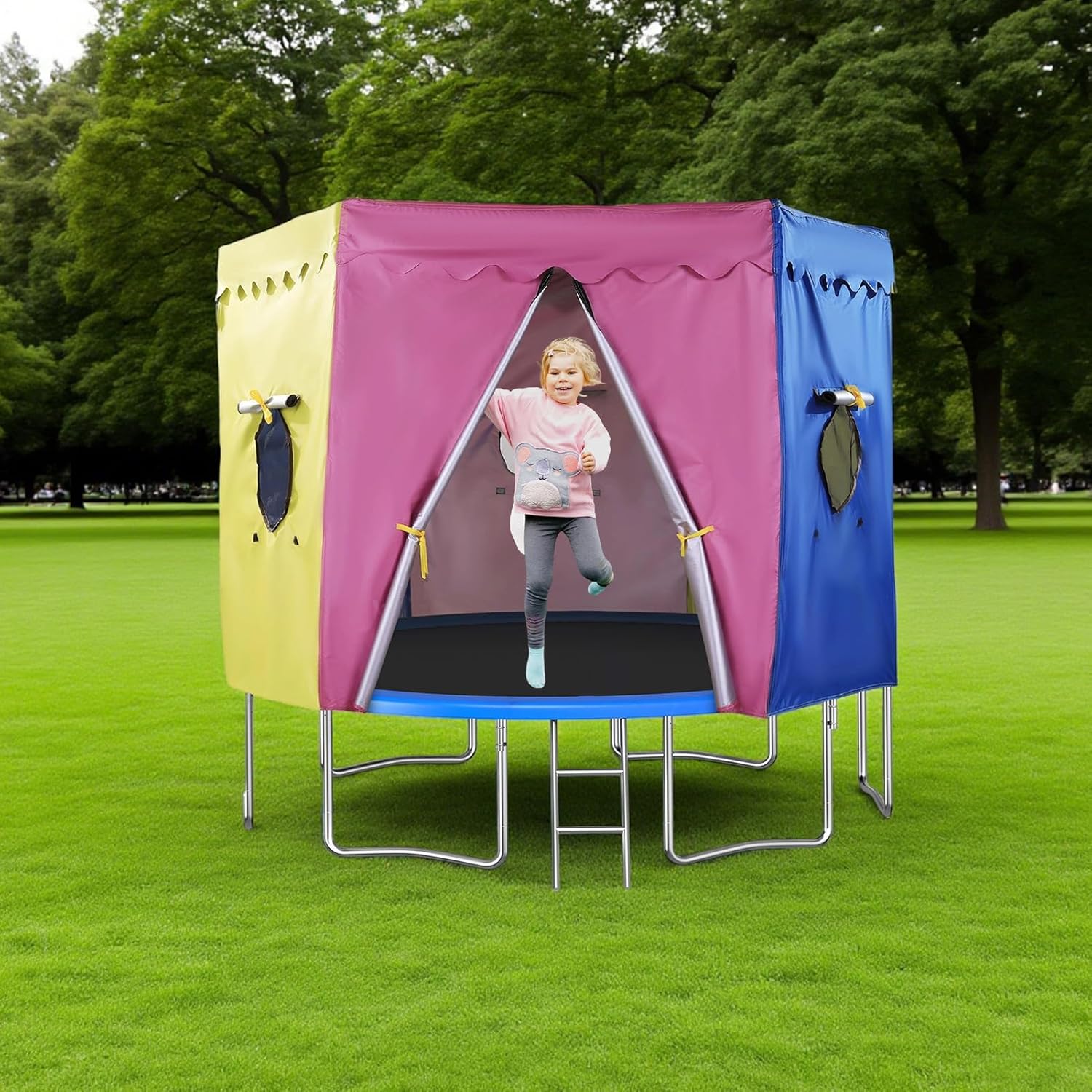 Affidabile funzionalità all'aperto: il tessuto Oxford ad alta resistenza garantisce resistenza agli strappi, resiste agli agenti ambientali e mantiene la struttura del trampolino a ritmo per un uso affidabile all'aperto Protezione completa: schermatura completa: la struttura chiusa blocca efficacemente la caduta delle foglie e le precipitazioni, garantisce sicurezza durante le attività all'aperto e minimizza gli intervalli di pulizia per un uso a lungo termine. Design salvaspazio: la struttura pieghevole piatta con chiusure rapide semplifica notevolmente il trasporto. Minimo ingombro durante lo stoccaggio senza attrezzature aggiuntive. Facile da usare: questa tenda per trampolino è realizzata con materiali avanzati che impediscono l'ingresso di acqua, mantengono le superfici asciutte e bloccano il 99% dei raggi UV, prolungando efficacemente la durata del trampolino. Aggiornamento del flusso d'aria: rete ad alta densità Fens-ter nella tenda del trampolino favorisce il flusso d'aria, filtra i raggi UV e mantiene la freschezza degli interni. Offre un clima di gioco sempre fresco e piacevole.