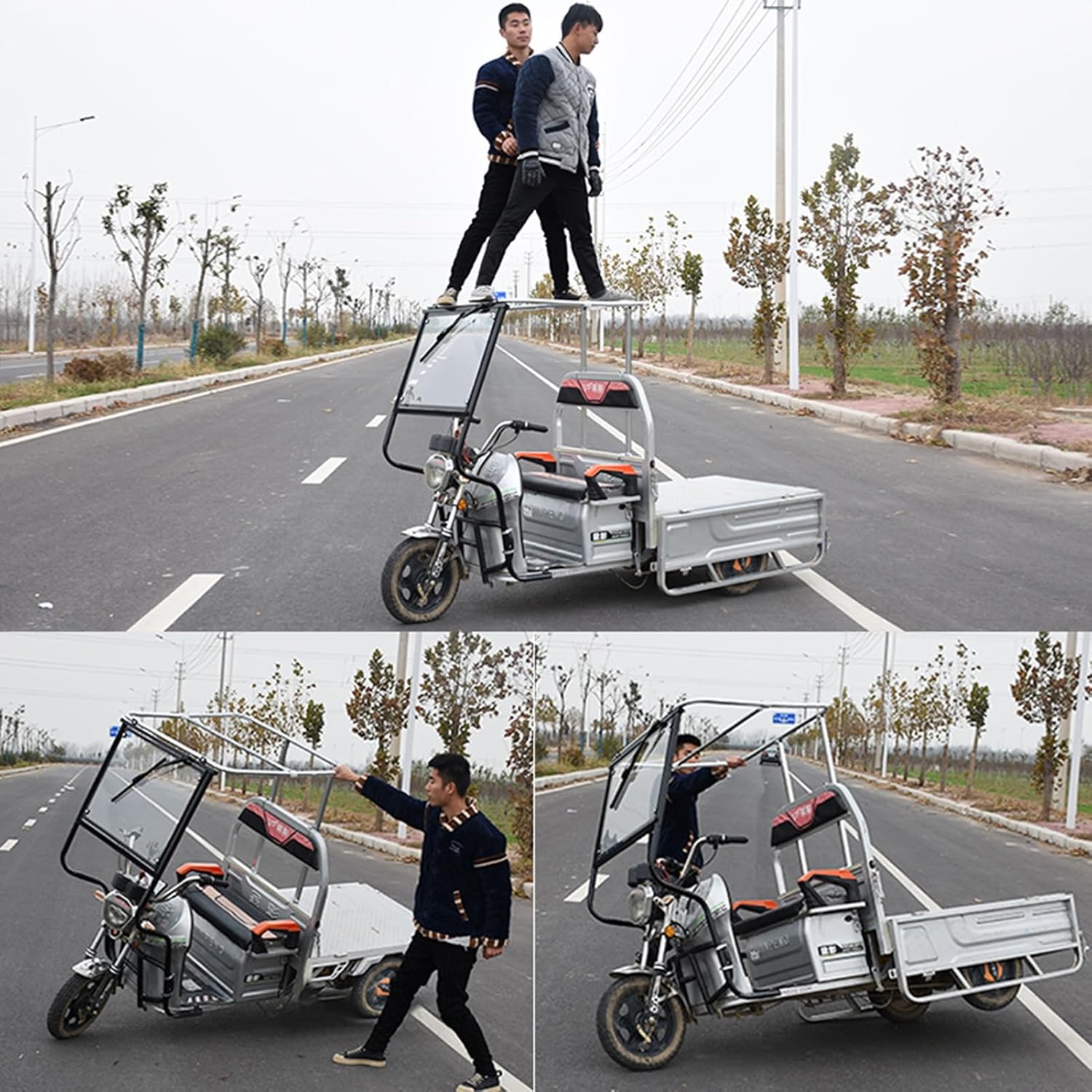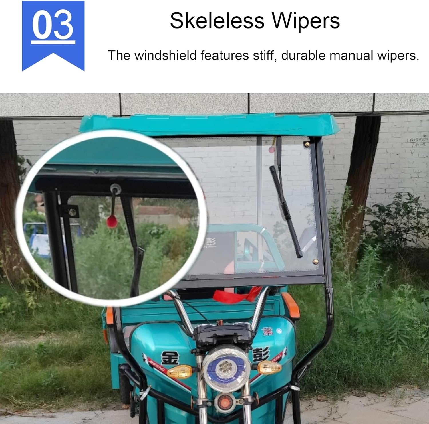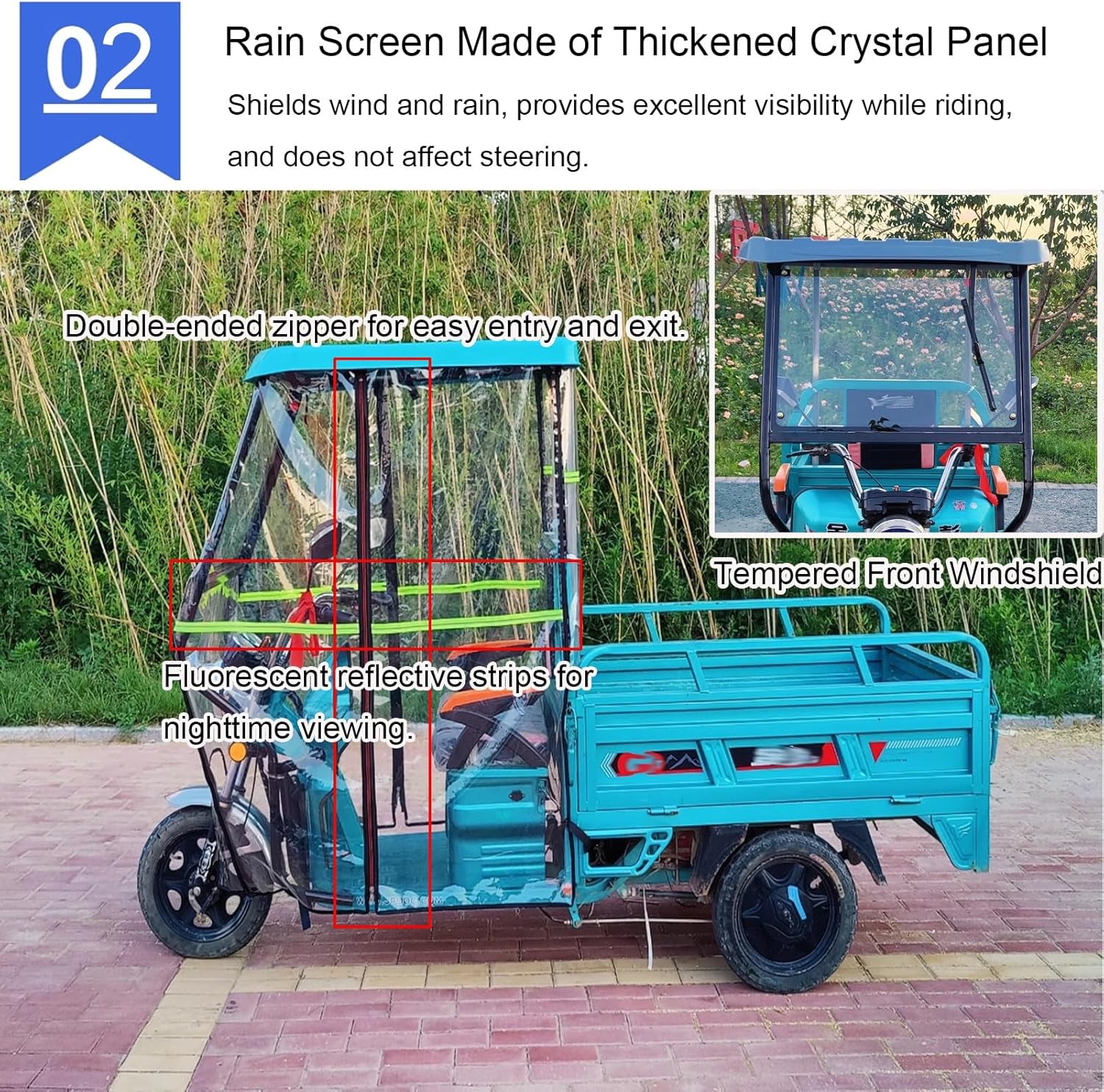 Parapioggia: realizzato in tessuto Oxford e parabrezza anteriore temperato, blocca efficacemente la pioggia in caso di forti acquazzoni, garantendo che carico e passeggeri rimangano asciutti. Riduce anche la luce solare diretta per un maggiore comfort. La sua trasparenza garantisce un'ottima visibilità anche in caso di vento forte. Cerniere delle porte laterali: le porte laterali del tettuccio del triciclo per adulti sono dotate di cerniere a due vie che si arrotolano completamente, favorendo la circolazione dell'aria e facilitando l'entrata e l'uscita del ciclista. Tenda parasole: questa tettoia per triciclo è dotata di strisce riflettenti per una maggiore visibilità e sicurezza in condizioni di scarsa illuminazione. Il lunotto posteriore trasparente facilita il controllo degli oggetti riposti. Installazione rapida e senza attrezzi: l'installazione della copertura del triciclo è semplice e senza attrezzi grazie al suo sistema di fissaggio. È una soluzione pratica ed economica per la manutenzione del tuo triciclo. Taglie multiple: la nostra copertura per triciclo elettrico per carichi pesanti è disponibile in diverse dimensioni, appositamente progettata per una varietà di tricicli per adulti. Design universale per primavera, estate e autunno, per adattarsi a tutte le condizioni atmosferiche.