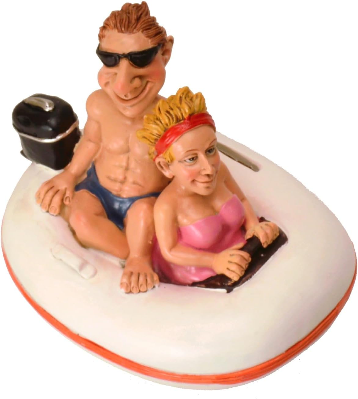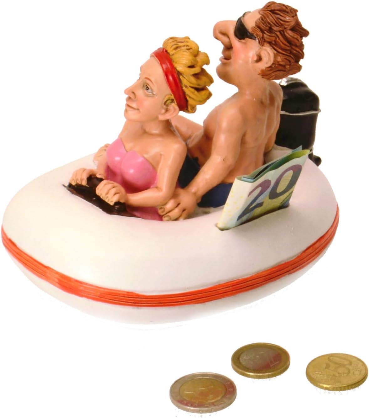 Fornitura: 1x paio nel salvadanaio del gommone. Con chiusura a vite sul fondo per una facile rimozione del denaro. Dimensioni: ca. 16 cm x 11 cm x 12 cm Materiale: poliresina vedere la descrizione del prodotto