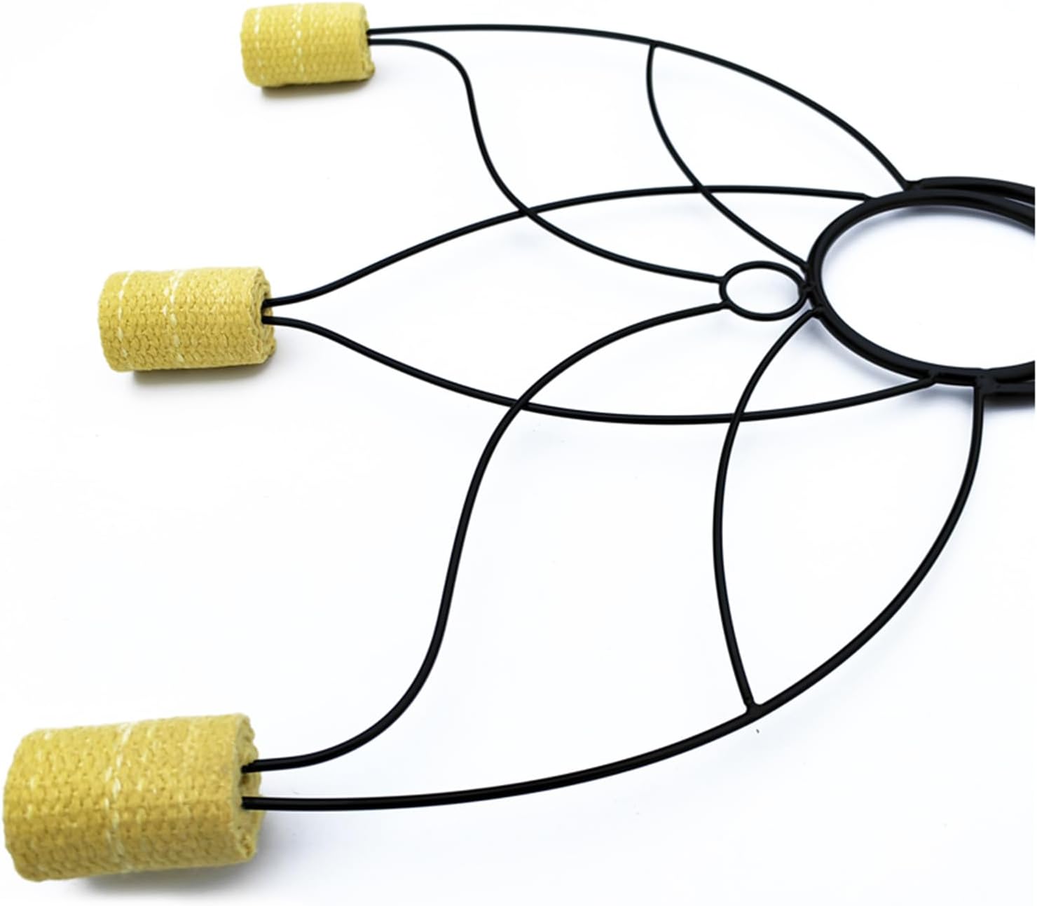 Larghezza ventola: 360 mm. Altezza ventola: 360 mm. Diametro anello maniglia: 3 5/8 pollici. Processo di produzione: diametro del filo 3 mm e 7 mm. Il diametro della maniglia funge da telaio Peso: 325g Costruzione durevole: il design saldato interamente in acciaio garantisce longevità e resistenza Leggero ed equilibrato: maneggevolezza con un design completamente bilanciato per giri e movimenti migliori Finitura elegante: verniciato a polvere nero per un look elegante e l'illusione del fuoco galleggiante