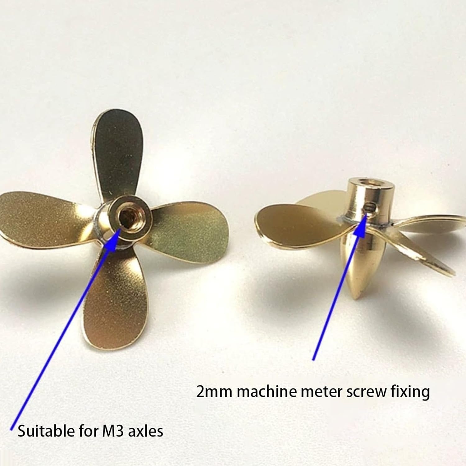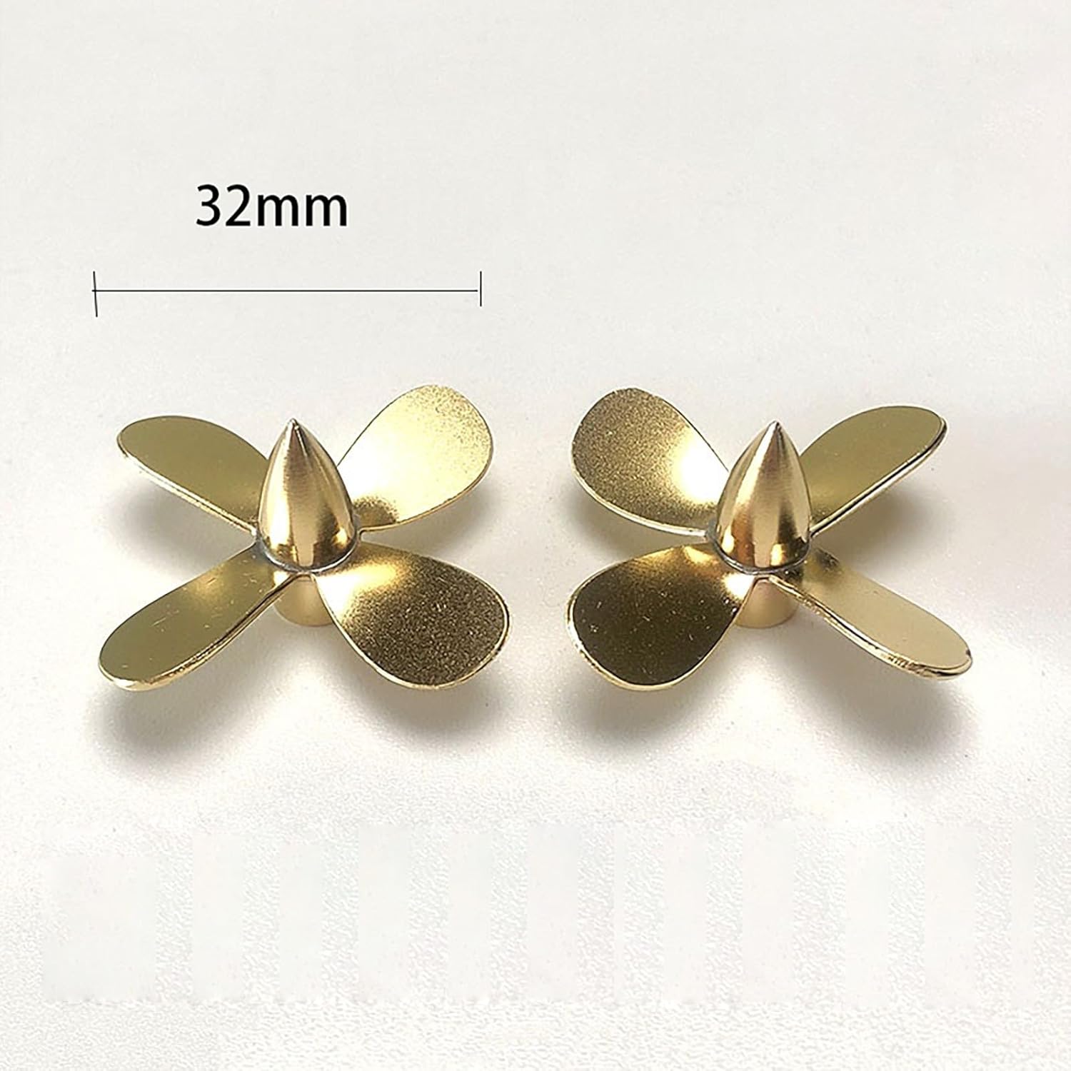 Eliche realistiche in ottone da 32 mm con aspetto a pale piegate for modelli di sottomarini Include un'pagaia CW e una CCW for configurazioni a doppio albero bilanciate Robusta struttura in ottone saldato in stagno for una lunga durata Foro for albero M3 compatibile con alberi di trasmissione RC filettati da 3 mm Fissato con viti senza testa for un montaggio stabile e affidabile