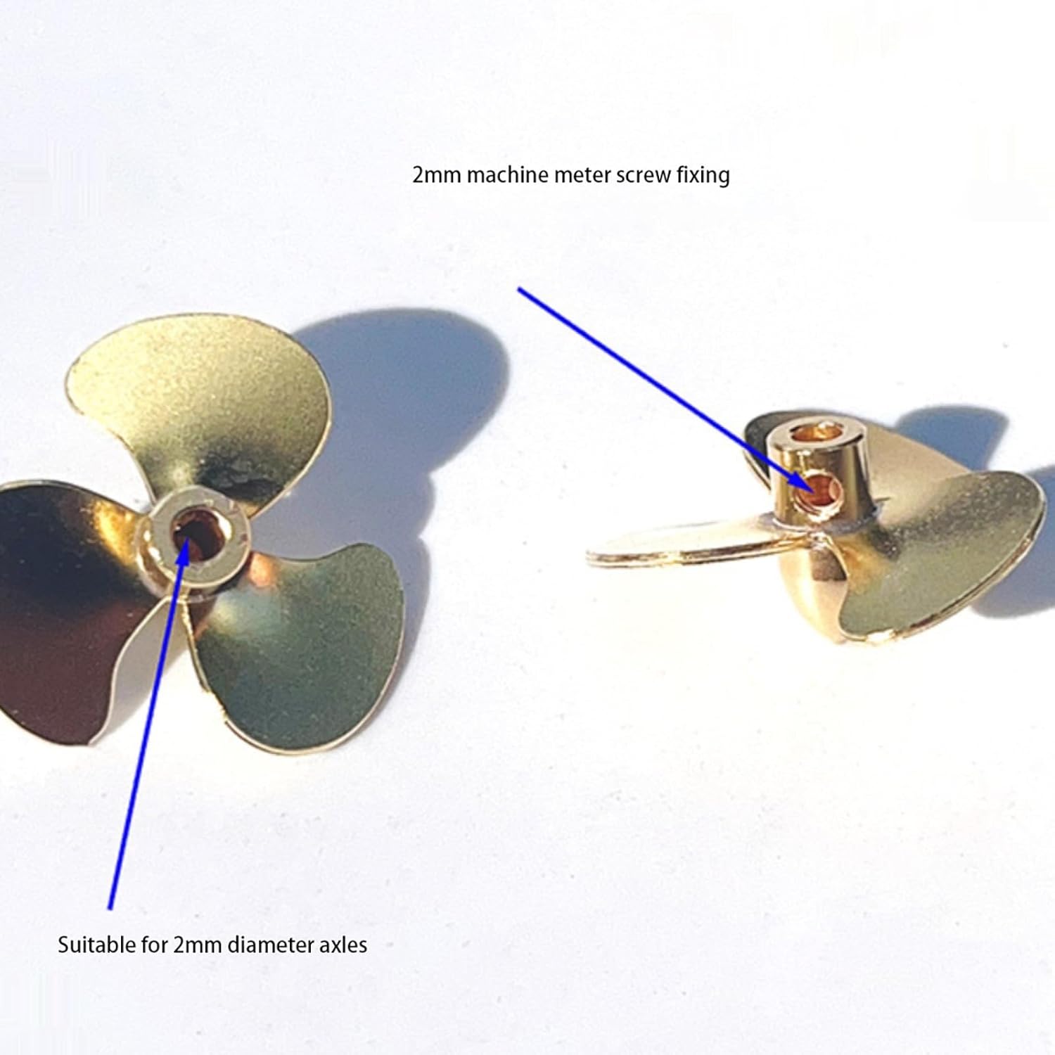 Coppia di eliche in ottone autentiche for i modelli di motovedette sovietiche 1204M Include sia la rotazione CW che CCW for configurazioni a doppio albero Il design a tre pale da 19 mm garantisce una spinta stabile ed efficiente Costruzione saldata a stagno con fissaggio a vite da 2 mm Aggiornamento o sostituzione perfetta for repliche di navi RC storiche