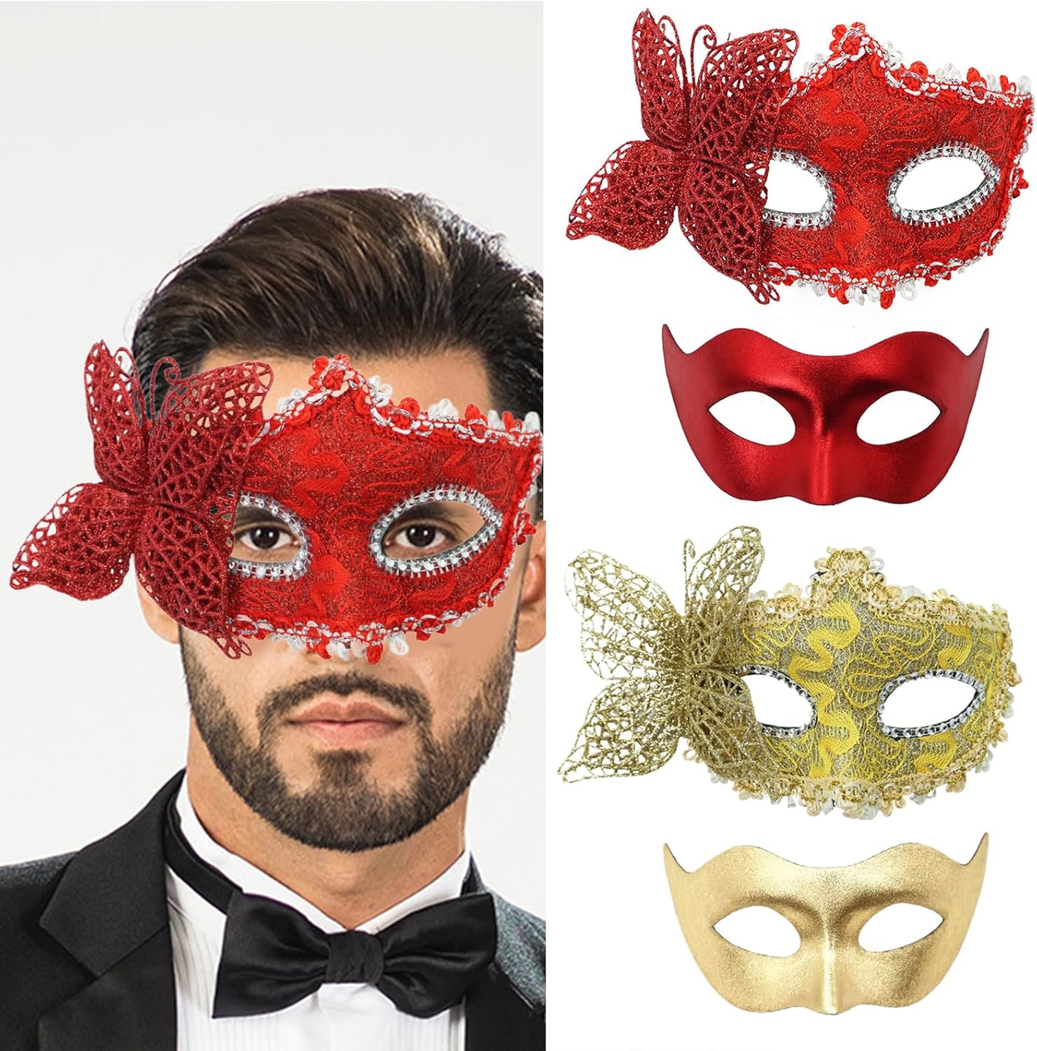Coppia Masquerade Coppia Masquerade Occhio Mezzo Viso Halloween Costume Per Donne Uomini Halloween Matrimonio Prom Caratteristiche: Migliora il tuo costume in maschera con il nostro costume di Halloween dipinto a mano con pp, con donne Farfalla Masquerade Half Face e Men Metallitc Masquerade Half Face aggiungendo un tocco di mistero e fascino al tuo costume da festa. Progettato pensando al comfort, questo occhio in maschera dipinto a mano presenta una cinghia regolabile per adattarsi a varie dimensioni della testa, non troppo stretto o allentato. Ideale per uomini, donne, coppie, amanti, marito e ampio, individui di moda e appassionati di cosplay che amano mostrare la loro individualità e fascino, soprattutto quelli che partecipano a feste in maschera. Ampiamente usato per feste in maschera, Halloween, eventi cosplay, feste a tema, matrimoni, balli e discoteche, aggiungendo un tocco di misterioso e rendendoti al centro dell'attenzione. Questa coppia in maschera è un accessorio essenziale per costume in maschera per chiunque cerchi di distinguersi in qualsiasi riunione di festival, assicurando che tutti gli occhi siano puntati su di te. Specifiche tecniche: Componente: PVC; Colore: Nero; Rossore; Oro; Argento; Dimensioni da uomo: circa 19 x 9 cm. Dimensioni da donna: circa 22 x 12 cm. Peso: circa 50 g. La confezione include: 2 pezzi in maschera. Nota bene: Si prega di considerare un margine di errore di 0-1 cm a causa della misurazione manuale. Assicurati di non avere un problema prima di fare un'offerta. 2. L'immagine potrebbe non rispecchiare il colore reale a causa delle diverse impostazioni dei monitor