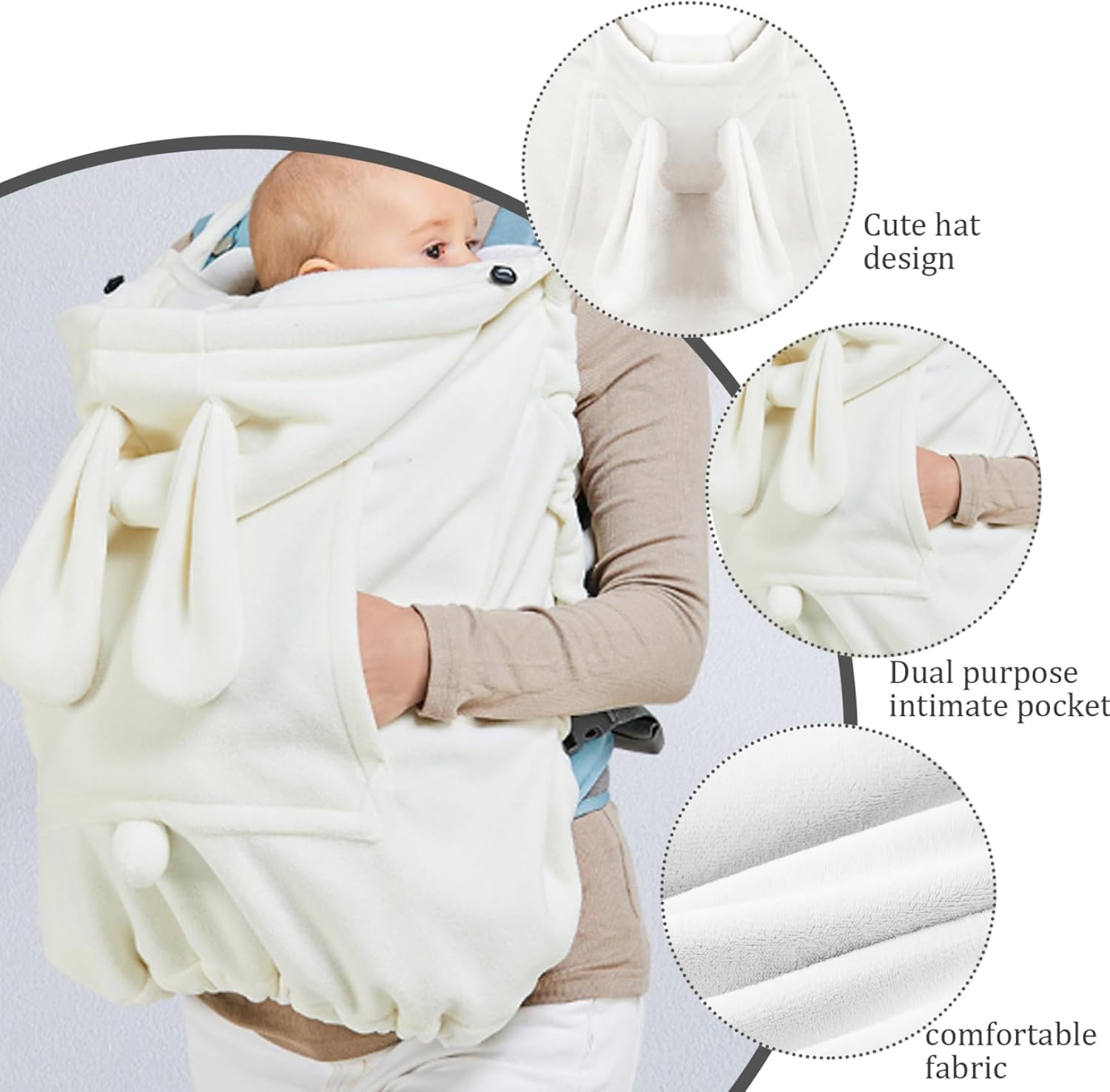 Morbido, antivento e caldo: realizzato con materiali in poliestere morbido e di qualità, la nostra copertura per offre un ambiente accogliente e antivento per il tuo bambino..Che tu stia passeggiando nel parco, facendo commissioni o godendoti attività all'aria aperta, questa copertura protegge in modo ottimale dai venti freddi, mantenendo il tuo bambino al caldo e contento. Versatile e facile da usare: questa copertura per è progettata per adattarsi alla maggior parte dei marsupi e delle carrozzine..Viene fornito con un mantello con cappuccio che può essere facilmente drappeggiato sul, assicurando che il tuo piccolo rimanga protetto dal o dal sole..Il design pratico consente un utilizzo rapido e senza problemi, rendendolo un accessorio essenziale per le mamme in movimento. Design carino da coniglio: avvolto nel tenero abbraccio di un simpatico coniglio, il tuo piccolo avrà un aspetto assolutamente affascinante e starà comodo ovunque tu vada..Il design giocoso aggiunge un tocco di fantasia alle uscite del tuo bambino, rendendo ogni avventura ancora più piacevole. Tasca e lavabile: la tasca frontale è progettata per mantenere le mani calde e conservare le cose quotidiane..La nostra copertura per è lavabile in lavatrice, il che la rende facile da pulire e mantenere, questa copertura rimarrà fresca e vibrante anche dopo molteplici utilizzi..La sua costruzione garantisce un comfort duraturo per il tuo piccolo. Perfetto per mamme e bambini: la nostra copertura per è il regalo perfetto, adatta per i viaggi, la cura quotidiana e varie attività all'aperto..È un gesto premuroso che dimostra la tua cura e considerazione per il benessere sia del bambino che dei genitori..Mostra il tuo amore e la tua cura con questo delizioso che adoreranno sia le mamme che i bambini.