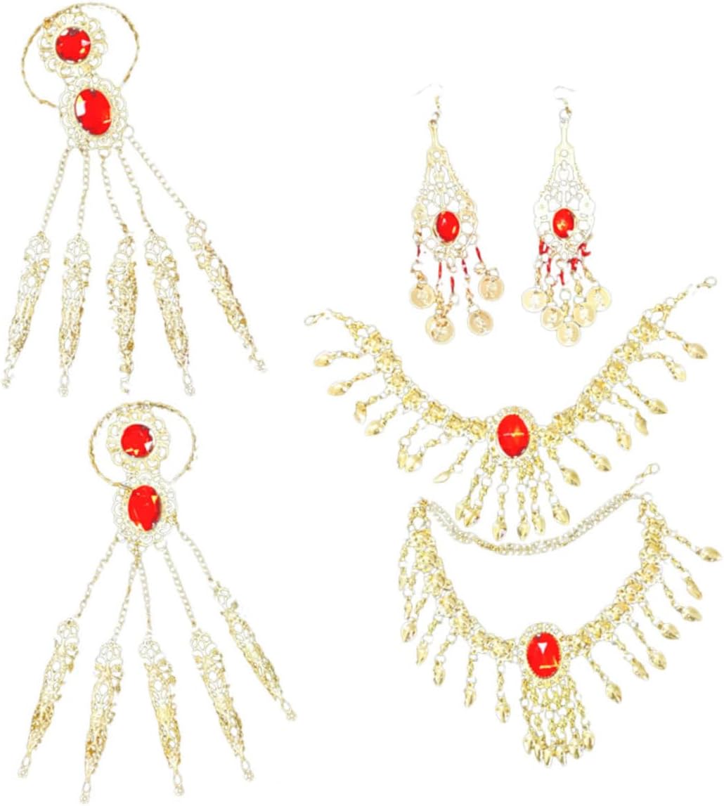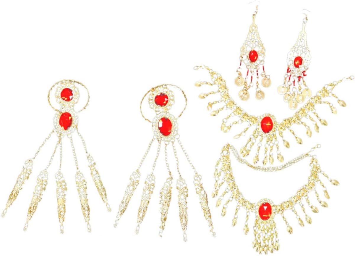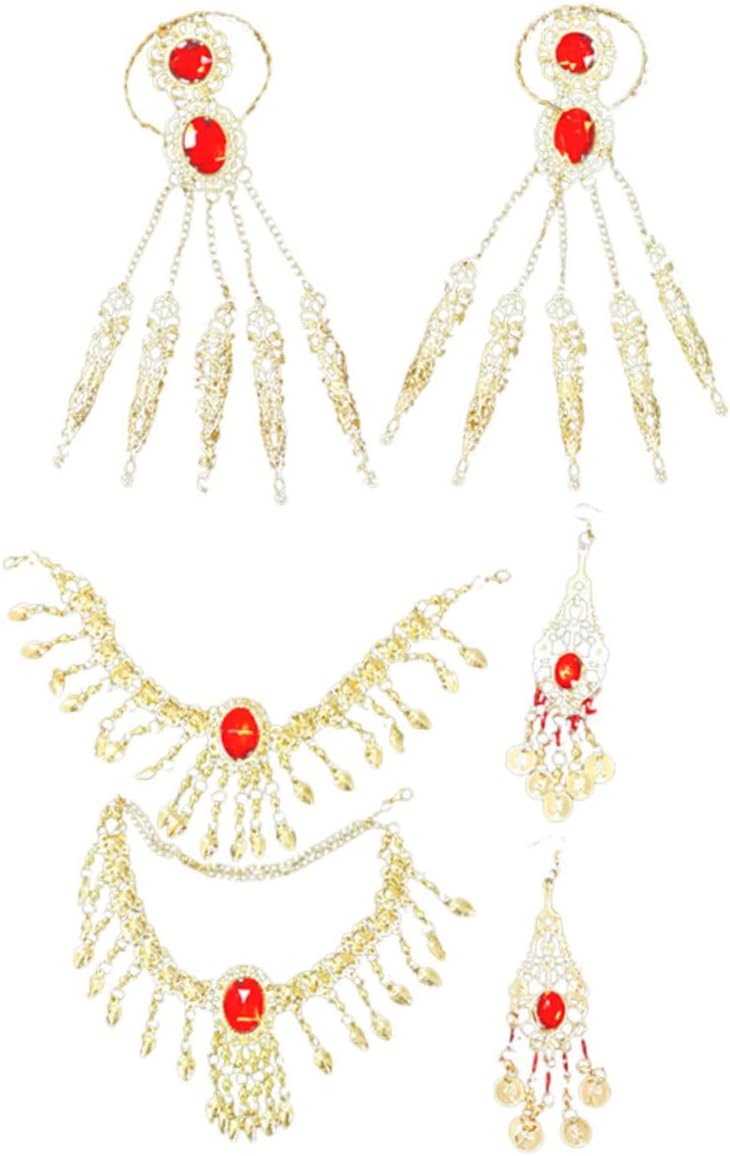 dei 3 x catene per la testa 3 x collane 3 x paia di orecchini 3 x paia di braccialetti Caratteristiche -Colore: catena a mano -Materiale: orecchini e bracciali in lega e acrilico -Dimensioni: 15,00X15,00X8,00 cm/5,89X5,89X3,14 pollici (catena per la testa) Catena - Caratterizzati da un design chic e da una lavorazione raffinata, questi orecchini pendenti possono darti un temperamento diverso. -Puoi regalarlo agli innamorati in occasioni speciali, regalando loro una piccola collana a con motivo danzante. -Questo set di gioielli è leggero e delicato sulla pelle, sicuro e comodo da indossare a lungo. Orecchini. -Un set di fantastici accessori per costumi, che mettono in risalto il tuo aspetto e ti rendono un braccialetto per la danza del ventre molto attraente. -Set di gioielli delicati e brillanti, un set di splendidi accessori da abbinare a diversi costumi da ballo e collane da ballo. Descrizione della merce braccialetto di danza del ventre E questo set di gioielli è un accessorio perfetto per le esibizioni di danza. Gioielli per donne Questo set di gioielli creativo e squisito è realizzato con materiali delicati e resistenti all'usura, durevoli e comodi da indossare, emette suoni piacevoli quando lo scuoti