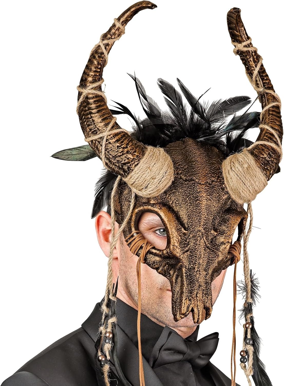 Descrizione prodotto Accattivante copricapo a forma di teschio con corna lunghe. Il teschio è abbondantemente decorato con nastri di iuta, corde in finta pelle, perline in legno e plastica e piume di diversi colori. Gli elastici larghi garantiscono una presa sicura sulla testa. L'accessorio perfetto per costumi Voodoo, sciamano, sciamano, guerriero, guerriero, barbaro o barbarino. Per un più confortevolecomfort, dovresti attaccare la schiuma all'interno del cranio, poiché è piuttosto dura. Quando si indossa una parrucca, questa misura è eliminata. Colore: Bronzo. I colori possono variare dall'immagine dell'articolo. Materiale: Similpelle: 100% poliestere. Corda: 100% iuta. Maschera, perline 1: 100% plastica Perle 2: 100% legno Piume. Contiene parti non tessili di origine animale. Troverete molti accessori e costumi sul tema Voodoo nel nostro negozio. Avviso di sicurezza Attenzione! Non adatto a bambini di età inferiore a 3 anni, contiene pezzi piccoli che potrebbero essere ingeriti. Pericolo di soffocamento. Sorveglianza per adulti