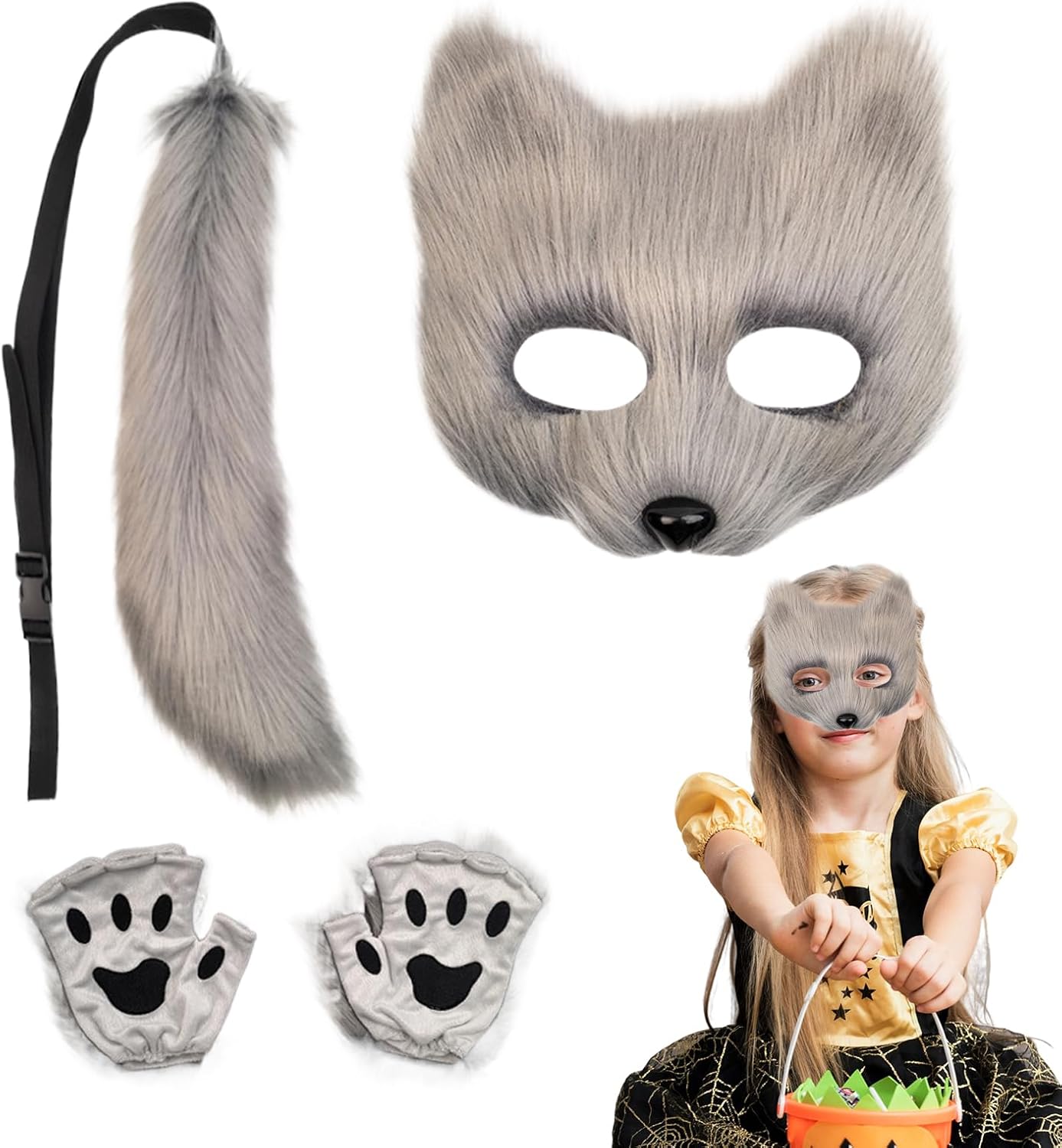 Solleva il look con il nostro lussuoso kit di copertura per il viso da lupo! Non facile da deformarsi, facile da indossare e con un design regolabile, questo accessorio versatile aggiunge divertimento a qualsiasi evento. per aggiungere un tocco di stravagante e stile a qualsiasi outfit. Specifiche: Materiale: piuma simulata Dimensione del prodotto: Copertura del viso: circa 19,5x19 cm/7.68x7,48 pollici Lunghezza coda: circa 40 cm/15,75 pollici Lista imballaggio: Copertura della faccia della *1 Tail*1 Guanti*2