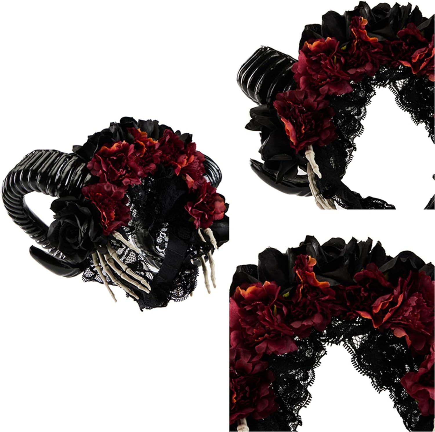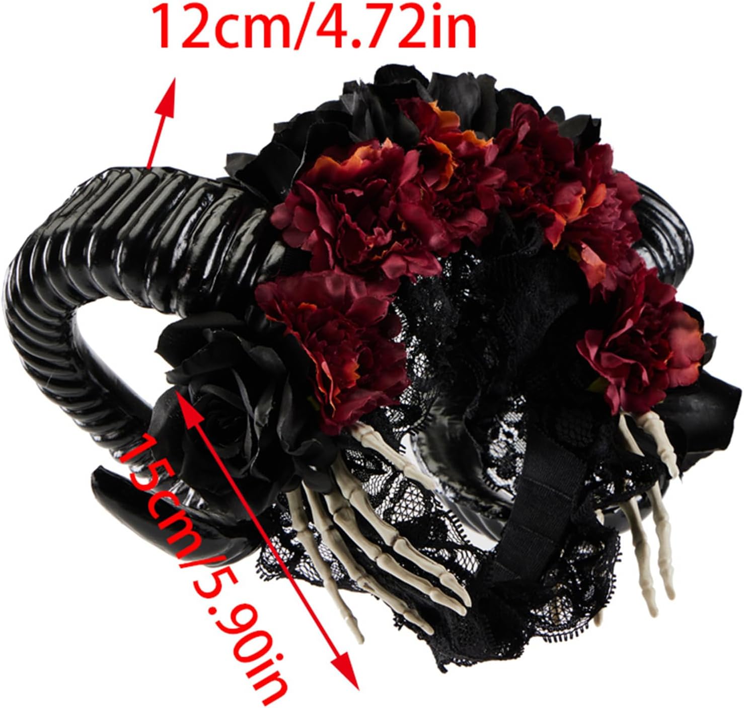 Copricapo gotico per Halloween, cosplay, accessorio unico per feste che esprimono il tuo fascino Caratteristiche: e Fasce uniche con fiore, corno e mano teschio, esprimendo il tuo personale Corno di corna per dare un look gotico e rendere la vostra acconciatura più attraente alle feste. Ottimo strumento per lo styling dei capelli per donne, bambini, ragazze, per mostrare il tuo fascino con questa fascia per capelli. Per varie occasioni, per Halloween, Natale, cosplay, feste a tema, compleanni, carnevale e altre feste di trucco. Molteplici occasioni, per feste in maschera, Natale, Halloween, cosplay, giocattoli, feste di carnevale, balli, regali, costumi fotografici, ecc. Ogni copricapo è accuratamente realizzato a mano, prestando attenzione e consistenza, puoi condividere le corna gotiche con tutta la famiglia. Specifiche tecniche: Composizione: Resina Colore: nero. Dimensioni: circa come da immagine. Quantità: 1 pezzo. La confezione include: 1 fascia per capelli. Nota: Senza confezione al dettaglio. Transizione: 1 cm = 10 mm. Si prega di considerare un margine di errore di 1-3 cm dovuto alla misurazione Si prega di assicurarsi che non sia un problema prima di effettuare l'ordine. A causa della differenza tra i diversi monitor, l'immagine potrebbe non rispecchiare il colore reale dell'articolo.