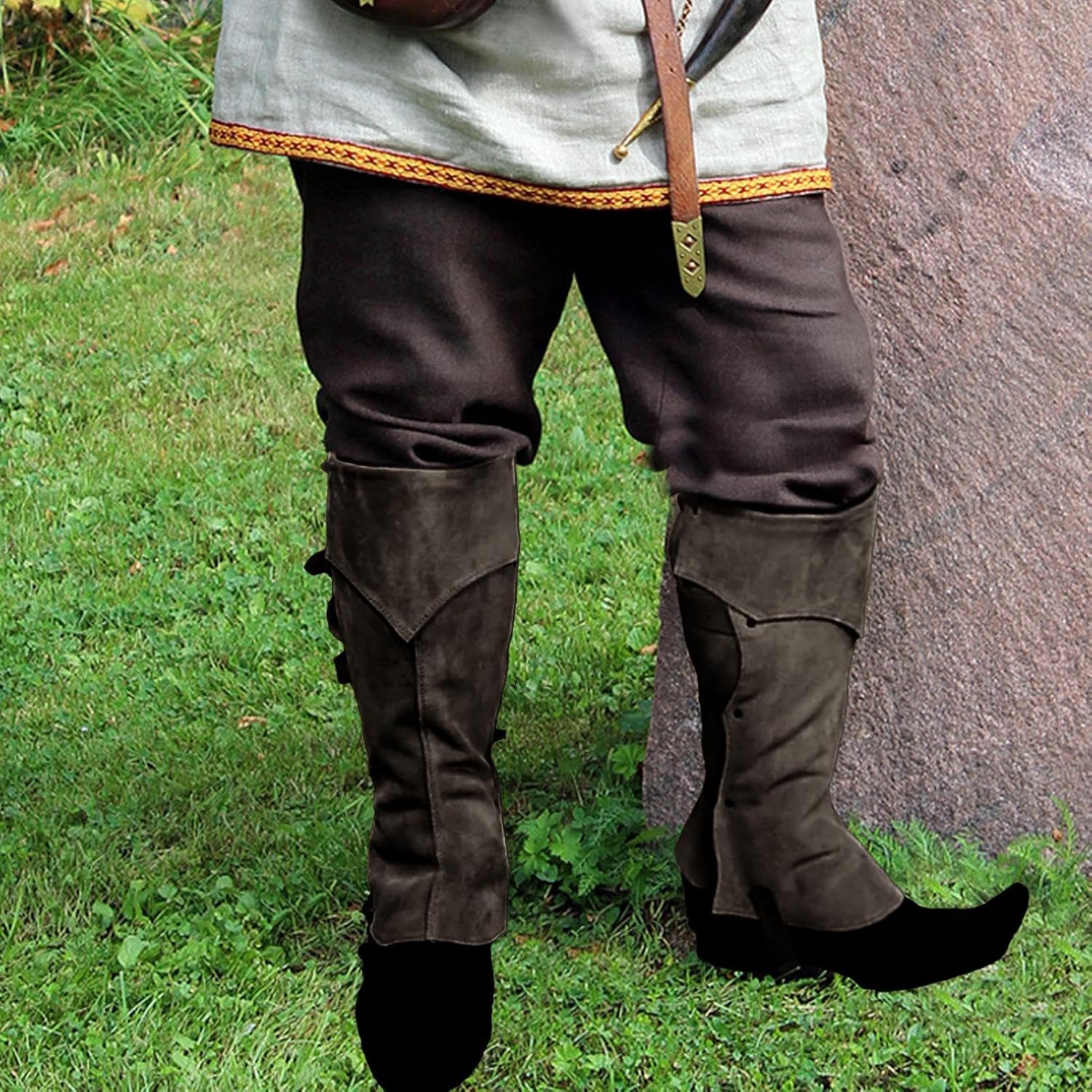 Trasforma l'outfit in pochi secondi con questi copristivali da pirata alti fino al ginocchio realizzati in pelle di alta qualità. Queste coperture sono adatte a chiunque e possono essere riposte ovunque. Perfetto per eventi di Halloween e Natale o per l'uso quotidiano. Fai una dichiarazione senza introdurre nuove scarpe: basta infilare queste fodere sopra i tuoi stivali preferiti. Specifiche: Nome: copri stivali medievali Colore: nero, marrone, giallo Materiale: Peso: circa 280 grammi Circonferenza polpaccio: elastico regolabile Lista imballaggio: 1 paio di copri stivali medievali