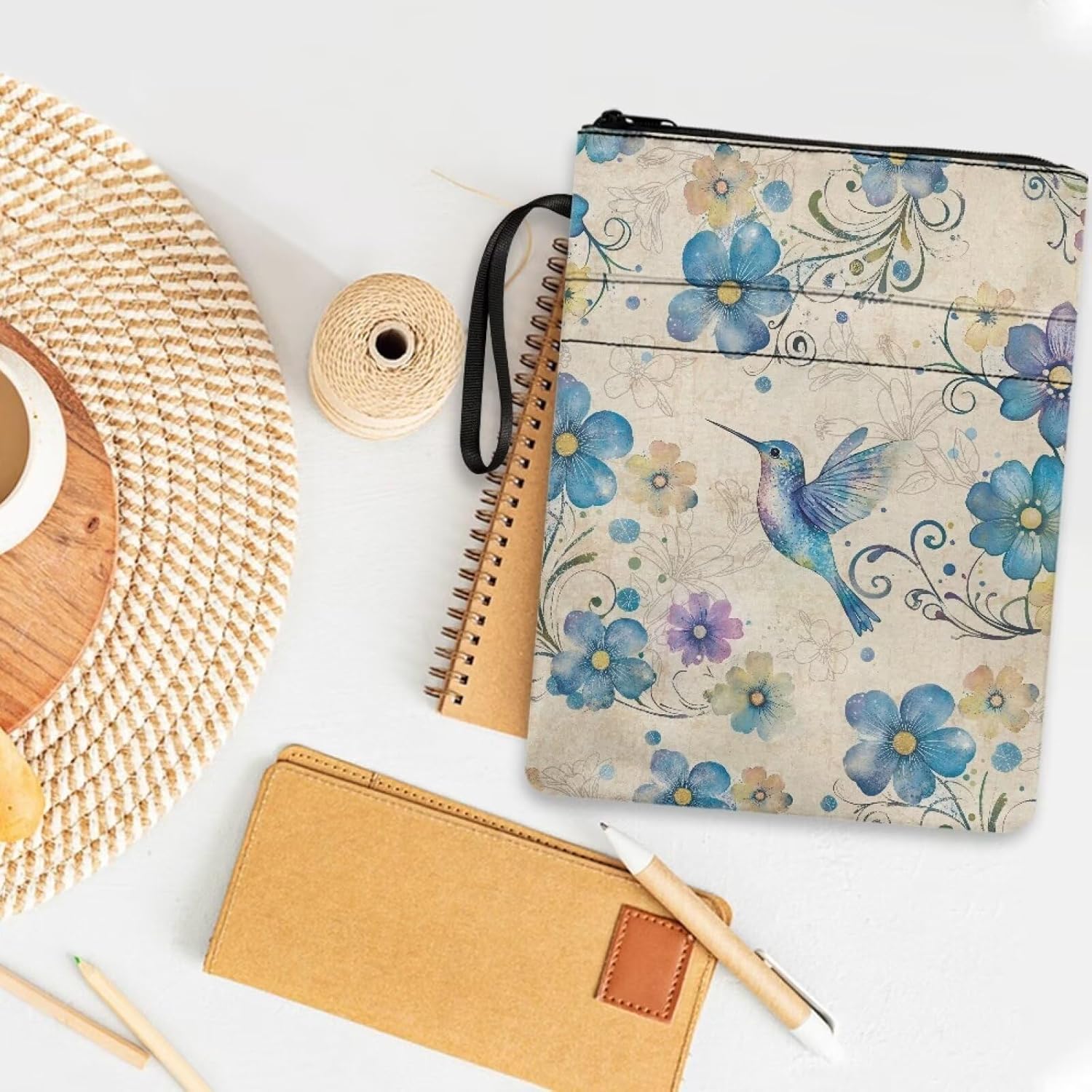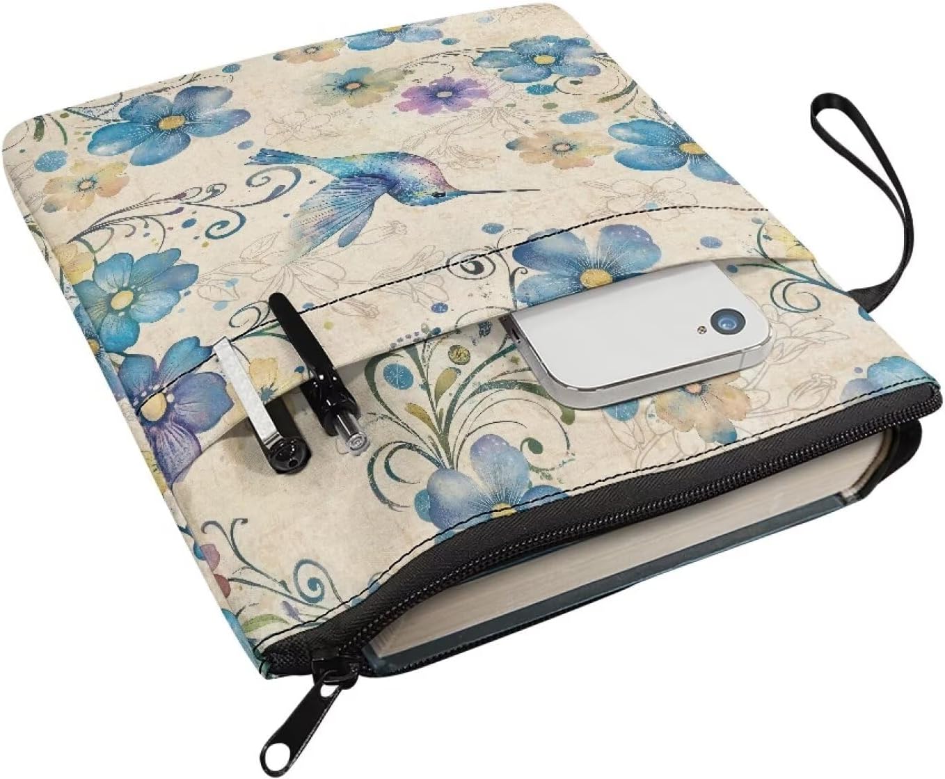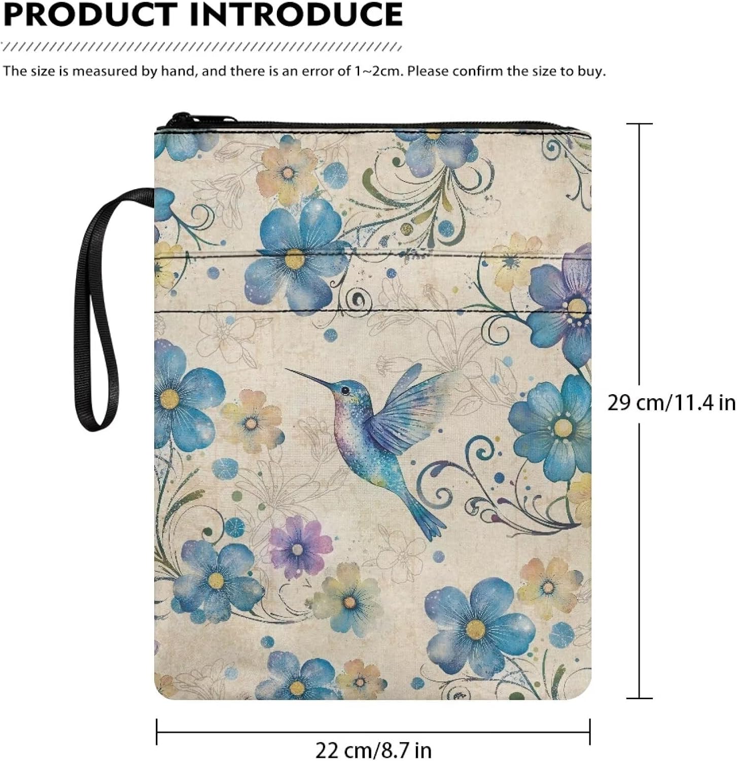 Coprilibro Coprilibro in tessuto lavabile con cerniera e passante per maniglia per lettori Coprilibro multifunzionale 29 x 22 cm Colibrì Beige
