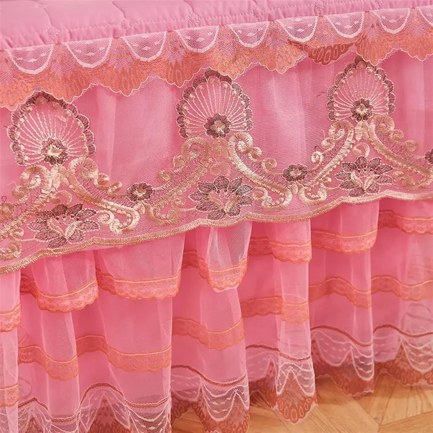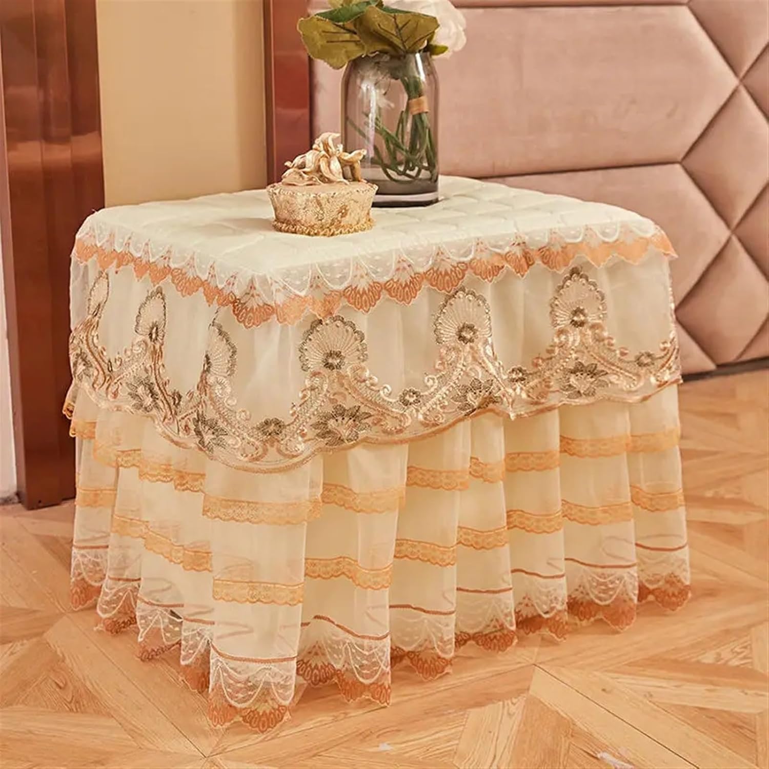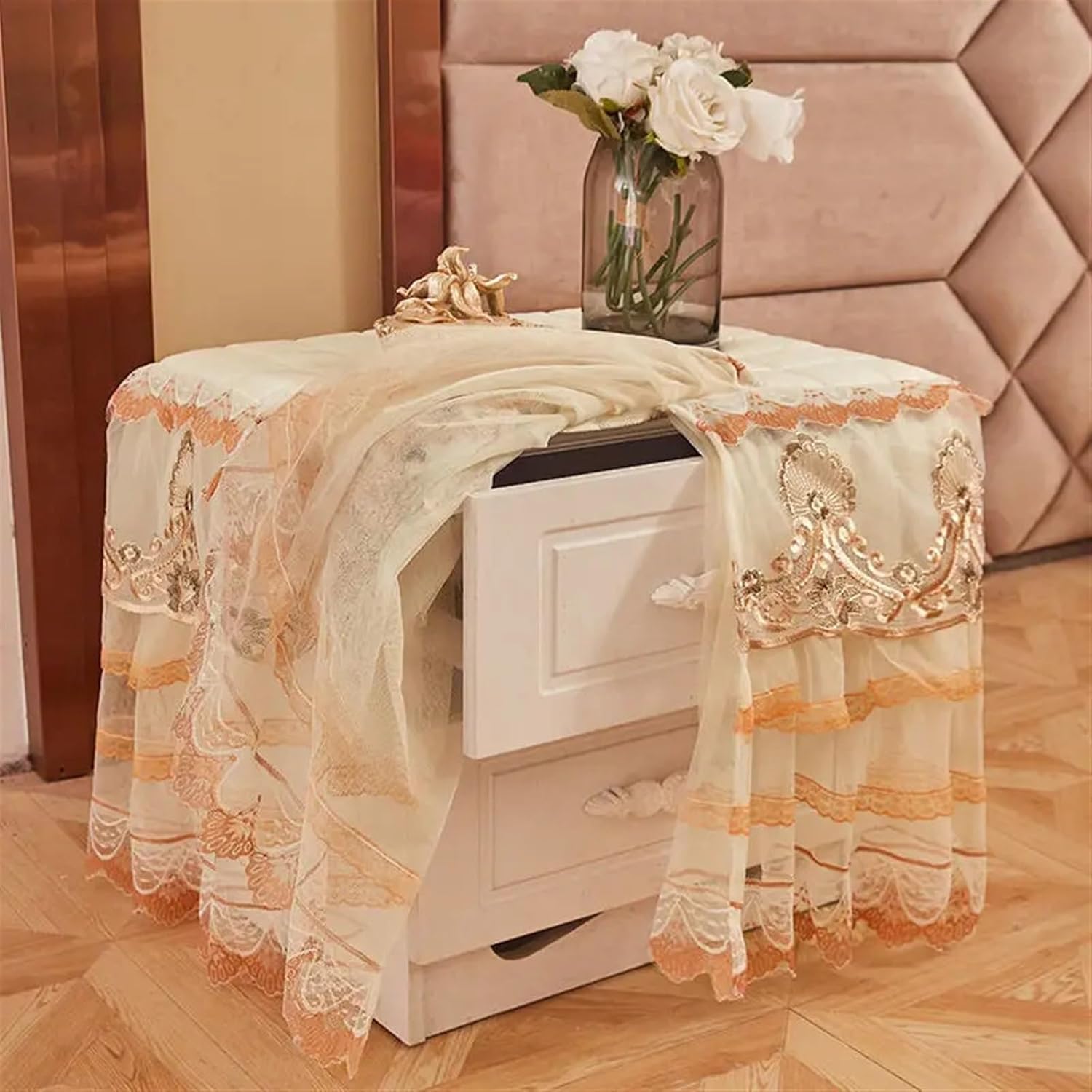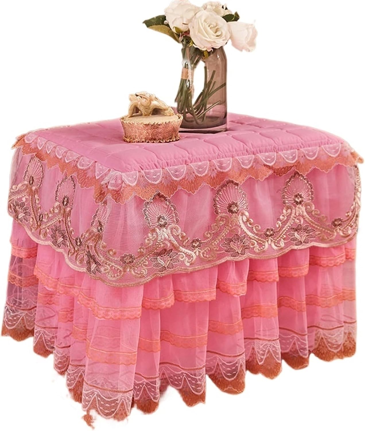 Copripolvere per Comodino Copritavolo Trapuntato for Comodino in Pizzo da 1 Pezzo Copritavolo Trapuntato a Prova di Polvere for Camera da Letto per Comodini(Pink-2,50x55cm)