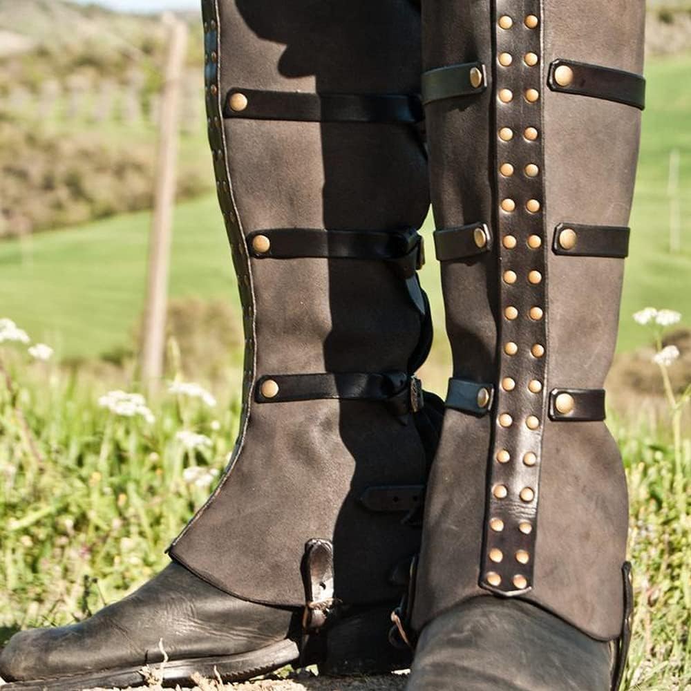Perché hai bisogno delle coperture degli stivali: coperture per stivali medievali in pelle PU, un bel design e uno stile attraente, danno vita al look del tuo personaggio, che ti aiuterà ad attirare l'attenzione di una folla, può aiutare a raggiungere un'atmosfera a tema medievale. Puntelli cosplay: la pelle pura aggiunge una sensazione forte ed eroica, ti fa sembrare un gladiatore, un soldato o un guerriero, aggiunge anche un temperamento misterioso a te. Fornisce esattamente ciò di cui hai bisogno per completare quel perfetto look medievale. È la scelta migliore per la recitazione medievale Design regolabile: tenuta regolabile, può essere regolata liberamente, evita efficacemente l'ansia per il disagio delle dimensioni. Allo stesso tempo, la fibbia inferiore si trova sotto l'arco dello stivale per garantirne la sicurezza in modo che possa accompagnarti e supportarti in molte avventure future. Materiale: questa copertura per stivali in pelle ecologica in poliuretano, resistente e durevole, da indossare su scarpe o stivali (senza scarpe o stivali) per mantenere le gambe dei pantaloni pulite e ordinate su terreni accidentati o cespugli. Ampia gamma di applicazioni: perfetto per costumi da festa, collezionisti medievali e appassionati di storia. Adatto per varie occasioni, tra cui cosplay, giochi di ruolo, feste in costume, spettacoli teatrali e così via, può anche abbinare diversi stili di abbigliamento, tra cui costume, costume medievale o come oggetti di scena teatrali