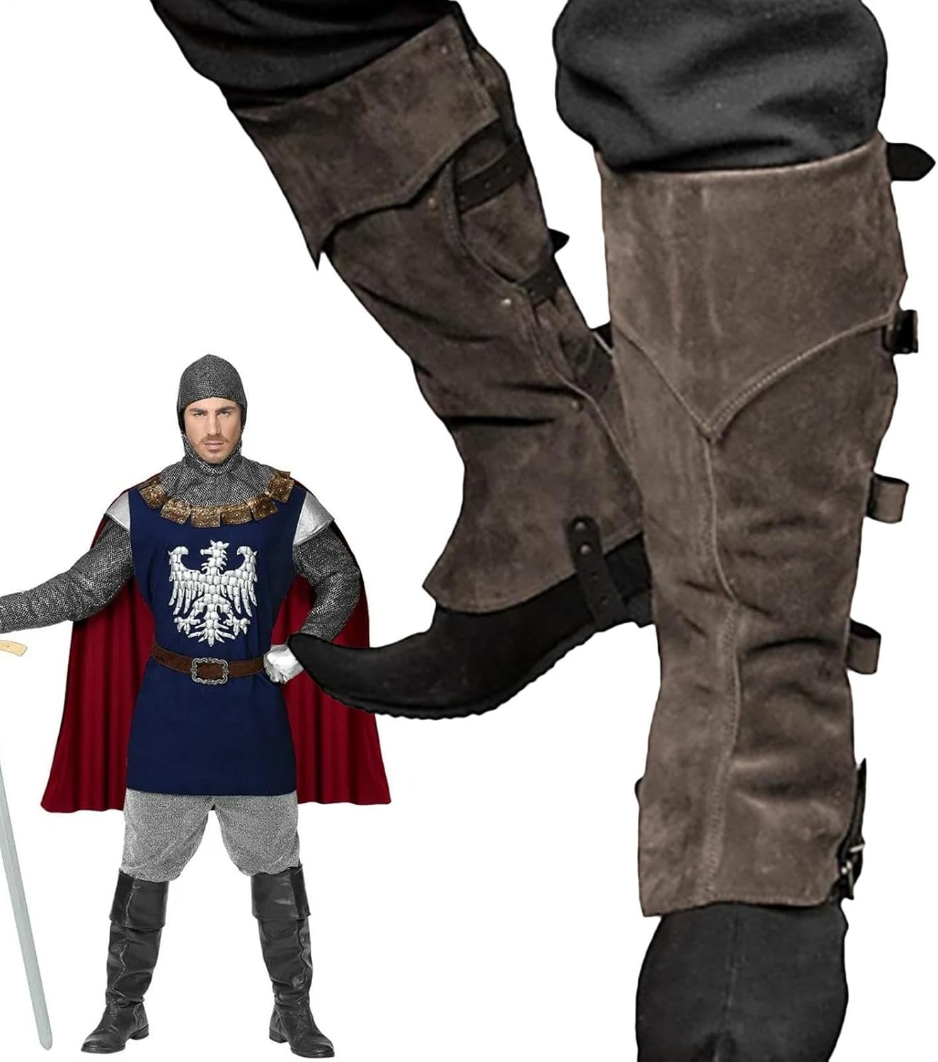 Calzature cosplay perfette: solleva le tue calzature cosplay medievali con robusti ciccioli in ecopelle, in stile per completare le cavigliere guerriere mentre servono come stivali alti al ginocchio per qualsiasi tema costume da cavaliere Topper per costumi leggeri: dotati di coperture rapide ideali per i viaggi, questi costumi salvaspazio offrono uno stile senza sforzo e una facilità d'uso senza pari Qualità del tessuto robusto: sperimenta un maggiore comfort con il robusto tessuto spazzolato e il materiale flessibile, garantendo coperture traspiranti per l'uso tutto il giorno senza irritazioni o disagi, mantenendo un aspetto elegante durante l'uso Sistema di vestibilità regolabile: progettati con un sistema di dimensionamento incluso, questi copriscarpe si adattano perfettamente a varie forme del corpo, offrendo misure versatili e fasce regolabili per una vestibilità perfetta durante qualsiasi performance o evento Multiuso: ottieni uno stile audace con coprigambe steampunk, progettati come accessori pronti per il servizio fotografico e versatili pezzi per costumi multi-evento, garantendo legwear pronto per feste per costumi fantasiosi
