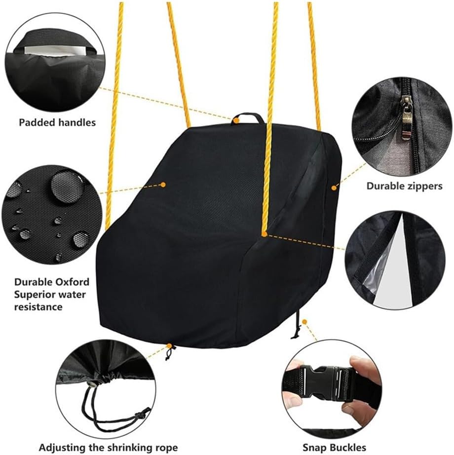 Coprisedile per altalena da esterno: design su misura con un cordoncino elastico e una chiusura regolabile che assicura che la copertura rimanga in posizione durante le condizioni di vento, per una protezione sicura dell'altalena del bambino Protezione dalle intemperie: realizzata in tessuto Oxford 420D, questa copertura impermeabile resiste ai raggi UV e alla pioggia per prevenire i danni causati dall'esposizione al sole e dall'umidità, mantenendo il bambino in condizioni di lunga durata Installazione semplice: dotata di due chiusure e una cerniera, questa copertura consente una rapida installazione senza rimuovere la catena dell'altalena, fornendo un uso senza problemi stagione dopo stagione Struttura robusta: realizzata in tessuto 420D resistente agli strappi, questo coprisedile per dondolo da esterno resiste all'usura regolare e all'erosione ambientale, offrendo una difesa affidabile contro gli agenti atmosferici Stile e vestibilità: disponibile in nero e grigio con motivi puliti, questa copertura per dondolo aggiunge un tocco moderno al tuo patio pur essendo dimensionata a 40 x 40 x 50 cm per una corretta compatibilità con la maggior parte delle altalene per bambini