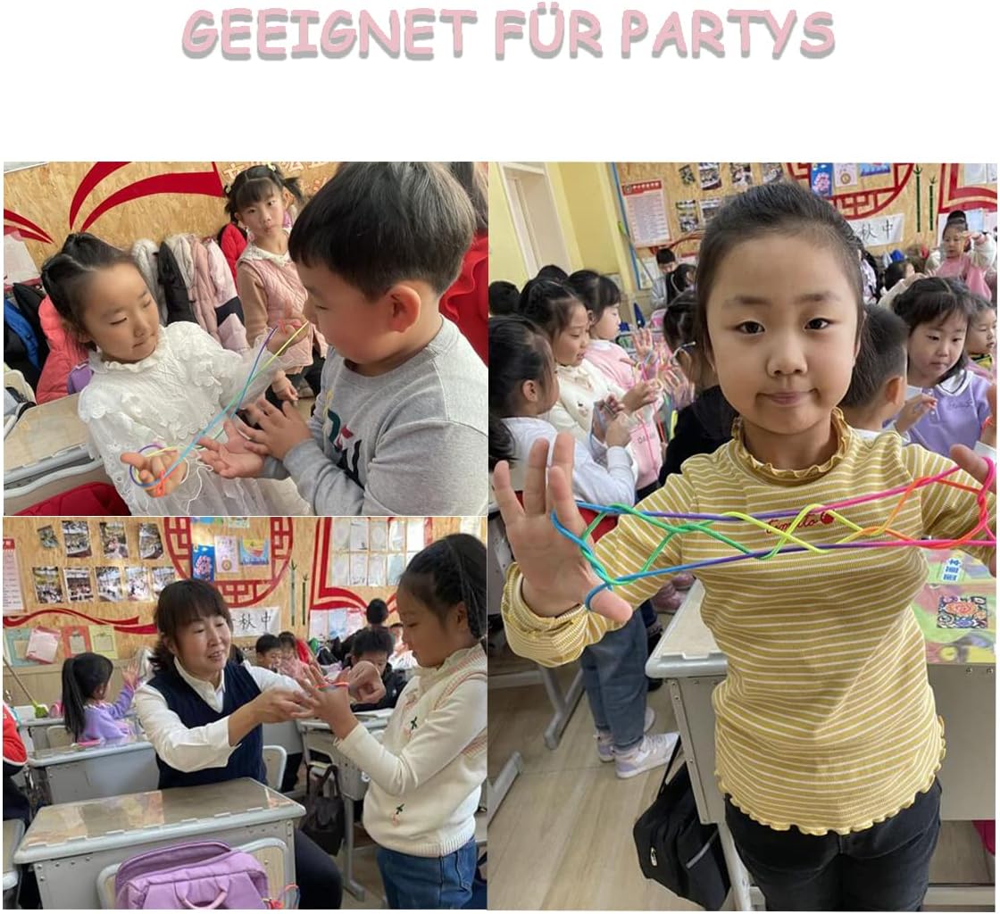 Giocattolo puzzle: le corde arcobaleno sono adatte per tutta la famiglia per giocare insieme, aumentando la flessibilità, la sensibilità e la creatività delle dita dei bambini e promuovendo le abilità pratiche e le capacità di coordinazione dei bambini. Ampio utilizzo: il gioco di corde arcobaleno è perfetto per le feste dei bambini e può essere utilizzato come regalo, regalo promozionale, souvenir e decorazione. Gioca in qualsiasi momento e ovunque: la corda arcobaleno è piccola e portatile, in modo da poter godere del classico divertimento nostalgico dei bambini in qualsiasi momento. Durevole: realizzato in tessuto, morbido e confortevole, non si rompe facilmente. Contenuto della confezione: contiene 12 corde arcobaleno per le feste.