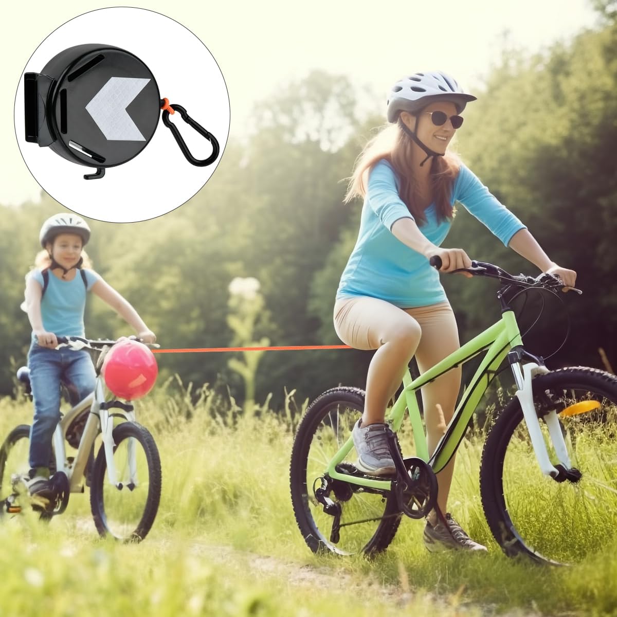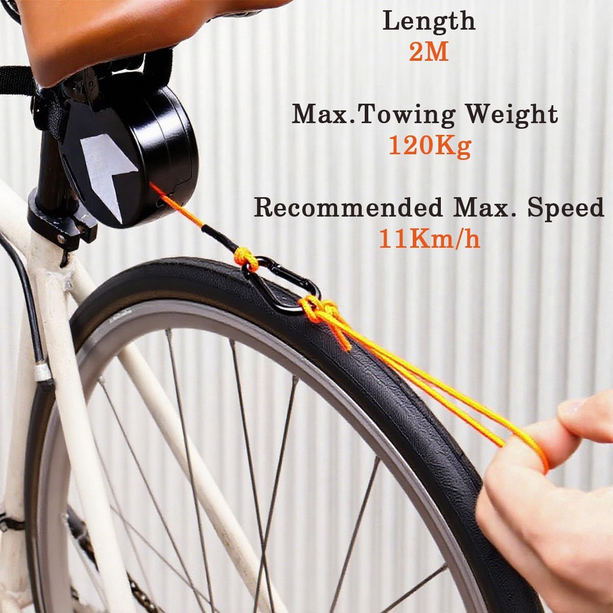 MATERIALI RESISTENTI E DUREVOLI: cinghia per bici per bambini / traino per bici realizzata con corpo in PC, corda in nylon e struttura in acciaio, resistente all'usura e durevole. Il design elastico assorbe gli urti per adattarsi a tutti i tipi di terreno. TRAZIONE SICURA E FLUIDA: La lunghezza della fune di trazione della bici per bambini è di 2 metri, con una capacità massima di 120 kg, garantendo una distanza di sicurezza tra genitori e figli per una guida genitore-figlio stabile e confortevole. INSTALLAZIONE CONVENIENTE E ACCESSORI COMPLETI: corda da traino per bicicletta con cinghie e adesivi riflettenti. Si attacca rapidamente alla bici senza strumenti aggiuntivi, facile da usare e stabile per un utilizzo sicuro. COMPATIBILITÀ UNIVERSALE E VELOCITÀ ADATTA: Fune da traino per bicicletta/fune da traino per bicicletta/pneumatico per bicicletta/sistema di traino per bicicletta retrattile da 2 m è adatto per city bike, mountain bike, bici elettriche e bici da strada. Velocità massima consigliata: 11 km/h per garantire una trazione sicura. COMPATTO E PORTATILE, IDEALE PER LE GITE IN FAMIGLIA: fune di trazione per bicicletta/sistema di traino/barra di traino per bicicletta: design leggero e facile da trasportare, goditi le passeggiate genitore-figlio in qualsiasi momento. La confezione comprende il gruppo completo del dispositivo di trazione, pronto all'uso.