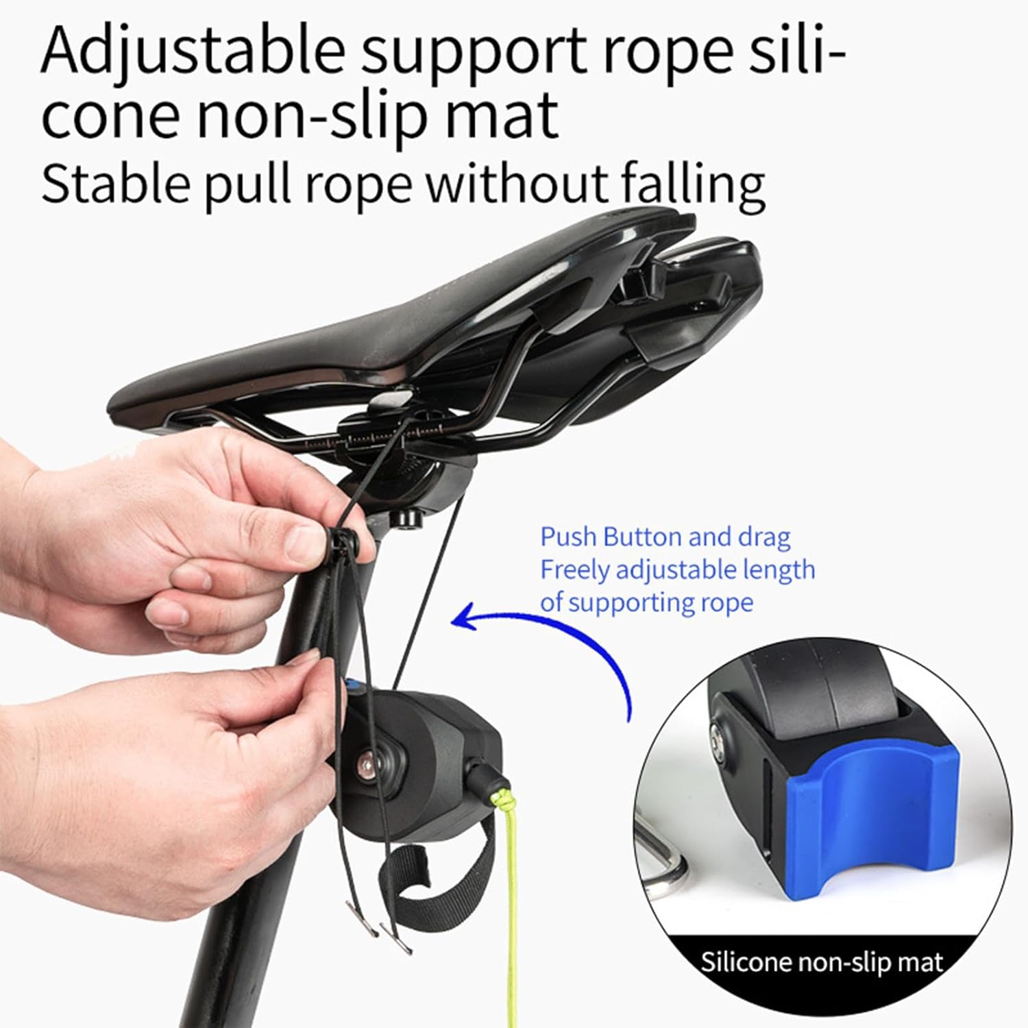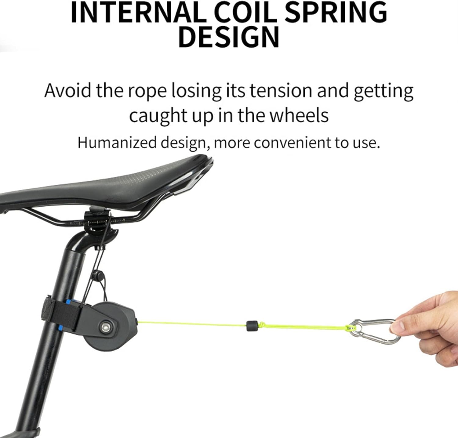 Questo sistema di traino universale è ideale per i viaggi in bicicletta con la famiglia e può funzionare con e-bike, mountain bike e bici da strada. La fune traino per bicicletta è la soluzione perfetta per trainare i vostri bambini o amici in bicicletta. Può rotolare su pozzanghere o pozzanghere irregolari senza rompersi o aggrovigliarsi. Realizzato in ABS, non facile da rompere. Quando si traina un'altra bicicletta, è possibile mantenere una tensione forte e flessibile. Facile da installare. Appenderlo dietro il reggisella di una bicicletta e collegarlo al rimorchio della bicicletta. Questo sistema di fune da traino retrattile è ideale per aiutare i bambini ad andare in bicicletta mantenendo il controllo dello sterzo e dell'equilibrio.