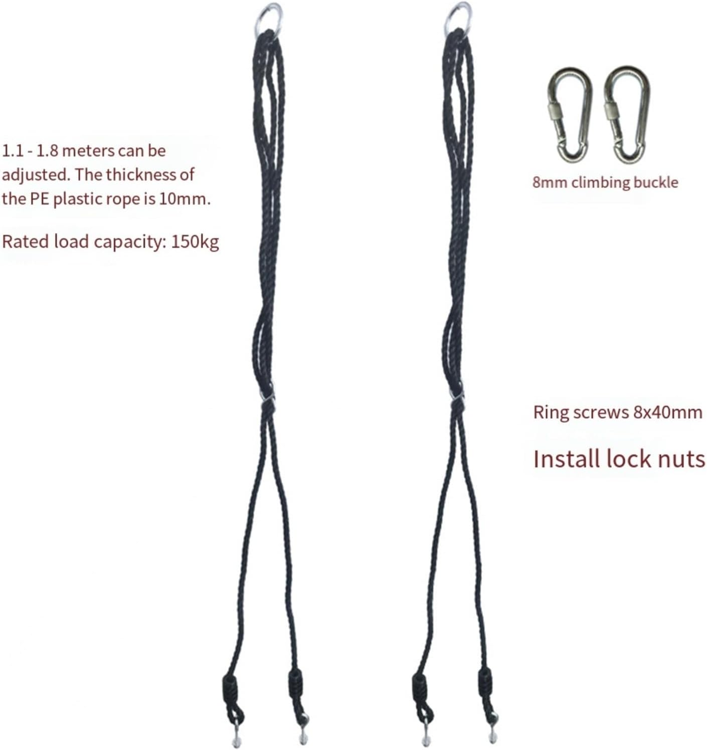 Lunghezza regolabile: personalizza la tua esperienza di swing con una gamma di lunghezze da 1 a 1,8 metri, una vestibilità comoda per tutte le età. La robusta corda spessa 10 mm supporta fino a 150 kg, fornendo sicurezza e stabilità durante il gioco. Durevolezza del materiale: realizzata in plastica PE, abbinata a fibbie in metallo e anelli di sollevamento, questa corda oscillante è progettata per resistere agli elementi offrendo prestazioni affidabili. Facile installazione: viene fornito con due robusti ganci e anelli per un fissaggio rapido a vari tipi di altalene, consentendo di impostare la tua attrezzatura da gioco all'aperto in pochissimo tempo. Ampiamente usata: per cortili, parchi o parchi di divertimento, questa corda oscillante estesa migliora il tuo divertimento all'aperto e si adatta perfettamente a diversi stili e configurazioni di altalena. Design amichevole: incoraggia il gioco attivo e lo sviluppo fisico, rendendolo una scelta fantastica per le famiglie che cercano di promuovere le attività all'aperto tra i bambini.