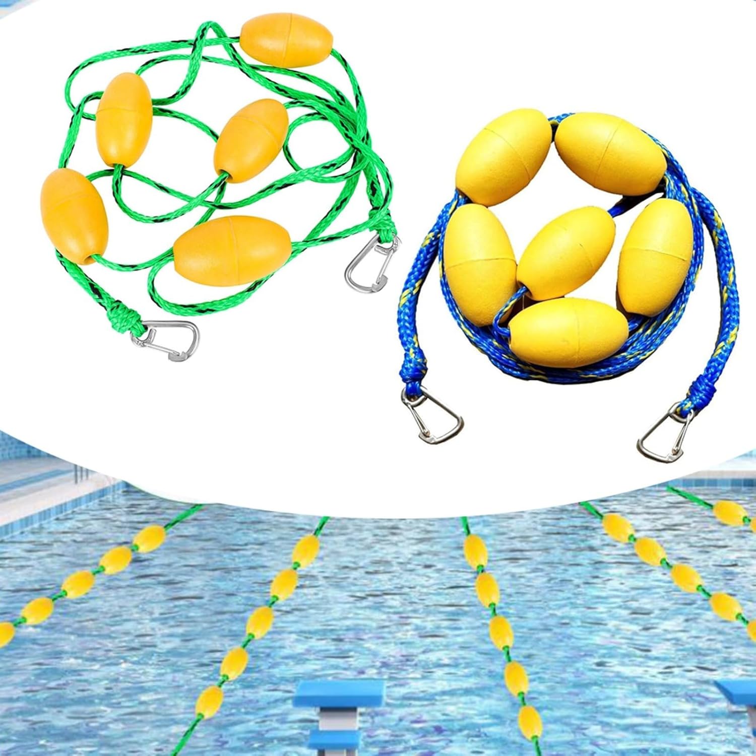Materiale ad alta galleggiamento: realizzato con 16 corde in polietilene abbinate a 5/6 galleggianti in PVC, questo divisorio per corsia per piscina offre un'eccezionale galleggiabilità resistendo all'usura e ai danni UV. Colore audace per la sicurezza: i colori accattivanti delle linee galleggianti mantengono la loro luminosità nel tempo, nuotatori efficacemente dei confini della piscina e dei cambiamenti di profondità. Facile da fissare: dotato di robusti bottoni a pressione in acciaio inossidabile 316 su entrambe le estremità, l'installazione è semplice e garantisce una vestibilità sicura che rimane intatta durante l'uso. Applicazioni: ideale per contrassegnare corsie di nuoto o aree pericolose in piscine, fiumi o spiagge, rendendolo uno strumento di sicurezza indispensabile per qualsiasi ambiente acquatico. Opzioni di taglie disponibili: scegli tra lunghezze di 5 m o 6 m per soddisfare le tue esigenze specifiche; fare riferimento alla tua guida alle taglie per la migliore vestibilità.