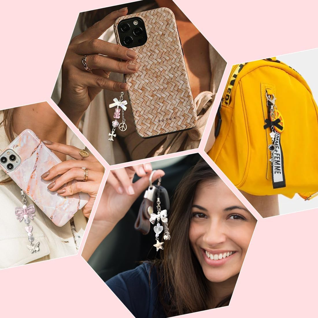 Ricca quantità: una confezione contiene 5 cordini per telefono da polso, la quantità è sufficiente per l'uso e la sostituzione, puoi regalarla ai tuoi amici e familiari. MATERIALI DI ALTA QUALITÀ: questi graziosi ciondoli per cellulare sono realizzati con materiali di alta qualità e sono durevoli. La superficie liscia e vibrante garantisce che non sbiadisca facilmente. Il robusto cordino è progettato per resistere all'uso quotidiano, rendendolo un accessorio durevole. Cordino universale per telefono: il cordino impedisce che il telefono cada o venga perso. I cavi dati per telefoni cellulari possono proteggere non solo i telefoni cellulari, ma anche fotocamere, chiavi, chiavette USB, documenti personali, ecc. Multifunzionale: usa questi ciondoli per cellulare per decorare il tuo cellulare, borsa, portachiavi, fotocamera, portafoglio, portachiavi per auto, portafoglio, ciondolo, zaino e altro ancora. Un accessorio versatile per l'uso quotidiano. SCELTA REGALO IDEALE: questo ciondolo per cellulare non è solo un accessorio pratico, ma anche alla moda. Aggiunge un tocco elegante a qualsiasi stile femminile moderno. È un regalo ideale per ragazze, amici, amanti e madri per la festa della mamma, Natale, Ringraziamento, compleanni o qualsiasi occasione speciale.