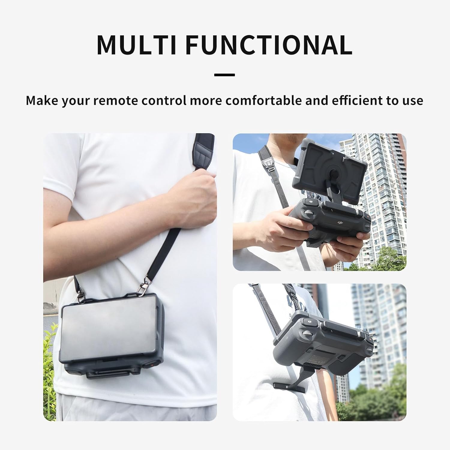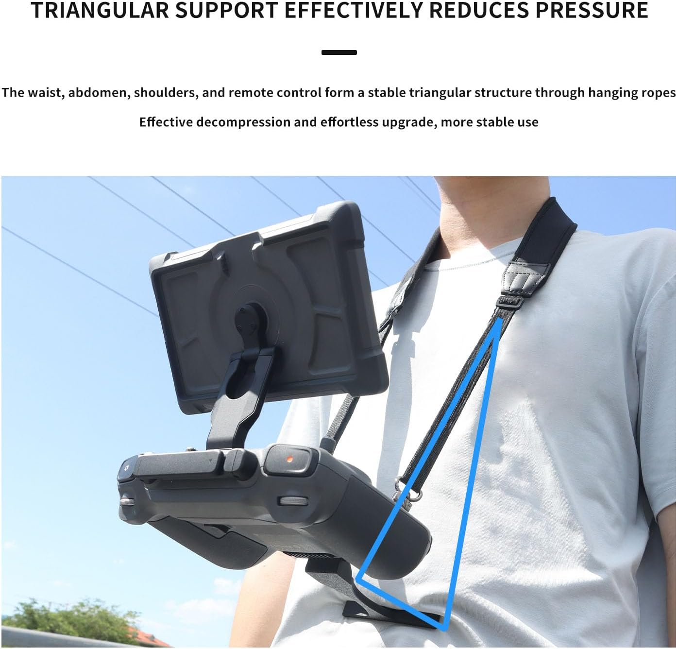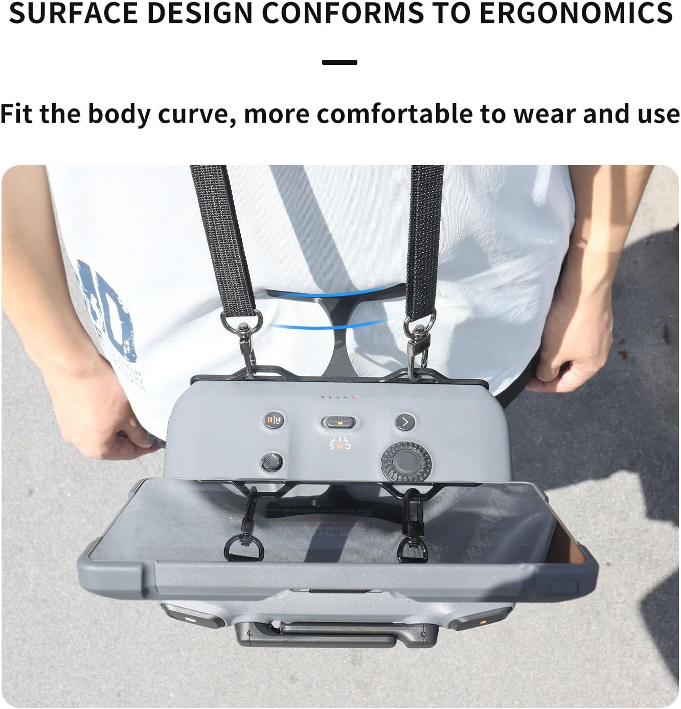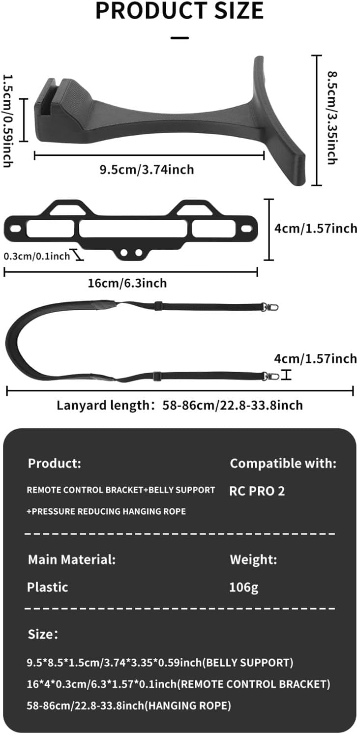 Compatibilità esclusiva con RC PRO2: questo cordino da collo è progettato esclusivamente per controller RC PRO 2. Si attacca perfettamente alla parte inferiore senza bloccare le porte o ostacolare l'accesso ai cavi. Facile "appoggia" il controller sulla pancia, liberando entrambe le mani per concentrarsi interamente su inquadratura, volare e catturare splendide riprese aeree Cinghia regolabile e antiscivolo, vestibilità comoda: la tracolla in rilievo è regolabile da 58 cm a 86 cm (design con texture antiscivolo) per adattarsi a varie altezze. Dispone di imbottitura in spugna morbida ed elastica antiscivolo, antiscivolo e confortevole sul collo. Riduce efficacemente la pressione mentre rilassa le spalle Design ergonomico, sicuro e confortevole: la barra per ombelico presenta un design ergonomico curvo che si adatta al corpo per una vestibilità sicura e confortevole durante l'uso. Realizzato in lega di alluminio resistente per un supporto affidabile Supporto triangolare, efficace sollievo: la barra per pancia e il controller formano una struttura triangolare stabile con la cinghia da collo, distribuendo il peso scientificamente. Allevia significativamente la pressione su vita, addome, spalle e braccia durante l'uso prolungato, rendendo le riprese senza sforzo e confortevoli Leggero, portatile e pieghevole: peso netto totale circa 106 g (cinghia + barra), leggero e portatile. La barra si ripiega facilmente contro il retro del controller per una conservazione compatta, occupando uno spazio minimo e completamente compatibile con la custodia originale del controller. Confezionato in un sacchetto per un facile trasporto
