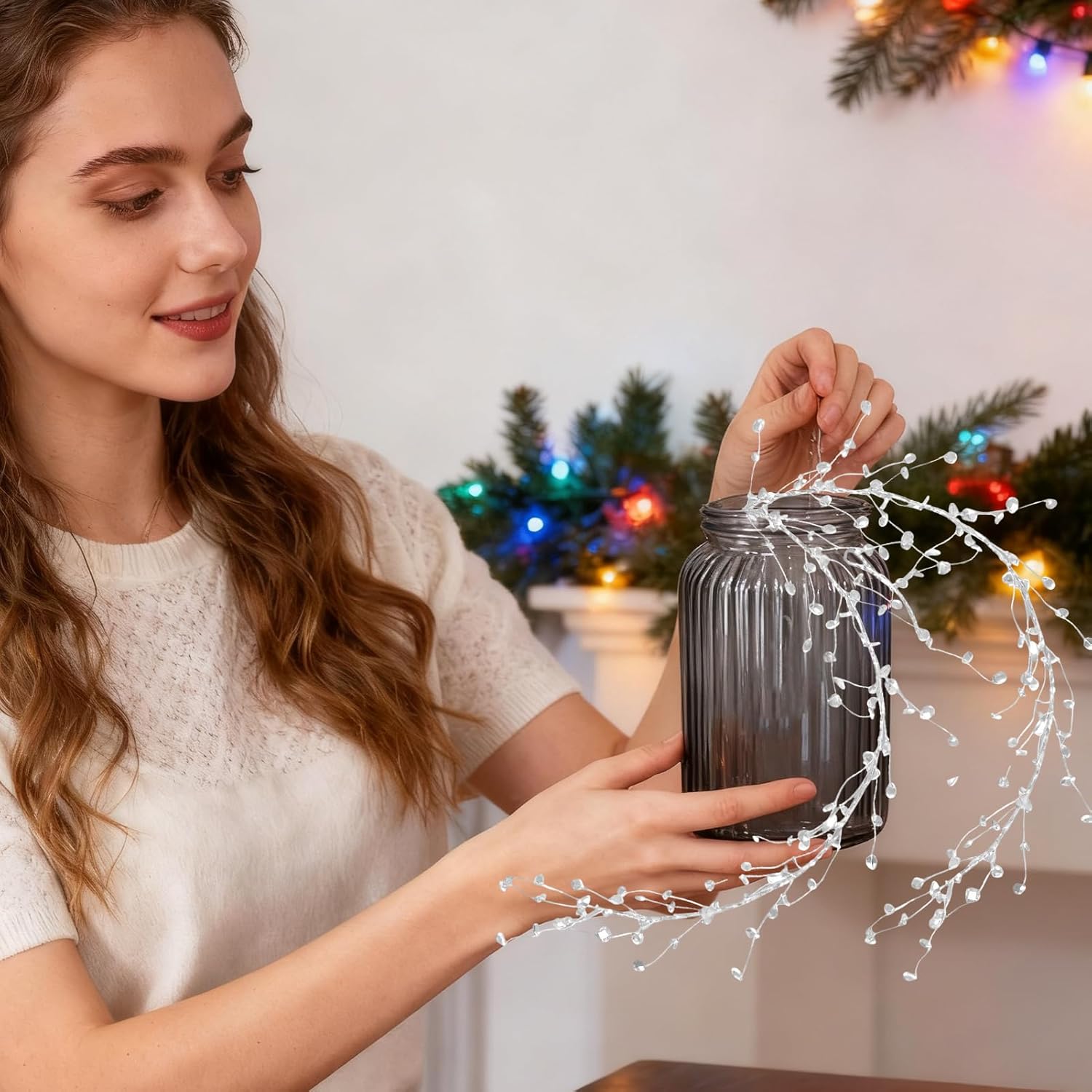 Ampie applicazioni: questa ghirlanda di cristallo per albero di Natale integra elementi festivi per migliorare le decorazioni di vetrine o finestre e funge da decorazione versatile che integra anche decorazioni per matrimoni o feste. Offre eleganza personalizzabile per vari ambienti festivi ed è perfetto per il periodo natalizio, matrimoni, feste e altre celebrazioni con il suo design scintillante. Utilizzo senza problemi: la ghirlanda di cristalli offre un processo di installazione semplice con ganci inclusi e facile trasportabilità, consentendo agli utenti di organizzarli e conservarli facilmente per scopi come decorazioni stagionali o esposizioni creative senza fastidiose complicazioni. La facile movimentazione e conservazione li rendono ideali per un uso versatile in casa e per le celebrazioni. Migliora l'atmosfera festosa: con una combinazione di perline di cristallo traslucide e un caratteristico design in rattan intrecciato, questa ghirlanda di cristallo funge da decorazione scintillante per migliorare l'atmosfera festosa. Ideale per decorare le stanze durante le riunioni stagionali, aggiungerà splendore a qualsiasi celebrazione e renderà i momenti indimenticabili. L'applicazione versatile si adatta a diverse occasioni. Elegante lavorazione in rattan: la ghirlanda di cristallo combina un intreccio in rattan opaco con fili di perline simili a cristalli e offre dettagli e strutture elaborati che attirano l'attenzione in modo romantico. Perfetto per valorizzare la decorazione domestica in ambienti accoglienti o contemporanei. Questo pezzo decorativo si adatta perfettamente a diversi stili di interni e arricchisce l'atmosfera con il suo aspetto attraente e la sua versatilità. Ghirlanda di cristallo pieghevole: i fili della ghirlanda di cristallo sono dotati di aste flessibili in rattan che consentono una modellatura flessibile e layout personalizzabili. Ciò li rende ideali per la decorazione della tavola o per la decorazione di regali e aumenta la libertà creativa nella creazione di composizioni decorative uniche per eventi o ambienti abitativi. I fili versatili offrono la massima flessibilità per idee di decorazione personalizzate in qualsiasi ambiente.