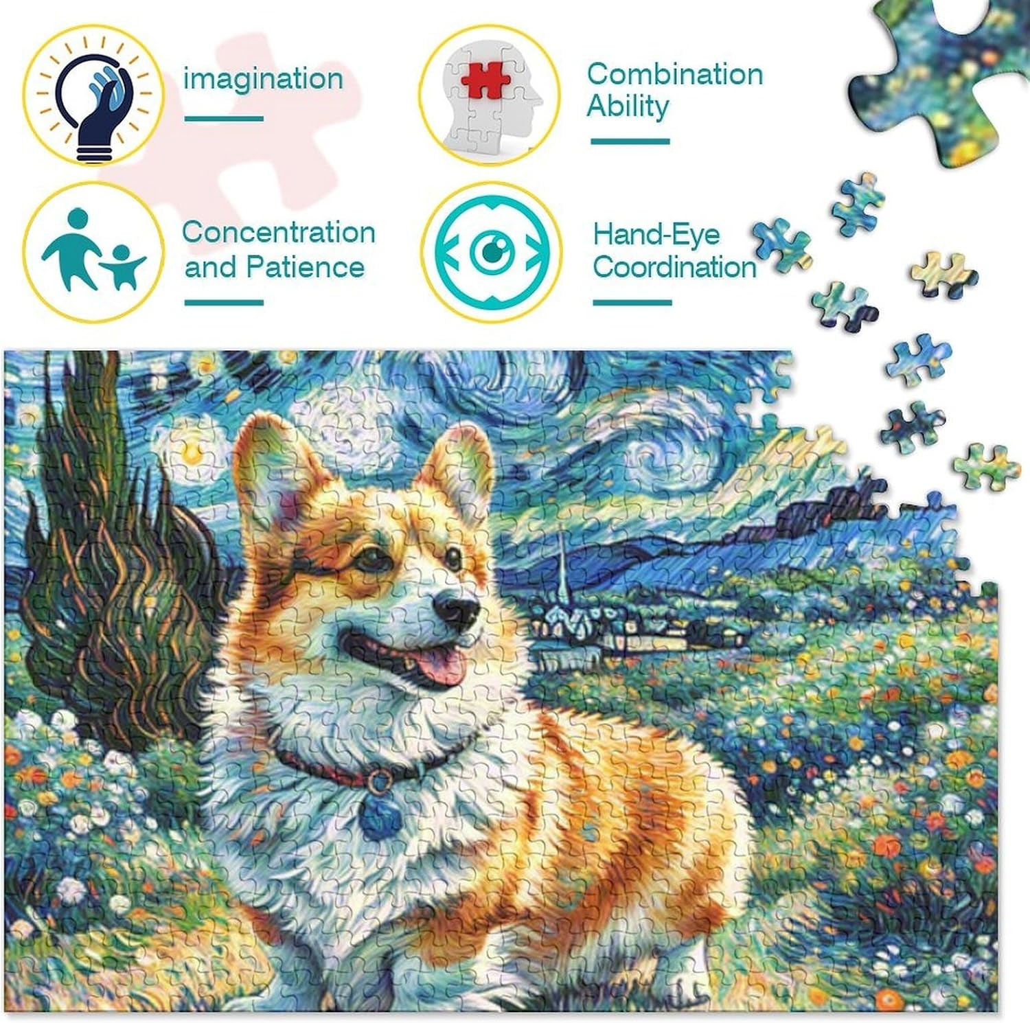 🌸GIOCHI PER ADULTI: una sfida emozionante da regalare a tutti li appassionati di puzzle e amanti dell'arte, ideale per uomo, donna o ragazzi; i puzzle aiutano a esercitare la memoria, migliorano la concentrazione e stimolano l'intuizione 🌸QUALITÀ PREMIUM: il massimo del divertimento con prodotti di altissima qualità in termini di materiali, motivi e design; realizzati in legno tagliati con fustelle fatte a mano, per un risultato impeccabile 🌸Buon regalo: il pet dog puzzle finito misura 38x26cm/1000pcs una volta completato. I migliori regali per ragazzi e ragazze dai 14 anni in su per compleanni o festività (Natale, Halloween, Ringraziamento, ecc.) 🌸Concediti una piacevole pausa relax! La nostra linea di puzzle da Corgi 1000 pezzi è il regalo perfetto per chi ama ritagliarsi un momento di svago e di relax mettendo alla prova le proprie abilità logiche e di concentrazione 🌸I nostri Puzzle ti offrono un'ampia scelta d'immagini capace di soddisfare i gusti di tutti: grazie alla qualità dei materiali riciclati, la robustezza e resistenza dei singoli pezzi insieme alla brillantezza dei colori, ti garantiamo un risultato impeccabile e privo di riflessi
