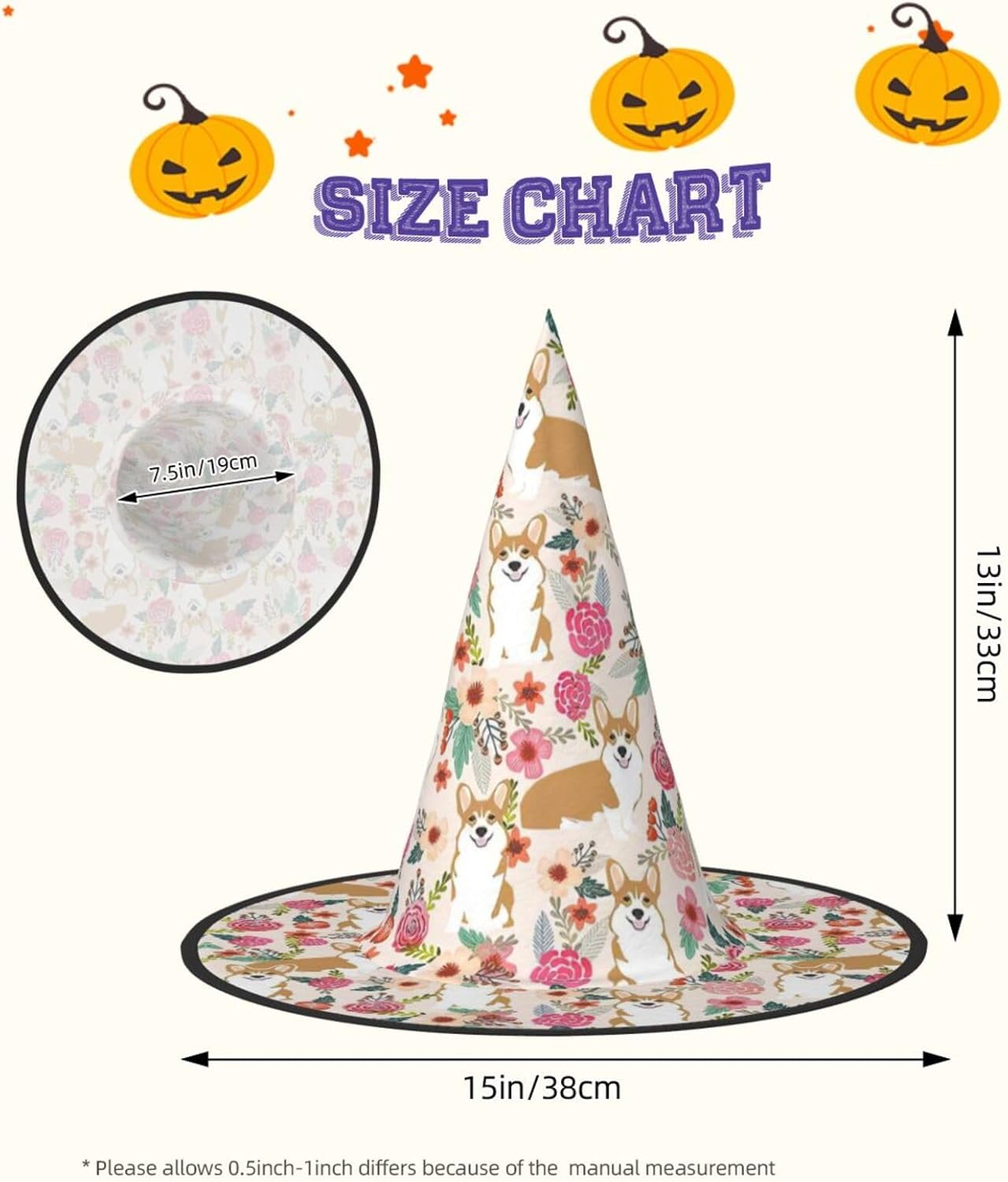 Realizzato con comodo panno Oxford, questo cappello da strega con stampa floreale Corgi con fiori primaverili non è solo un accessorio; è un investimento per molte stagioni di Halloween a venire. Il design unico del cappello consente di restringere la parte superiore e la tesa di essere attorcigliata e piegata, rendendolo compatto e facile da riporre. Nonostante la sua struttura, è incredibilmente leggero e può essere trasportato ovunque senza problemi. Il nostro cappello da strega di Halloween con fiori floreali Corgi è progettato per adattarsi comodamente alla maggior parte delle persone, rendendolo una scelta ideale per qualsiasi festa di Halloween, carnevale, mascherata o evento cosplay. Il suo design accattivante ti renderà il punto focale della festa.
