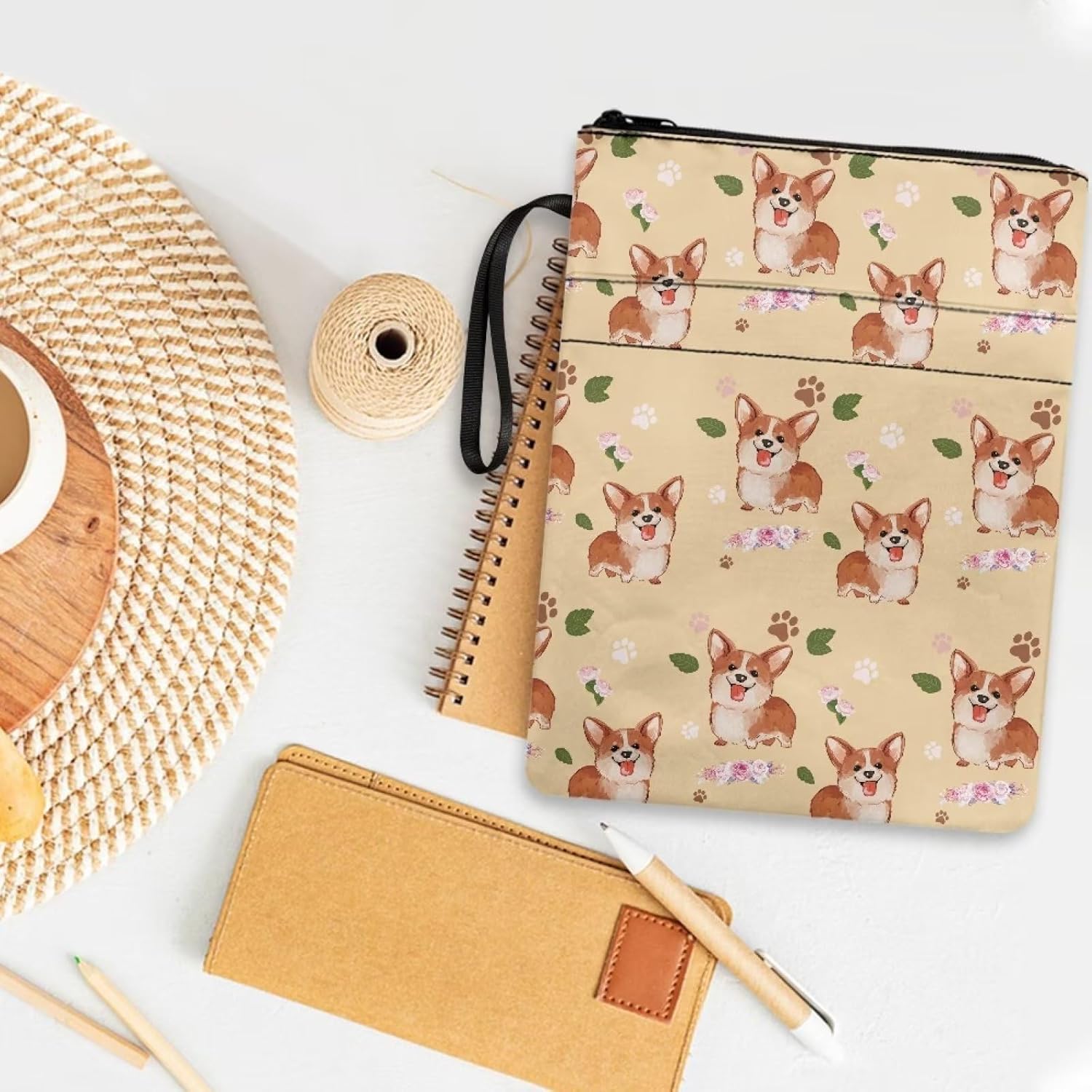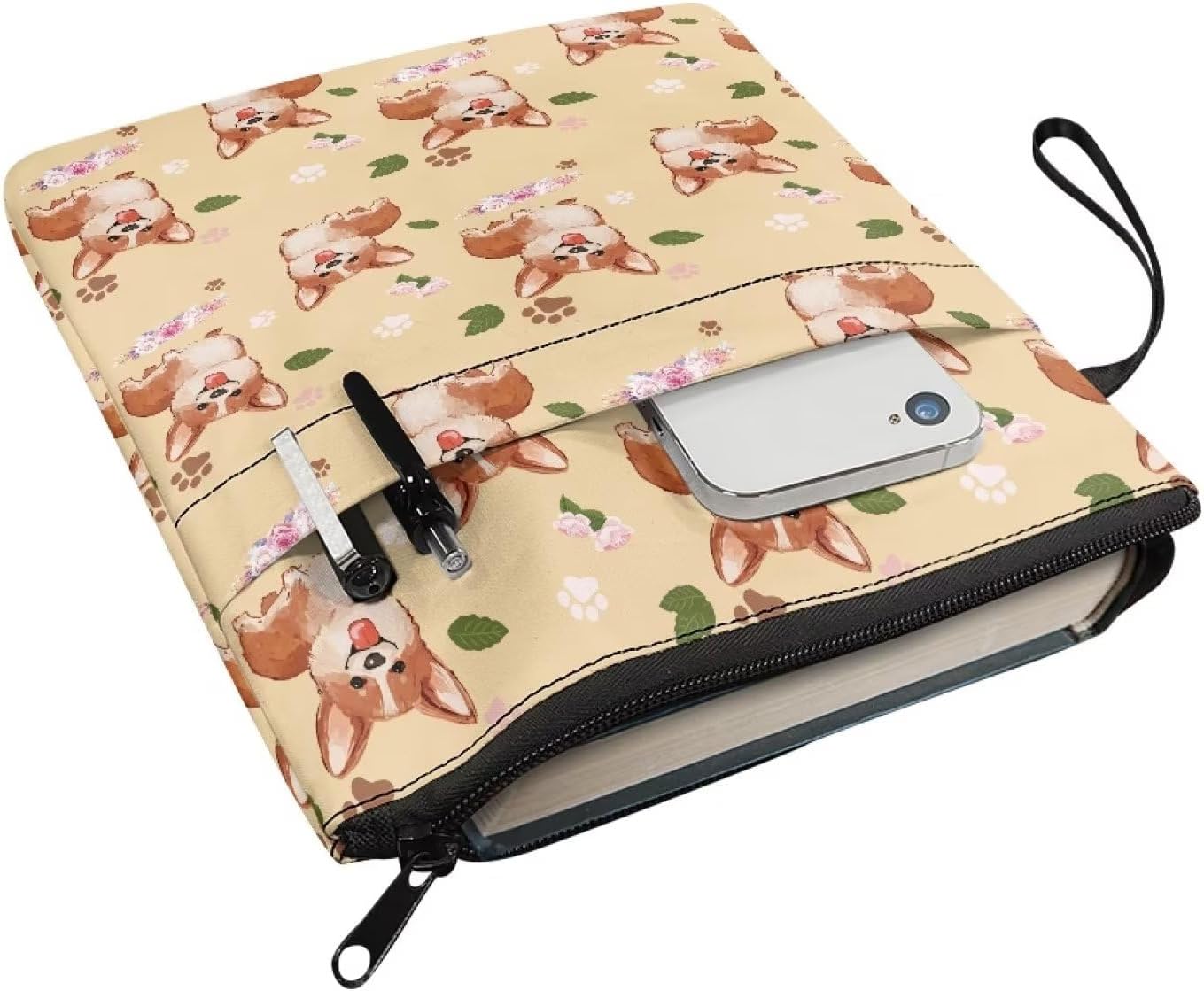 Corgi, custodia per libro con motivo floreale e cane con cerniera, per bambini e ragazzi, per amanti dei libri, custodia protettiva portatile con copertina rigida