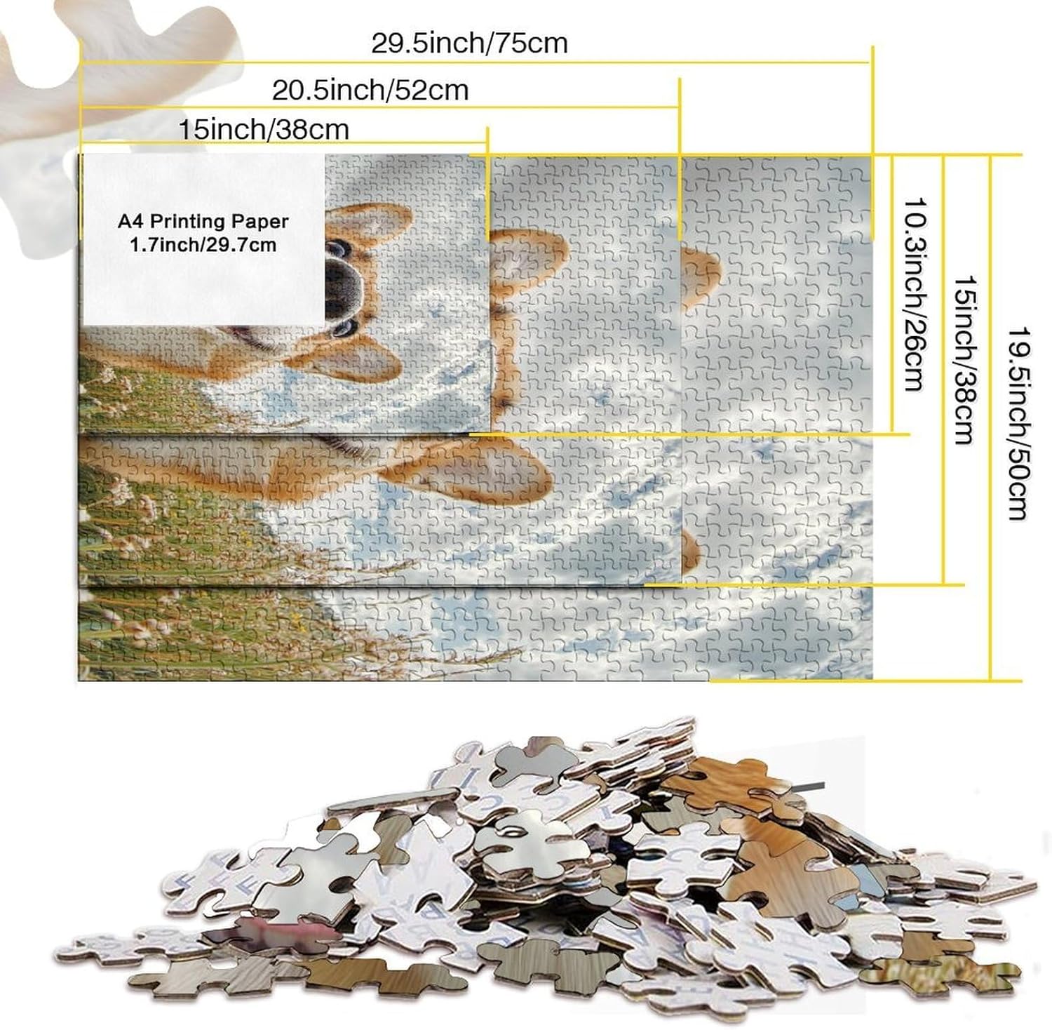 Corgi Jigsaw Puzzle Impossible 1000Pcs Decorazione Per La Casa. Giochi Rilassamento E Intelligence Per Adulti E Ragazzi Da 14 Anni 38x26cm/1000pcs