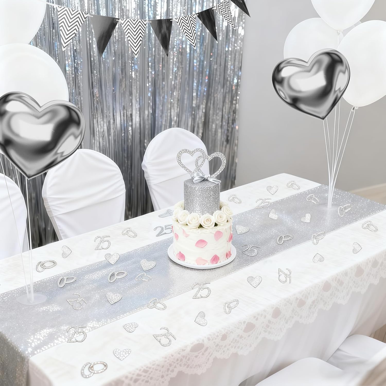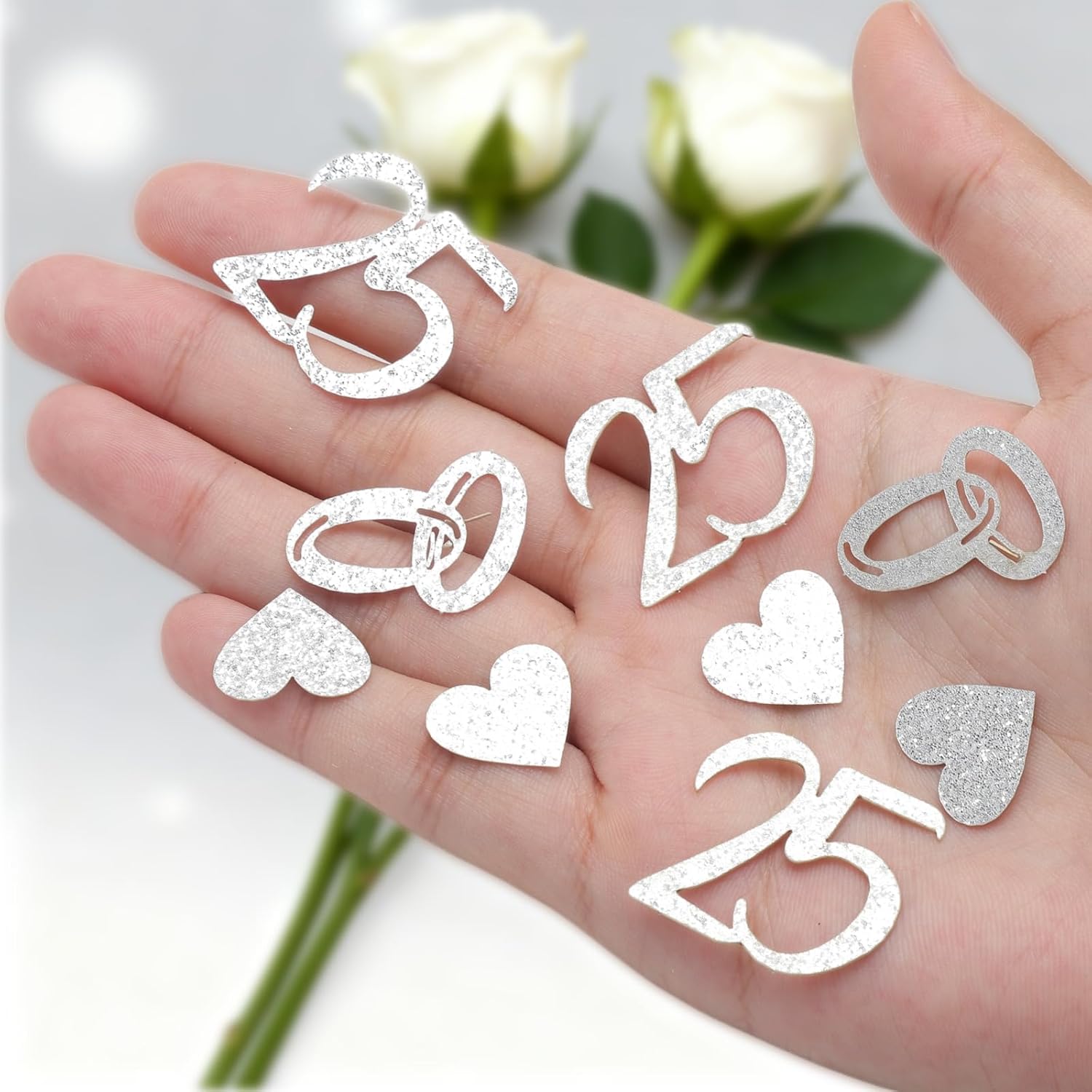 Numerose quantità e alta qualità: con 200 coriandoli glitterati otterrete il doppio rispetto ai set standard. Ideale come decorazione da tavolo per nozze d'argento, diverse lavagne, biglietti o bomboniere Simbolismo delle nozze d'argento: ogni pezzo presenta motivi classici come "25", cuori e anelli, perfetto come decorazione per nozze d'argento 25 o decorazioni per matrimoni in argento, per celebrare l'amore e l'alleanza del matrimonio Ecologico e sicuro: realizzato in carta ecologica di alta qualità, inodore e sicura per bambini e adulti. Una scelta migliore rispetto alla plastica, per una decorazione sostenibile in argento Pratica confezione e idea regalo: ogni set è leggero, compatto e confezionato separatamente, rendendo facile il trasporto e la conservazione. Ideale anche come regalo di nozze d'argento o per un biglietto di nozze d'argento Versatili possibilità di utilizzo: sia come decorazione per matrimoni d'argento, per anniversari, fidanzamenti o come idee regalo creative per matrimoni in argento, questo set crea un'atmosfera festosa e romantica in ogni evento