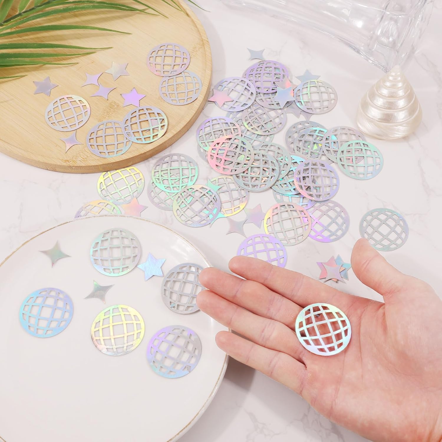 Contenuto della confezione: riceverai 200 pezzi di coriandoli glitter in tre stili diversi, con quantità casuali per ogni stile e la quantità è sufficiente per soddisfare le esigenze di decorazione del tuo gruppo. Dimensioni del prodotto: questi coriandoli hanno tre motivi: palla da discoteca, stella a cinque punte e stella a quattro punte, e le loro dimensioni sono rispettivamente di circa 3,6 cm, 2,1 cm, 2,1 cm. Caratteristiche del prodotto: I nostri coriandoli sono realizzati con carta di alta qualità e i coriandoli colorati brillano sotto la luce, rendendo la tua festa piena di energia e passione. Bellissima decorazione: puoi posizionare o attaccare tre diversi modelli di coriandoli da discoteca ovunque tu voglia decorare, come pareti, vetro, biglietti d'invito, biglietti d'auguri. Oppure mettili in bottiglie e sacchetti regalo per le feste come riempitivi per realizzare decorazioni molto belle e lucenti. Ampio utilizzo: questi coriandoli possono essere utilizzati per decorare feste, matrimoni, balli e altri eventi, rendendo scintillante la scena della festa e scattando ottime foto, lasciando a te e ai tuoi ospiti bei ricordi.