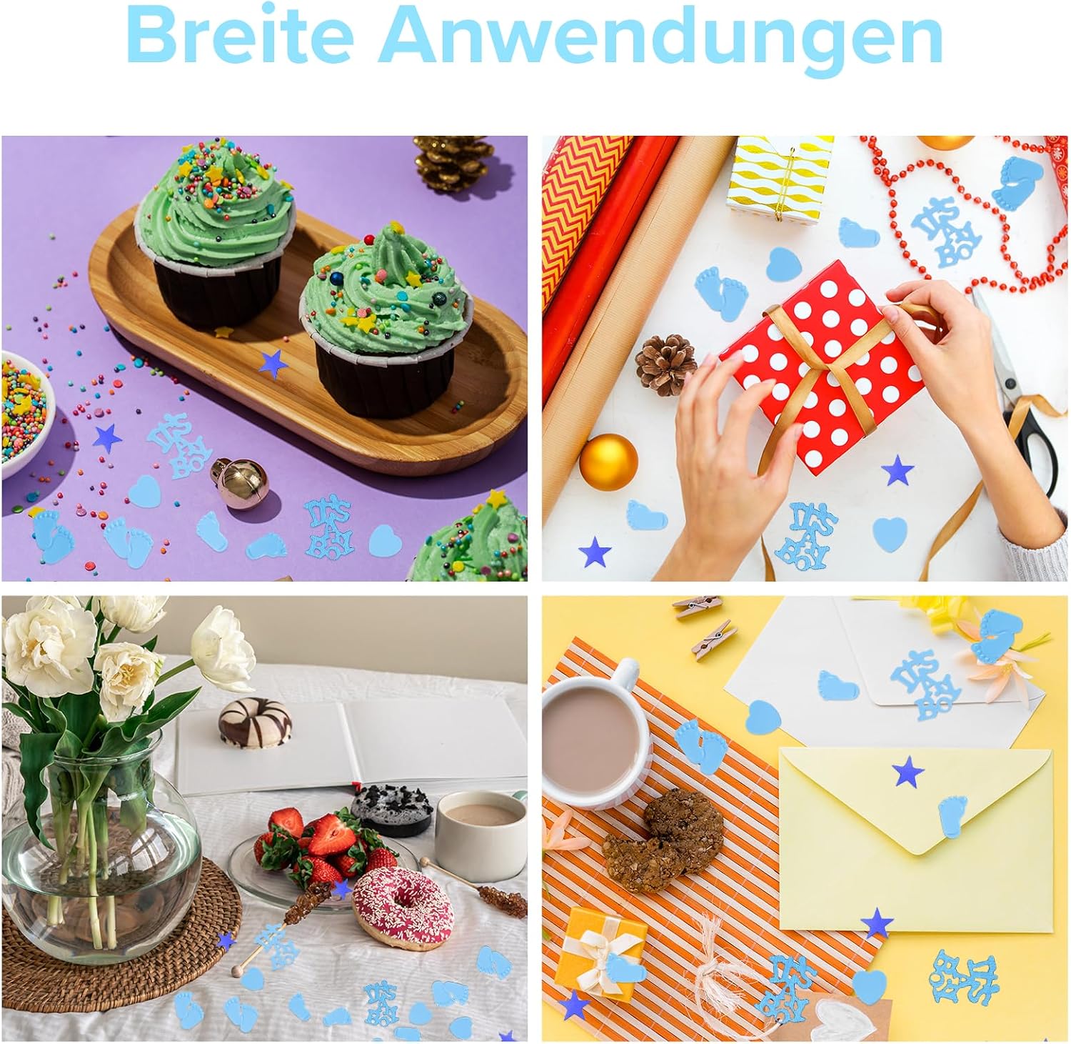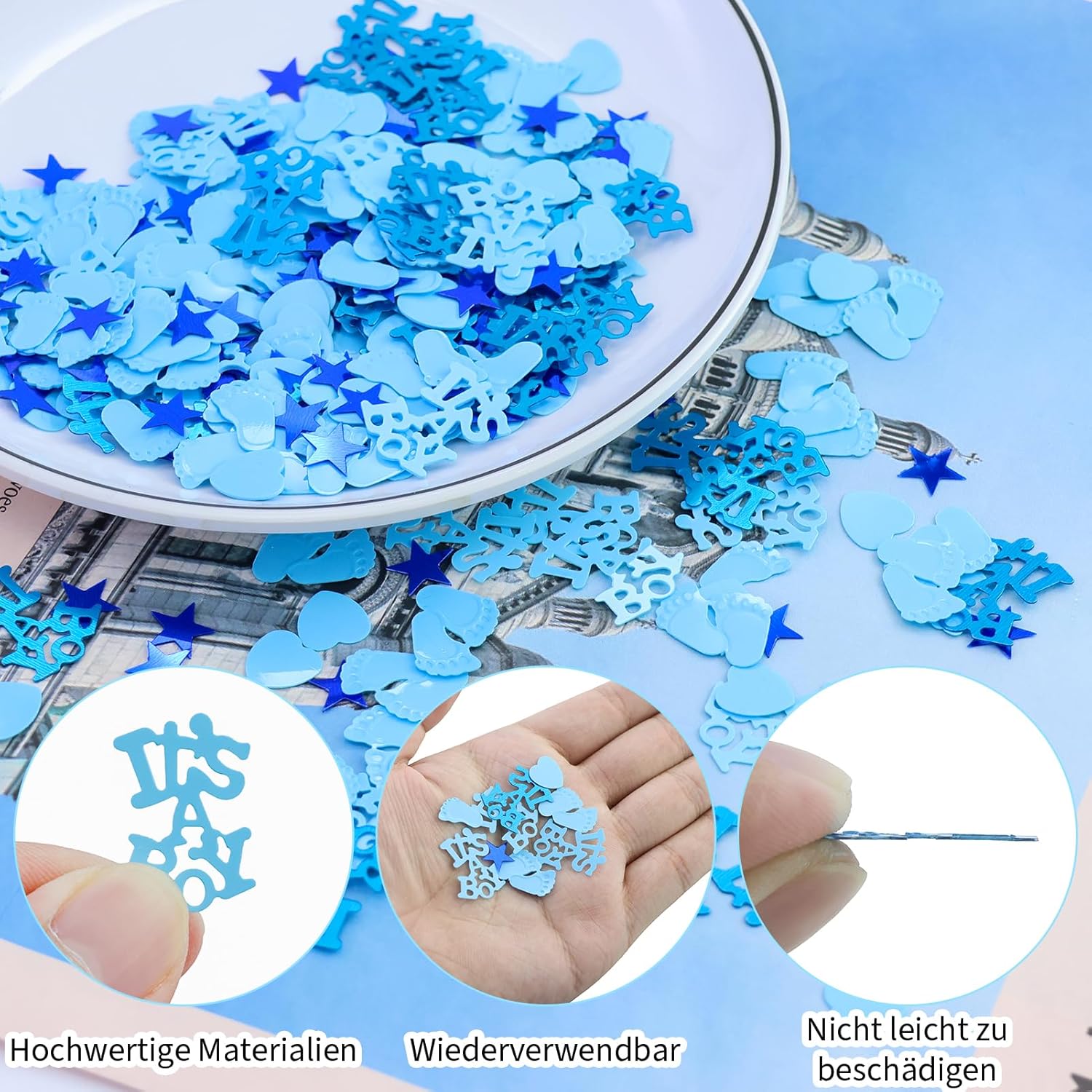 Splendidi coriandoli per la decorazione della baby shower: questi set di coriandoli da tavolo contengono motivi come piedi, stelle, rombi, ecc. I graziosi design creano un'atmosfera romantica e amorevole alla festa Coriandoli in PVC: le decorazioni per baby shower per ragazzi sono realizzate in PVC robusto e di alta qualità. Non si deformano facilmente, sono durevoli e possono essere riutilizzati a lungo. La superficie scintillante e i colori vivaci creano un'atmosfera festosa Decora la tua festa: copri il tavolo per un'atmosfera suggestiva, lancia i coriandoli in aria o spargili sul pavimento. Da utilizzare per scrapbooking, artigianato, come materiale di riempimento per scatole regalo trasparenti e bottiglie o come decorazione per biglietti di auguri e inviti fatti in casa. Rendi i tuoi articoli unici e accattivanti Versatile: non solo come decorazione per baby shower, ma anche come decorazione da tavolo per feste sessuali del bambino. Puoi spargere i coriandoli anche su scatole regalo, tavoli da torta, cappelli fatti in casa, sacchetti regalo, inviti per feste, decorazioni per torte, tovaglie, letti, bottiglie di vetro e confezioni per torte, per creare una perfetta baby shower La confezione include: 15 g di coriandoli per baby shower, per decorare la vostra festa e dare alla vostra festa un'atmosfera allegra. Se stai pianificando un divertente baby shower o una festa di genere Reveal, i nostri coriandoli sono ideali per celebrare eventi a tema