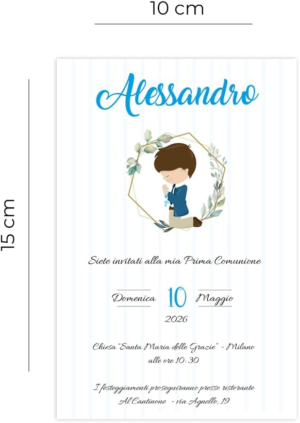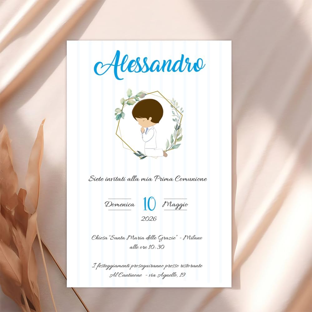 Cartoncino di 200gr PERSONALIZZIONE FACILE ED INCLUSA RENDI UNICO E SPECIALE IL TUO INVITO PER LA PRIMA COMUNIONE PRODOTTO MADE IN ITALY