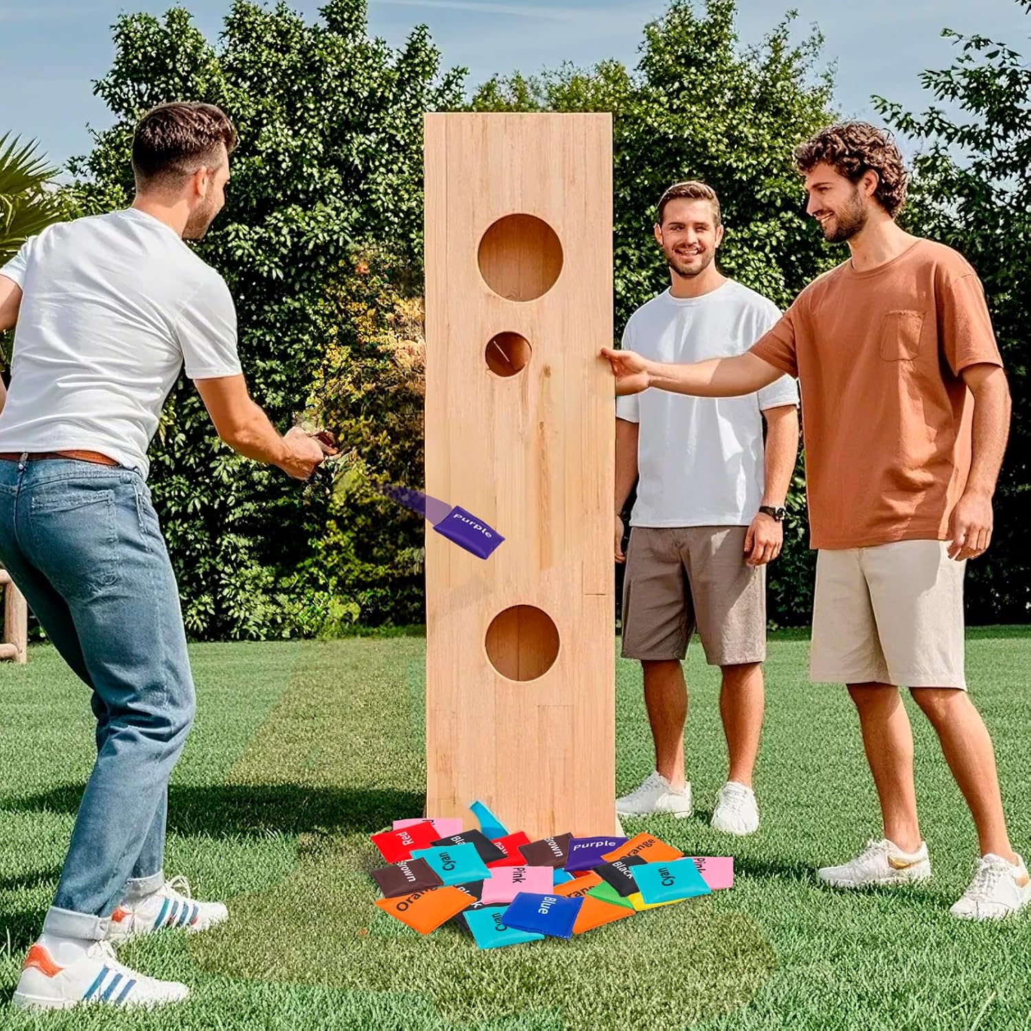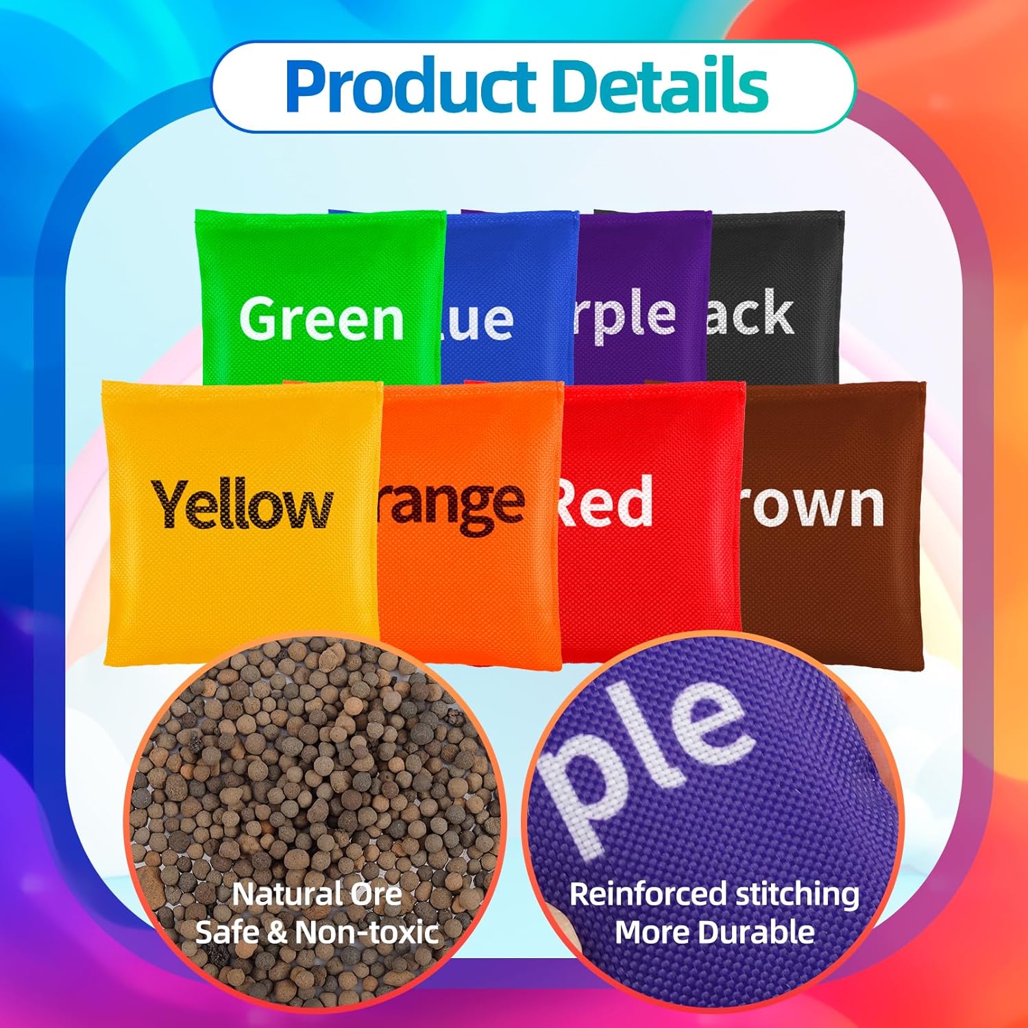 Sacchetti Cornhole: riceverete 20 sacchetti per fagioli Cornhole in 10 diversi colori: rosso, arancione, giallo, rosa, blu, viola, turchese, verde, marrone e nero. È incluso un sacchetto di stoffa nera con coulisse per riporlo comodamente. Materiale di alta qualità: il nostro set di sacchetti di fagioli è realizzato in granulato ceramico, il cui componente principale è la terra. La borsa esterna è realizzata in poliestere, che non si danneggia facilmente durante il gioco e ha una lunga durata. Gioco sicuro: ogni sacchetto di fagioli misura circa 6 x 6 cm, ideale per mani piccole. Sono facili da maneggiare, favoriscono la destrezza e supportano uno stile di vita sano – tutto in modo sicuro. Emozionante gioco di tiro e cattura: attraverso divertenti giochi di lancio e cattura, i bambini imparano a conoscere i colori giocosamente migliorando il loro equilibrio e la coordinazione occhio-mano. Sia in classe che durante lo studio a casa, questi giocattoli ispirano l'entusiasmo dei bambini per l'apprendimento. Multiuso: i sacchetti da lancio sono ideali per giochi di gruppo come lancio e cattura. Sono la scelta ideale per riunioni di amici, barbecue, campeggio, feste, giochi di lancio, gite, attività scolastiche o in classe.