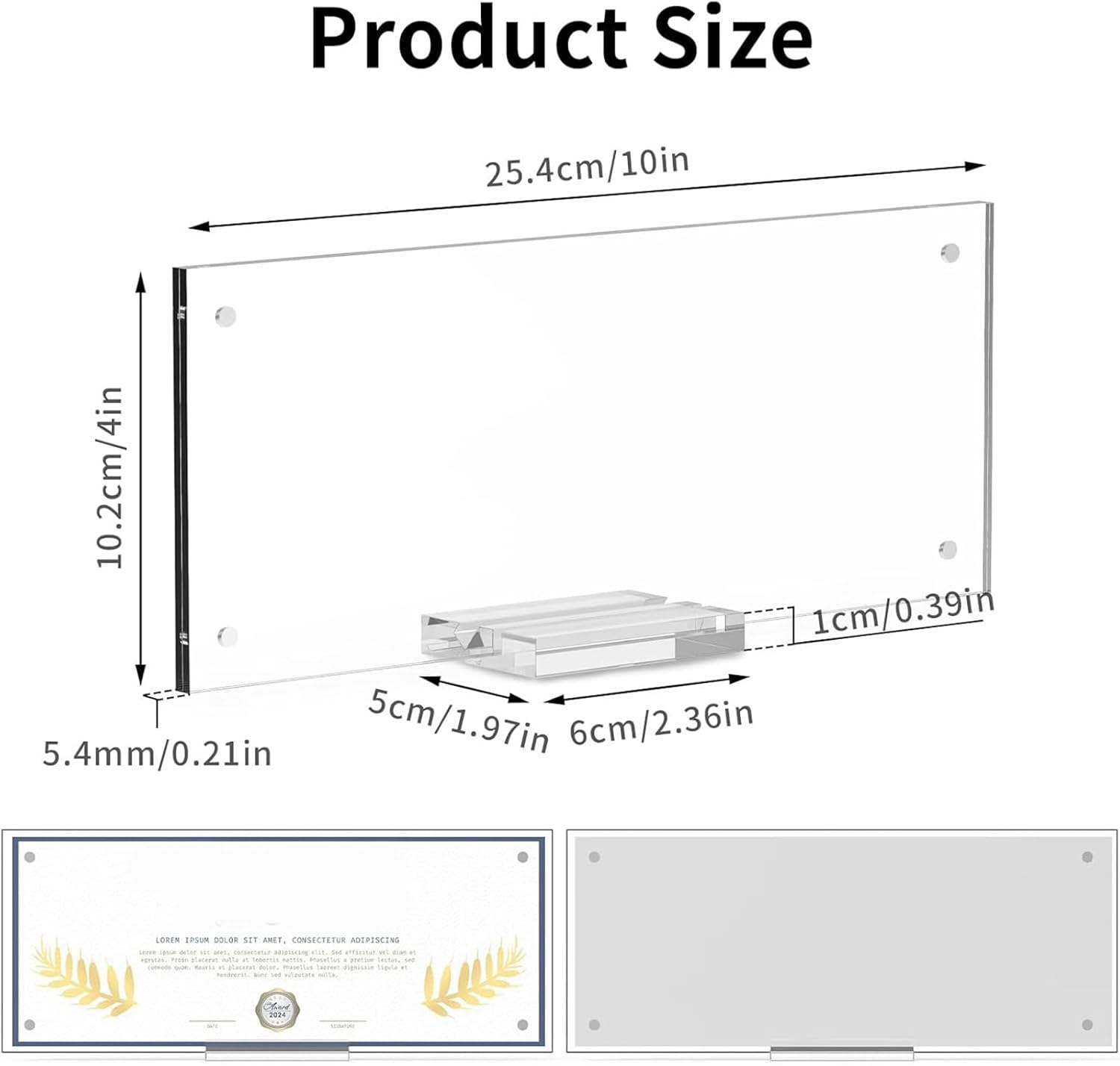 I suoi semplici sistemi di chiusura rivoluzionano l'accessibilità dei documenti mantenendo una trasparenza a 360 gradi per una visione multi-angolo di dettagli intricati Realizzata in acrilico infrangibile di alta qualità, questa vetrina combina una trasparenza resistente alle impronte digitali con bordi rinforzati per la conservazione protetta dalle intemperie di oggetti delicati Ideale per credenziali da ufficio a parete, musei da tavolo, mostre di valuta o espositori su scaffali galleggianti di diplomi in spazi abitativi moderni vetrina licenze, certificati e oggetti da collezione con questa cornice in acrilico con installazione di rilascio dello strumento e visibilità chiara Progettato per imprenditori che necessitano di presentazioni professionali di documenti, collezionisti che salvaguardano valute rare e casalinghe che organizzano foto o premi cari