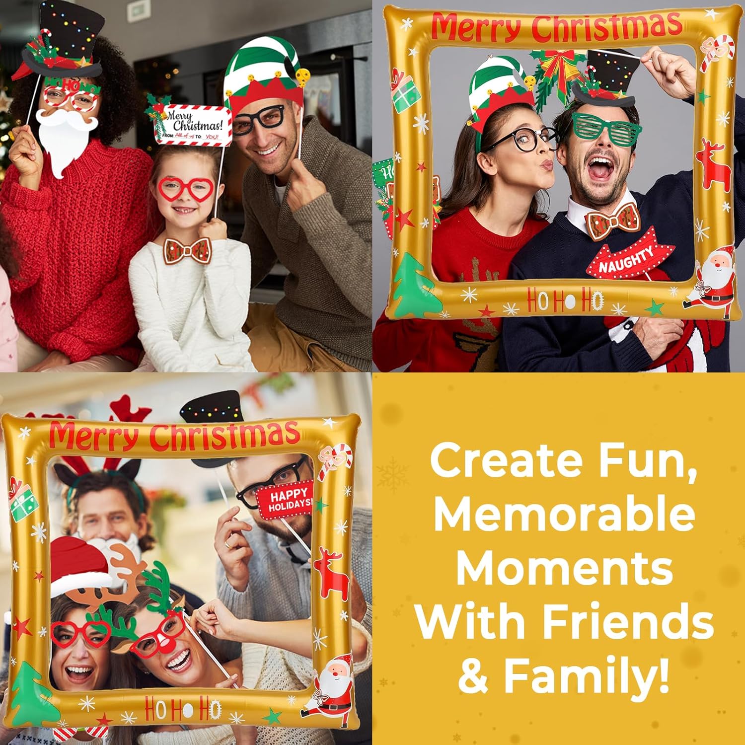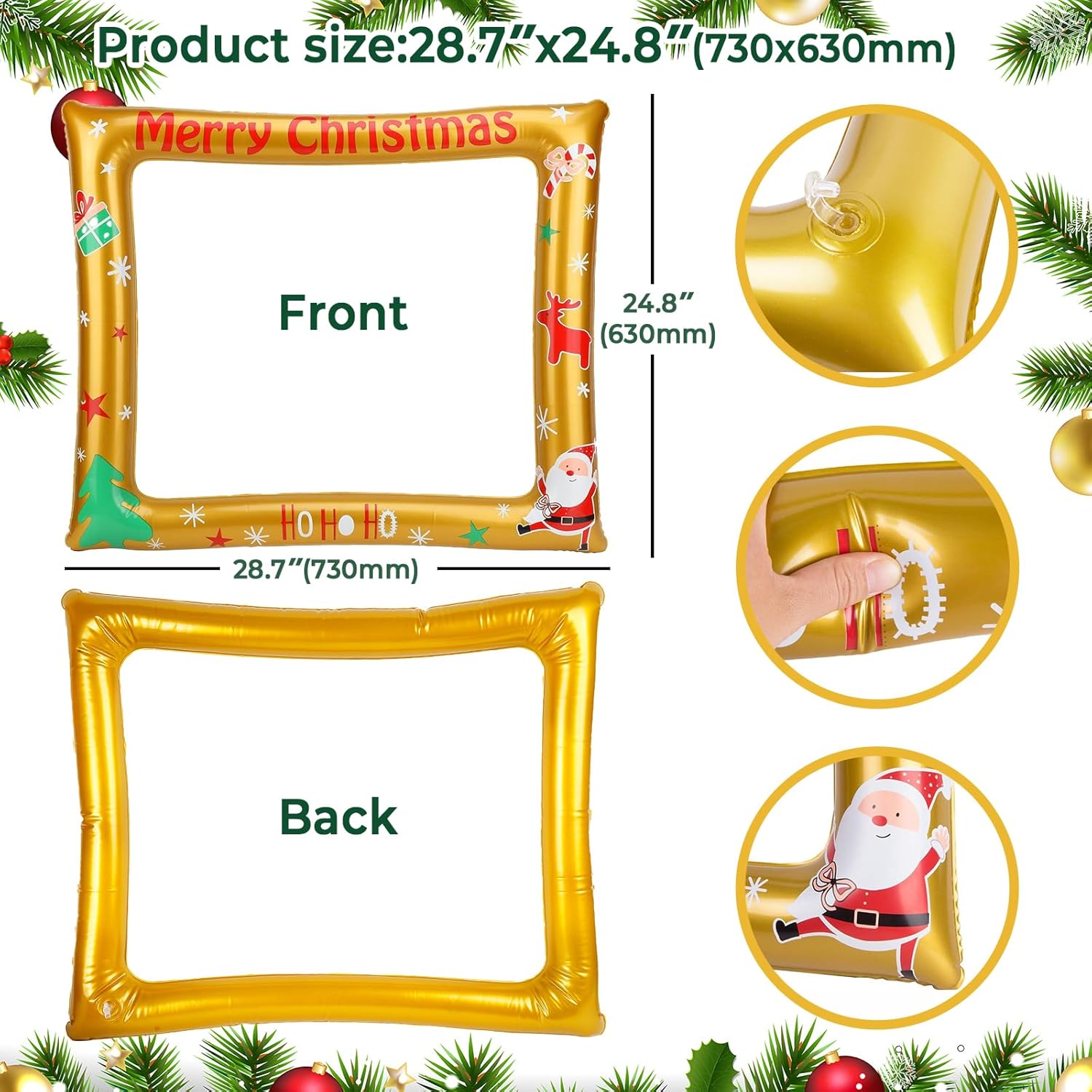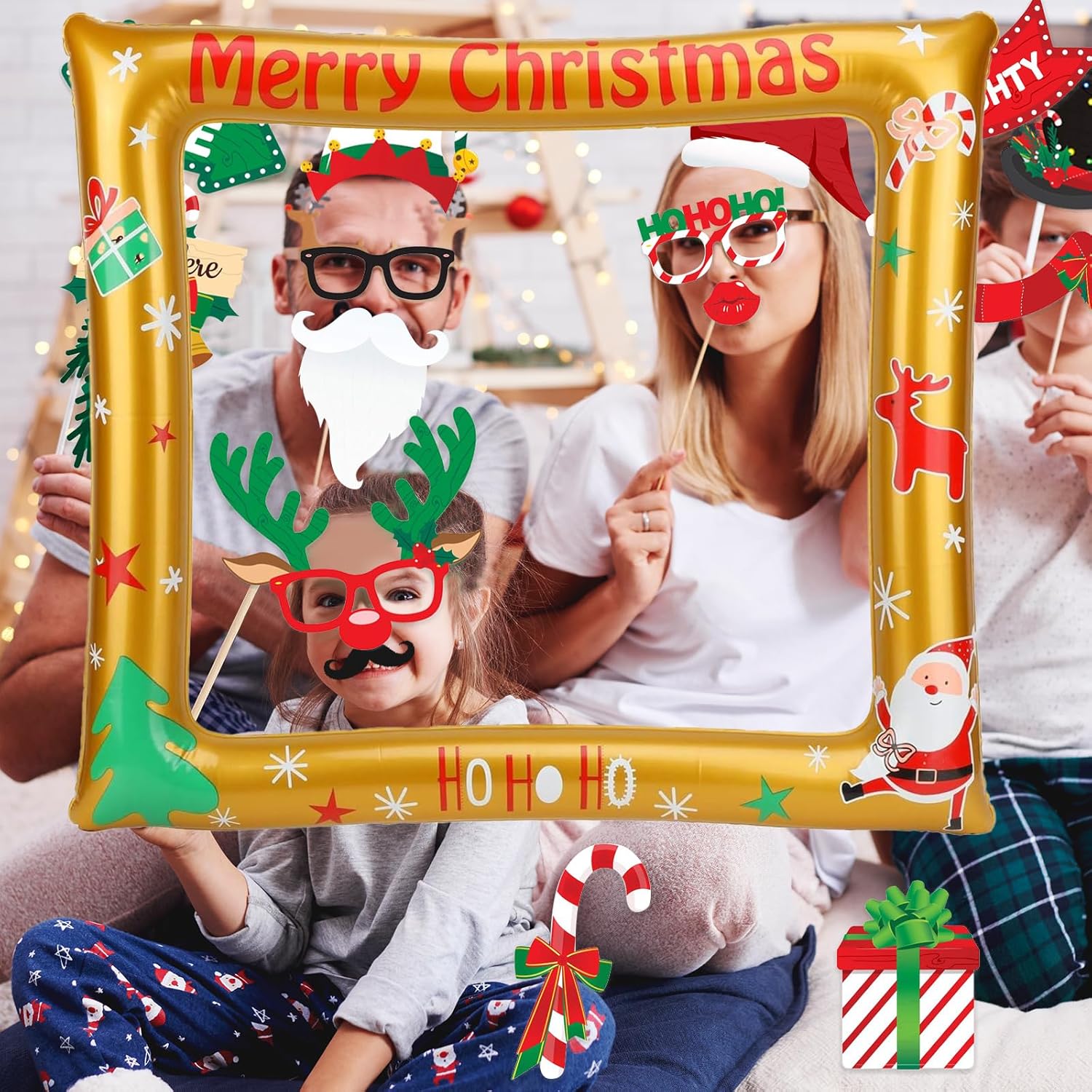 🎅【Set di Natale per foto di scena】 Include 1 cornice per foto gonfiabile color oro, 38 oggetti di scena per foto di Natale, 38 punti di colla e 38 bastoncini di legno. Questo cofanetto fotografico completo è perfetto per foto divertenti e originali e video unici alla vigilia di Natale. Garantisce l'interattività e rende ogni festa di Natale aziendale o familiare un'esperienza gioiosa. 🎄【Cornice per foto natalizia gonfiabile】Questa cornice per foto natalizia gonfiabile da 73 x 63 cm è realizzata in plastica di alta qualità ed è quindi pratica, attraente e riutilizzabile. La cornice dorata per selfie gonfiabile è stampata con la scritta "Buon Natale" e mostra elementi natalizi come alberi di Natale, Babbo Natale, alci, fiocchi di neve, dolci, regali e stelle: un must assoluto per la tua festa di Natale. 🍭 【38 accessori per scatole fotografiche di Natale】 Gli accessori per scatole fotografiche di carta includono 38 motivi natalizi, tra cui cappelli di Babbo Natale, occhiali, labbra, baffi, sciarpe, scatole regalo, dolciumi, cravatte, papillon, lecca-lecca, corna, orecchie da elfo, cartelli e detti. Sia adulti che bambini adoreranno questi oggetti di scena e ognuno troverà il suo modello preferito che aggiungerà un'atmosfera natalizia unica e vivace alla tua festa di Natale. ❄️ 【Versatile】 Gli accessori per scatole fotografiche per Natale non servono solo come divertenti oggetti di scena per foto, ma sono perfetti anche come decorazioni natalizie, ad es. B. come decorazione per la tavola di Natale, decorazione murale, decorazione per albero di Natale o decorazione per camino. Possono anche essere combinati con altri accessori natalizi come vimini, palline, luci e nastri per creare una scena natalizia creativa. 🎁【Regalo di Natale perfetto】Gli accessori fotografici per la festa di Natale sono il regalo di Natale perfetto per famiglia, amici e bambini. Con questi divertenti accessori per cabine fotografiche puoi scattare foto di festa divertenti e condivisibili per i tuoi amici e familiari, creando ricordi meravigliosi!
