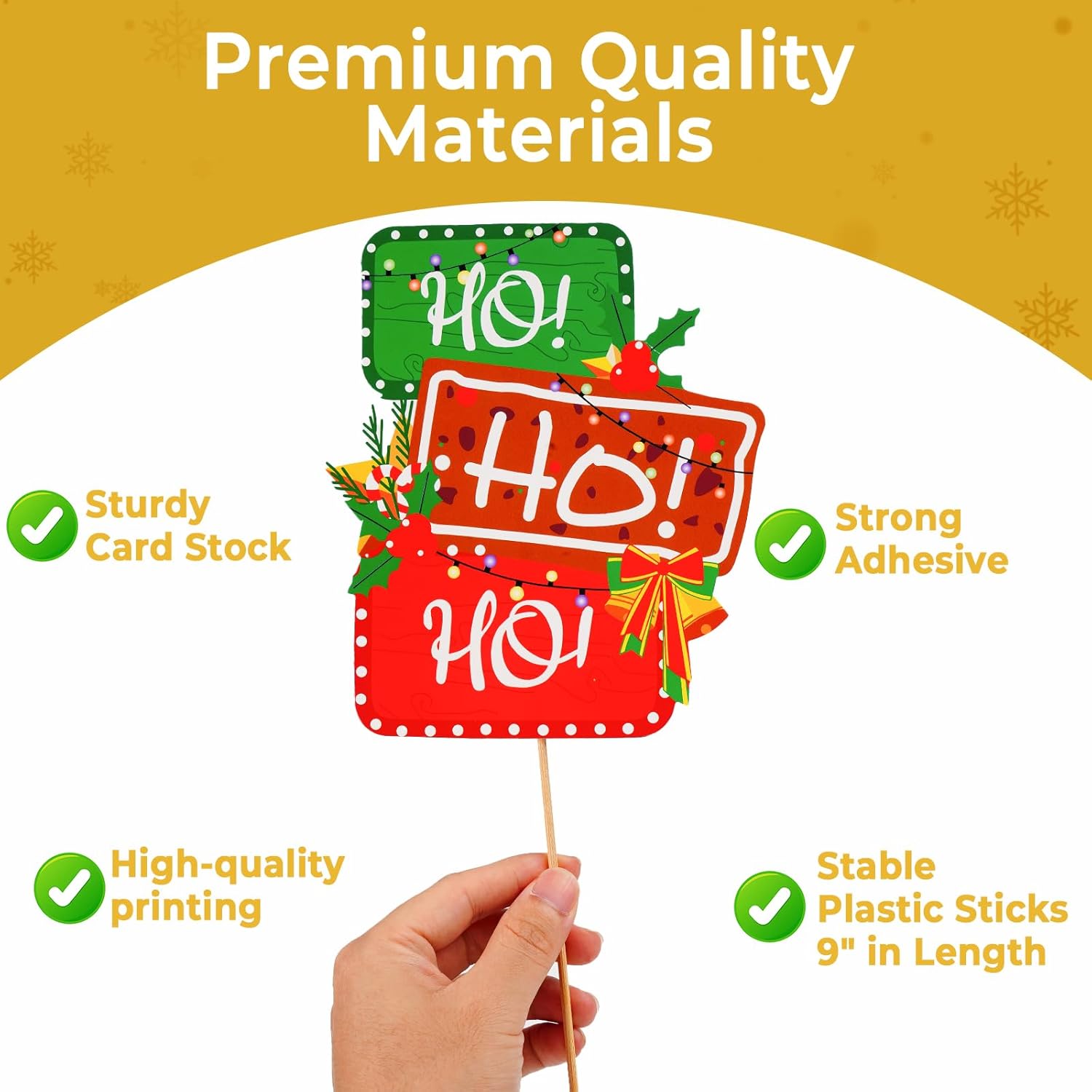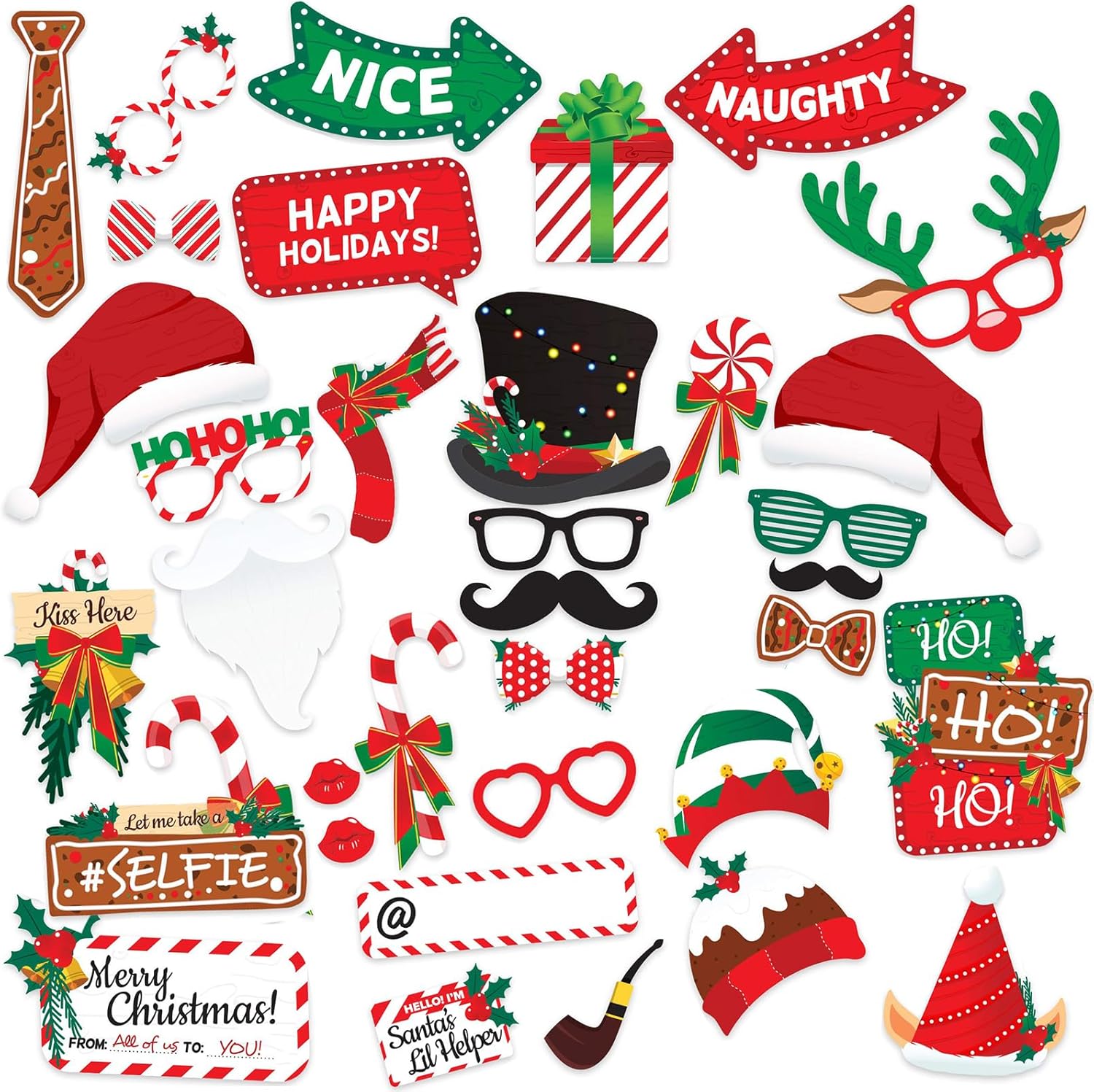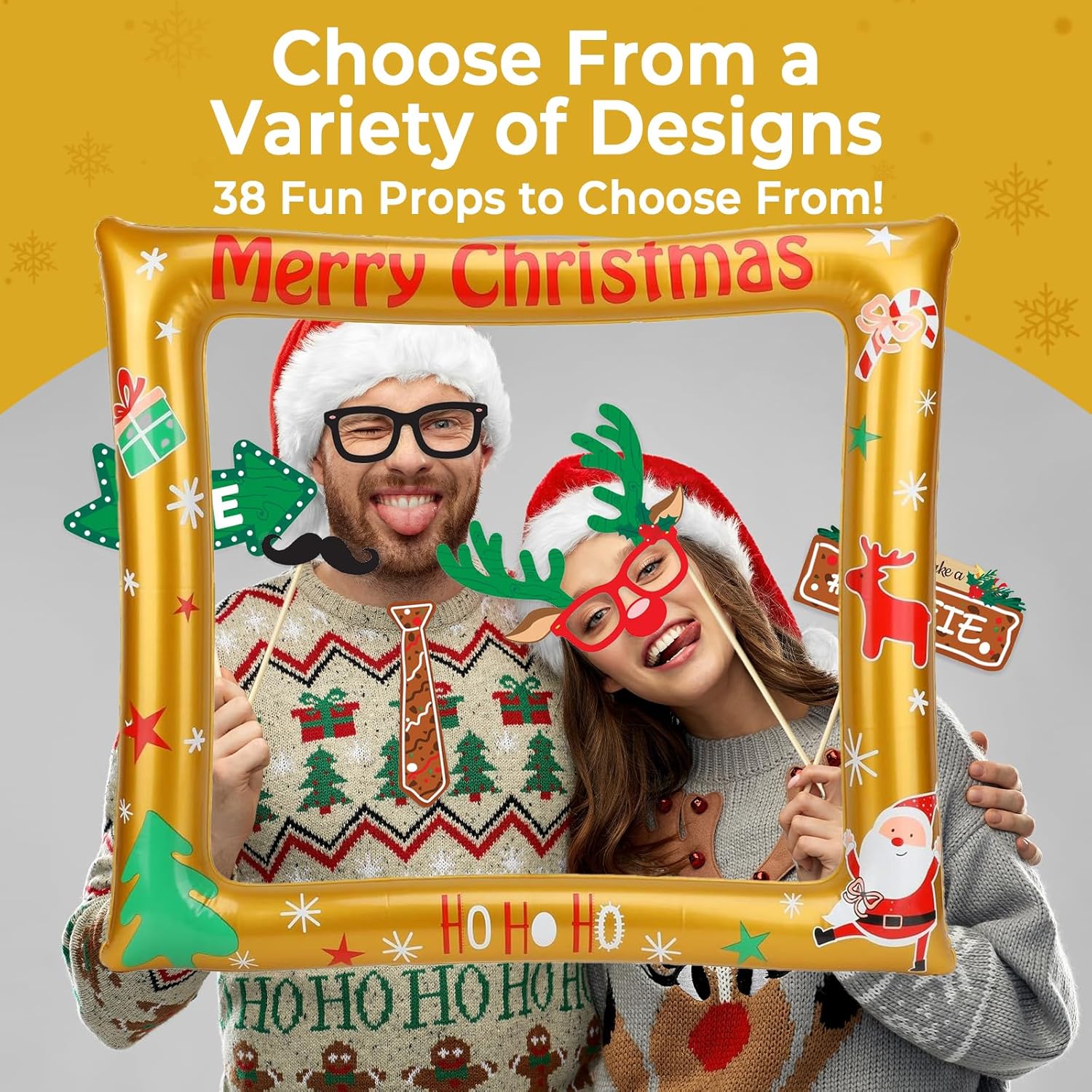 🎅【Set di Natale per foto di scena】 Include 1 cornice per foto gonfiabile color oro, 38 oggetti di scena per foto di Natale, 38 punti di colla e 38 bastoncini di legno. Questo cofanetto fotografico completo è perfetto per foto divertenti e originali e video unici alla vigilia di Natale. Garantisce l'interattività e rende ogni festa di Natale aziendale o familiare un'esperienza gioiosa. 🎄【Cornice per foto natalizia gonfiabile】Questa cornice per foto natalizia gonfiabile da 73 x 63 cm è realizzata in plastica di alta qualità ed è quindi pratica, attraente e riutilizzabile. La cornice dorata per selfie gonfiabile è stampata con la scritta "Buon Natale" e mostra elementi natalizi come alberi di Natale, Babbo Natale, alci, fiocchi di neve, dolci, regali e stelle: un must assoluto per la tua festa di Natale. 🍭 【38 accessori per scatole fotografiche di Natale】 Gli accessori per scatole fotografiche di carta includono 38 motivi natalizi, tra cui cappelli di Babbo Natale, occhiali, labbra, baffi, sciarpe, scatole regalo, dolciumi, cravatte, papillon, lecca-lecca, corna, orecchie da elfo, cartelli e detti. Sia adulti che bambini adoreranno questi oggetti di scena e ognuno troverà il suo modello preferito che aggiungerà un'atmosfera natalizia unica e vivace alla tua festa di Natale. ❄️ 【Versatile】 Gli accessori per scatole fotografiche per Natale non servono solo come divertenti oggetti di scena per foto, ma sono perfetti anche come decorazioni natalizie, ad es. B. come decorazione per la tavola di Natale, decorazione murale, decorazione per albero di Natale o decorazione per camino. Possono anche essere combinati con altri accessori natalizi come vimini, palline, luci e nastri per creare una scena natalizia creativa. 🎁【Regalo di Natale perfetto】Gli accessori fotografici per la festa di Natale sono il regalo di Natale perfetto per famiglia, amici e bambini. Con questi divertenti accessori per cabine fotografiche puoi scattare foto di festa divertenti e condivisibili per i tuoi amici e familiari, creando ricordi meravigliosi!