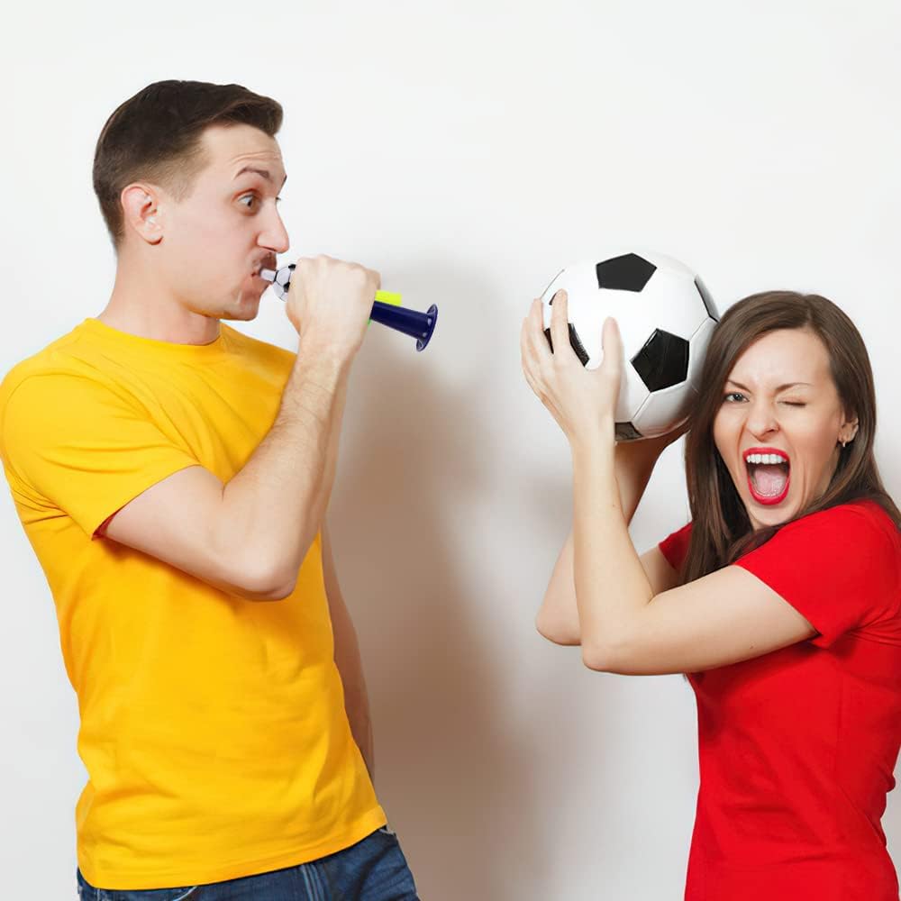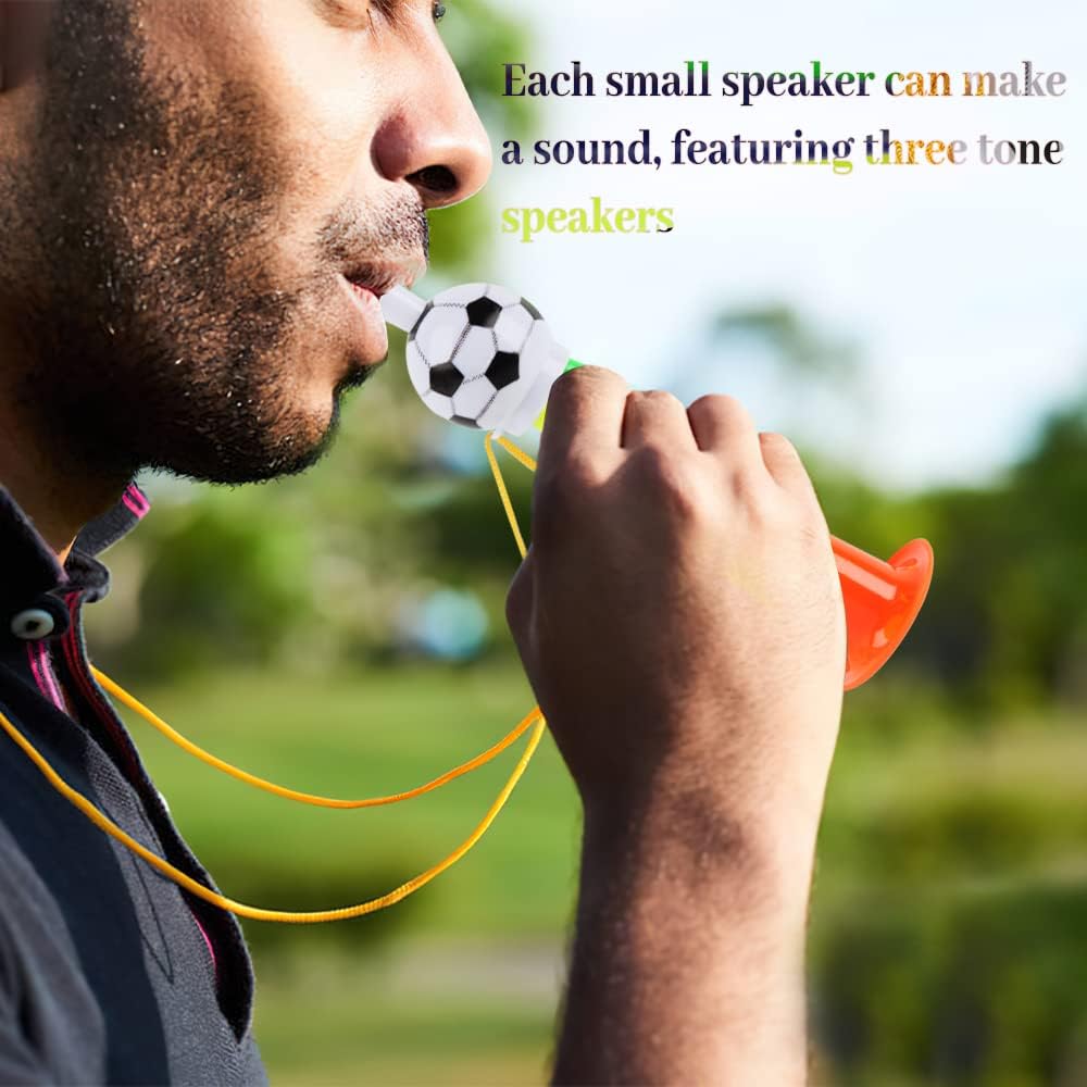 1.⚽【Dimensioni del Prodotto】 Questo corno da calcio è lungo 19 CM e largo 7 CM, leggero e piccolo, il che lo rende facile da trasportare. Puoi portarlo con te per guardare le partite e fare il tifo per la tua squadra. 2.🏀【Il volume è Giusto】 Il volume di questa tromba di plastica bambini non è né troppo alto per causare fastidio all'orecchio né troppo basso per sentirsi impercettibile. Il giusto volume protegge le tue orecchie e attira l'attenzione degli altri. 3.🏈【Alta Qualità】 Questi cheer tromba da calcio per fans sono realizzati in plastica sicura e non tossica, che è resistente e durevole, superficie liscia e non danneggia il corpo umano. Adatto ad adulti e bambini di tutte le età. 4.🥎【Facile da Trasportare】 Il corno musicale giocattolo per bambini adotta un design a forma di pallone da calcio nuovo e unico. Ogni vuvuzela a fiato è dotato di una corda in modo da poterlo appendere al collo senza preoccuparti di perderlo. 5.🏐【Ampiamente Usato】 Non solo puoi usare questo tromba giocattolo per tifare per la squadra che sostieni, può anche essere usato come regalo e giocattolo per una festa di compleanno a tema calcio per bambini, e chiunque ami il calcio lo adorerà.