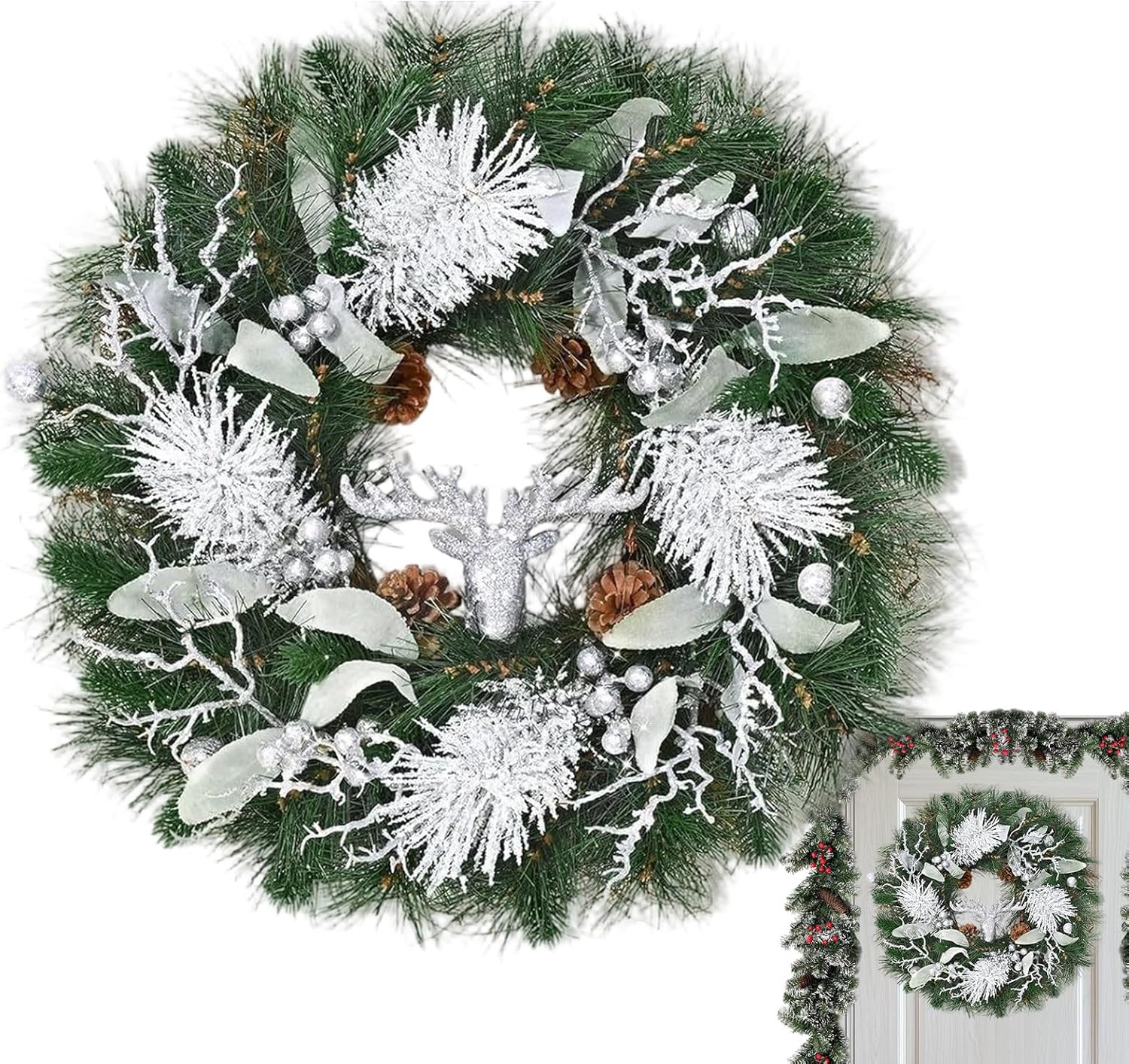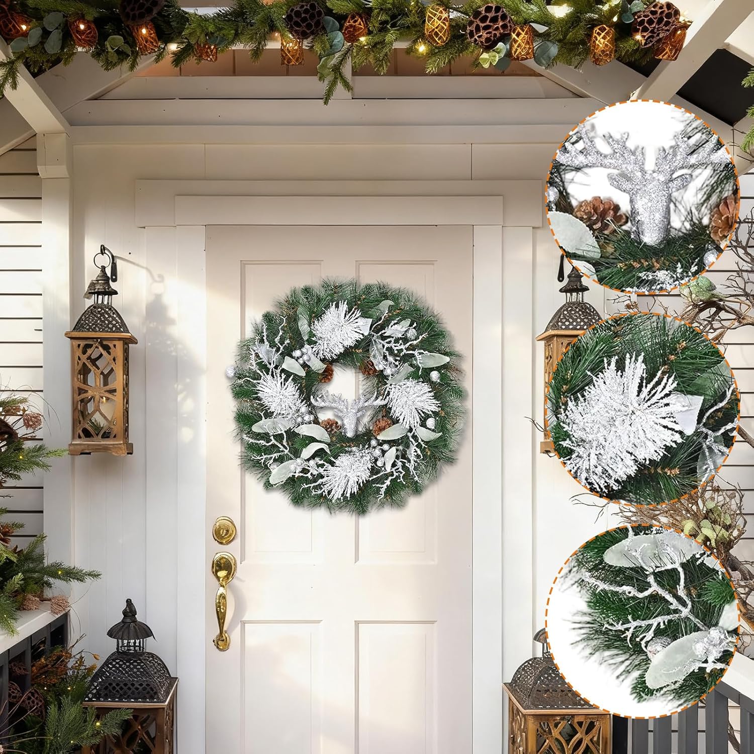 Decorazione Natalizia a Lunga Durata: Questa ghirlanda natalizia grande è costruita con materiali duraturi che resistono sbiadimento nel , offrendo un aspetto realistico e un design robusto per anni di piacere durante le festività. Ideale per porte, pareti o caminetti, la sua struttura e i colori vivaci si mantengono intatti stagione dopo stagione, aggiungendo un tocco festivo e accogliente a qualsiasi ambiente senza necessità di manutenzione o sostituzioni frequenti. Decorazione Natalizia Semplice: Dotata di una base robusta in rattan, la ghirlanda natalizia assicura una costruzione duratura per un posizionamento sicuro su porte o pareti, mentre il suo design versatile consente una sospensione facile in interno o esterno, migliorando le decorazioni festive con stabilità affidabile e una presentazione elegante che semplifica l'addobbo per le feste con risultati impeccabili. Eleganza Valorizzata: La corona di Natale per porta migliora le ambientazioni festive attraverso la sua bellezza elegante, funzionando in modo seamless per uso interno ed esterno, fornendo opzioni decorative multiuso che migliorano le celebrazioni e la rendono un gesto di benvenuto ideale per ogni evento. Tocco Stagionale Incantevole: Realizzata per migliorare l'arredamento domestico, la corona di Natale esterna combina verde artificiale con incanto invernale, offrendo una decorazione elegante e funzionale che porte e aree esterne senza sforzo; il suo design accattivante aggiunge un elemento di calore e benvenuto a ogni ingresso, perfezionando l'atmosfera delle feste Scelta Regalo Perfetta: Questa ghirlanda natalizia trasforma qualsiasi area in un ambiente allegro e festivo, offrendo una decorazione funzionale per le porte e rappresentando un'opzione regalo eccellente per condividere lo spirito del Natale con famiglia, amici e colleghi. La sua capacità di creare un'atmosfera la rende ideale per essere donata in occasioni speciali, portando calore e allegria in ogni setting. Decorazione pratica e significativa, è perfetta per diffondere la gioia natal