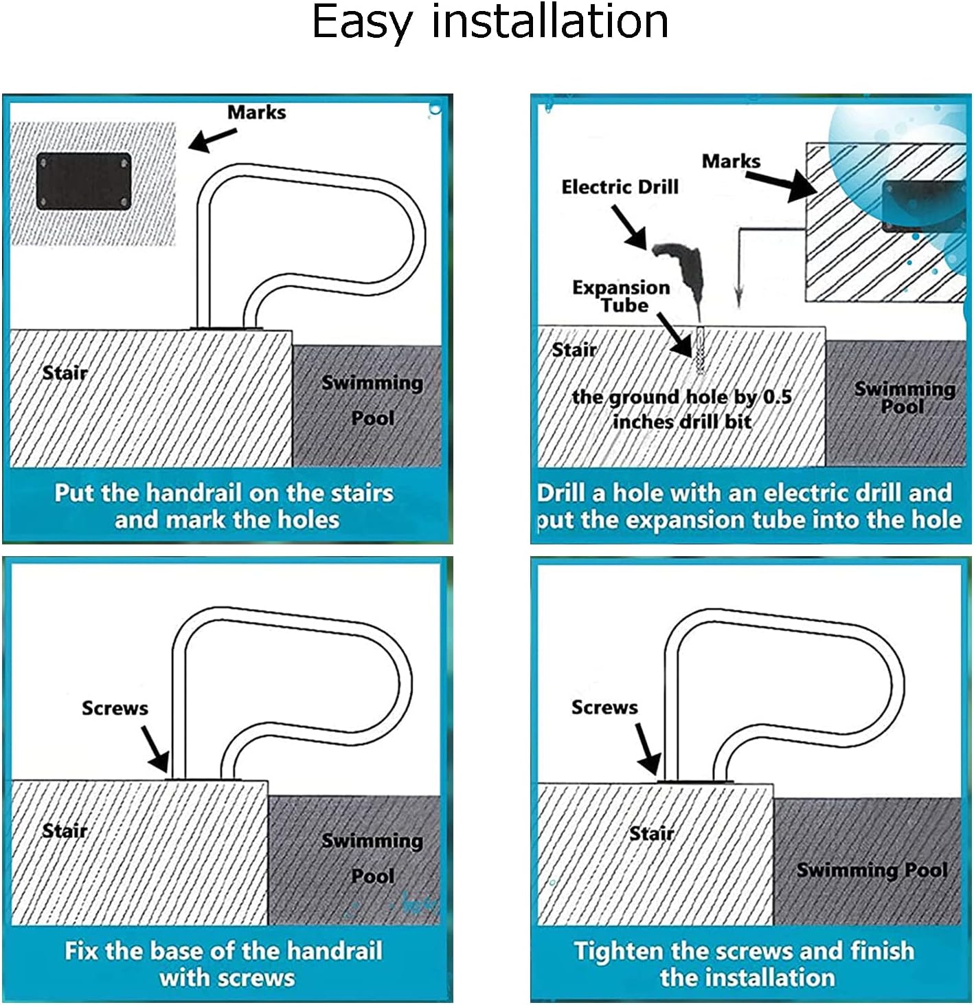 Corrimano for piscina [Facile da montare] Il corrimano for piscina è dotato di base fissa e di una serie di accessori e utensili. I fori preforati sulla piastra di montaggio rendono l'installazione rapida e semplice. La piastra di montaggio è ampia e i fori di distribuzione sono chiari e allineati. È progettato for ponti in cemento, legno e pietra. Corrimano for piscina [Alta sicurezza] Dotati di una base allargata stabile, i braccioli for piscina sono saldamente collegati al gomito, for garantire un utilizzo sicuro e una forte capacità di carico, consentendo di entrare e uscire facilmente dalla piscina. Corrimano for piscina [Impugnatura ergonomica] Il bracciolo for piscina adotta un design curvilineo e ergonomico, che si adatta alla forma della mano ed è comodo da impugnare. È adatto for piscine con gradini, ingressi inclinati, centri benessere, parchi acquatici, ecc. Corrimano for piscina [Corrimano in acciaio inox] Questo corrimano for piscina è realizzato in acciaio inox di alta qualità, con buona resistenza alla ruggine e durevolezza. Questa scaletta for piscina può essere immersa in acqua for lungo tempo, mantenendo l'aspetto originale. La sua buona resistenza all'usura ne migliorerà la durata e garantirà prestazioni elevate durante l'uso. La forma del corrimano della piscina è facile da tenere, non è facile scivolare, lo stile è nuovo, la struttura è ragionevole, l'aspetto è bello, il miglior design della curva è la decorazione perfetta per la vostra piscina.