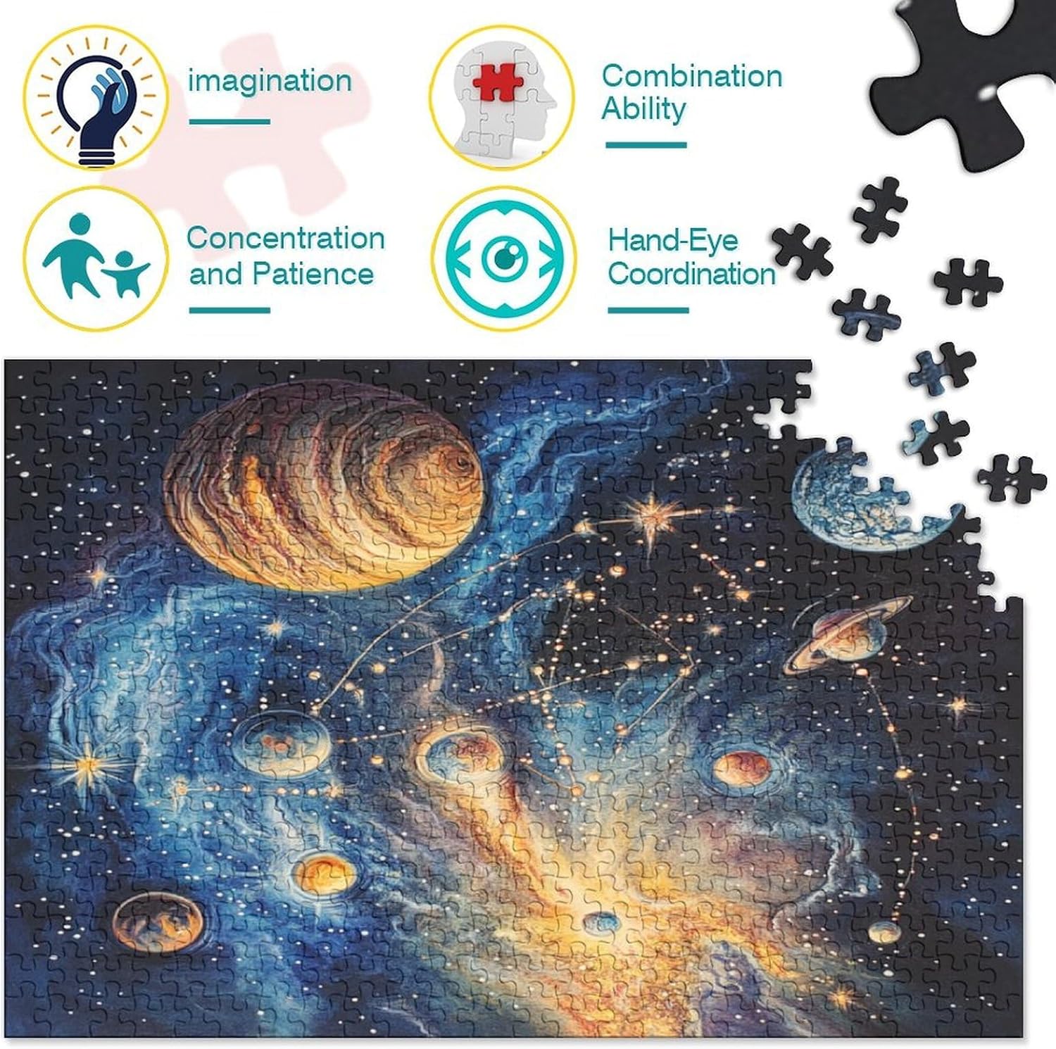🌸GIOCHI PER ADULTI: una sfida emozionante da regalare a tutti li appassionati di puzzle e amanti dell'arte, ideale per uomo, donna o ragazzi; i puzzle aiutano a esercitare la memoria, migliorano la concentrazione e stimolano l'intuizione 🌸QUALITÀ PREMIUM: il massimo del divertimento con prodotti di altissima qualità in termini di materiali, motivi e design; realizzati in legno tagliati con fustelle fatte a mano, per un risultato impeccabile 🌸Buon regalo: il puzzle finito misura 70x50cm/1000pcs una volta completato. I migliori regali per ragazzi e ragazze dai 14 anni in su per compleanni o festività (Natale, Halloween, Ringraziamento, ecc.) 🌸Concediti una piacevole pausa relax! La nostra linea di puzzle da Cosmic Galaxy 1000 pezzi è il regalo perfetto per chi ama ritagliarsi un momento di svago e di relax mettendo alla prova le proprie abilità logiche e di concentrazione 🌸I nostri Puzzle ti offrono un'ampia scelta d'immagini capace di soddisfare i gusti di tutti: grazie alla qualità dei materiali riciclati, la robustezza e resistenza dei singoli pezzi insieme alla brillantezza dei colori, ti garantiamo un risultato impeccabile e privo di riflessi