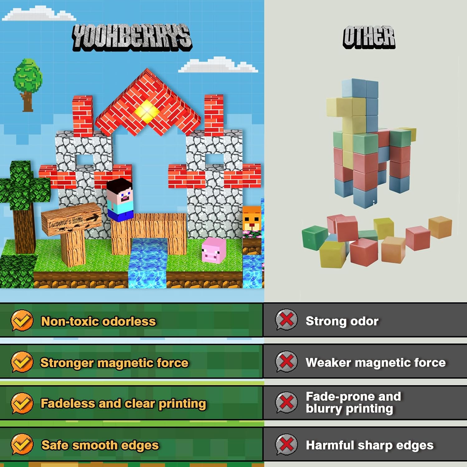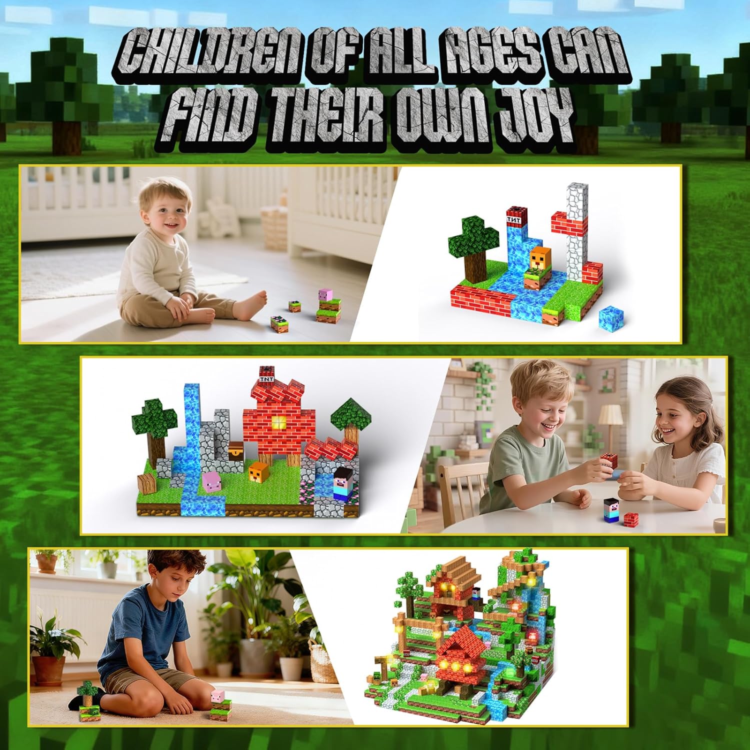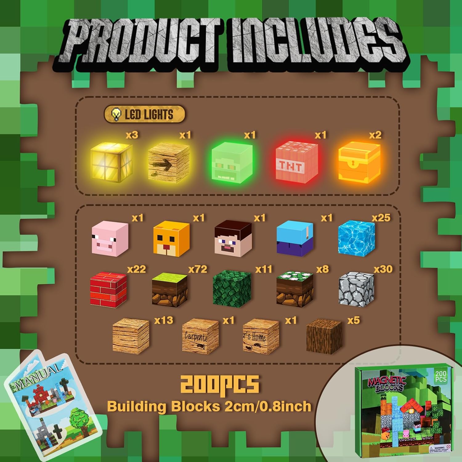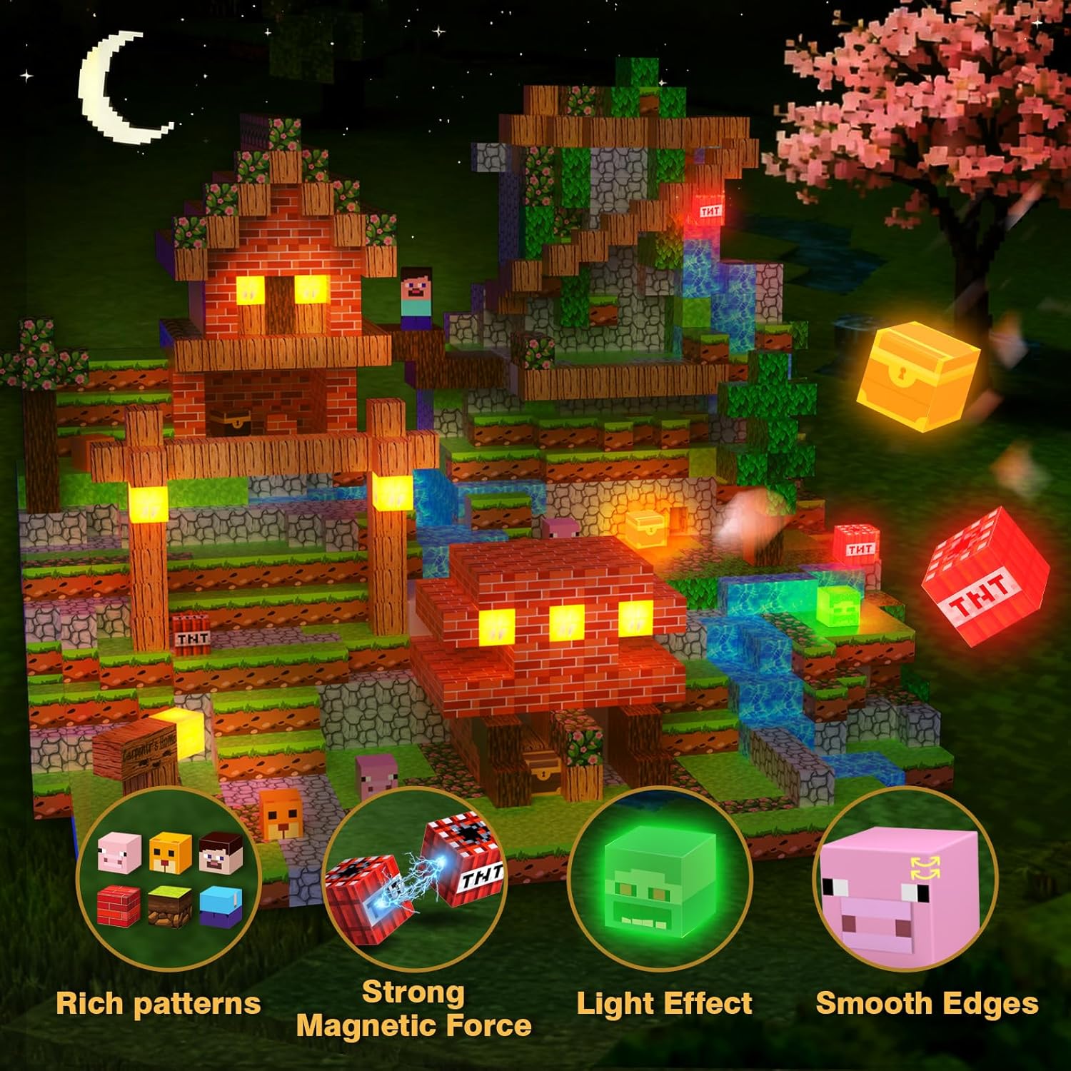 🧱【Costruzioni Magnetiche per Bambini 200 PCS】: Questo set di cubi magnetici comprende 200 pezzi (di cui 8 che si illuminano al buio), ciascuno delle dimensioni di circa 2 × 2 × 2 centimetri. Caratterizzati da colori vivaci e opzioni di gioco versatili, I bambini possono costruire foreste, capanne di legno o giardini nella Valle Incantata, stimolando l'immaginazione e la creatività attraverso la costruzione. Completo di alberi, campi di fiori, fiumi, personaggi e animali, immerge i più piccoli nella gioia dell'esplorazione della natura e della narrazione! 🌳【Innovativo Design che si Illumina al Buio】: Otto esclusivi blocchi magnetici luminosi si illuminano con il semplice tocco di un interruttore, aggiungendo magici effetti di luce alle strutture. Costruisci di giorno, brilla di notte: guarda le creazioni dei tuoi bambini brillare di fascino magico tra luci e ombre mutevoli, accendendo la curiosità e l'ispirazione creativa. 🧱【Design Compatibile】: I nostri costruzioni magnetiche per bambini sono compatibili con la maggior parte dei set di blocchi magnetici presenti sul mercato, garantendo ai bambini una maggiore libertà e un divertimento infinito nella costruzione. Attraverso l'assemblaggio e la costruzione di blocchi magnetici, i bambini sviluppano il pensiero logico, la consapevolezza spaziale, la concentrazione e le capacità di lavoro di squadra. Questo giocattolo combina perfettamente l'educazione STEM con il legame genitore-figlio, rendendolo un giocattolo introduttivo ideale. 🌳【Sicuro e Resistente】: Realizzati con materiali ecologici, questi costruzioni magnetiche per bambini sono robusti e resistenti agli urti, inodori, con bordi arrotondati che sono lisci e delicati sulle manine dei bambini. I magneti ad alta resistenza integrati assicurano un'adesione sicura senza allentarsi, garantendo la stabilità strutturale. Consentono ai bambini di esplorare e costruire con sicurezza in un ambiente sicuro. 🧱【Regalo Creativo】: Sono dotati di un'elegante confezione regalo per riporli facilmente e trasportarli. Che si tratti di regali per compleanni, Natale, festa dei bambini o iscrizione a scuola, questi costruzioni magnetiche per bambini sono il regalo perfetto per i bambini dai 3 anni in su. Incoraggiano i bambini ad allontanarsi dagli schermi, a impegnare le mani e la mente e a godersi momenti felici attraverso la creazione e la condivisione!