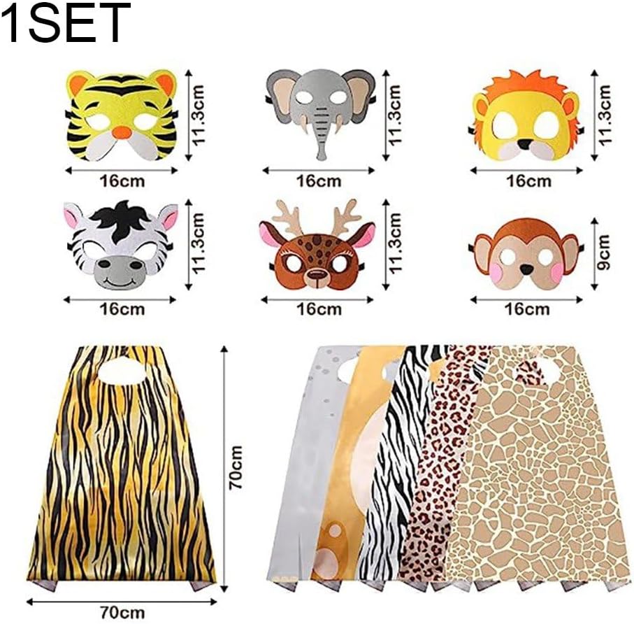 【Materiale morbido】 Il mantello per animali per bambini è realizzato in poliestere, delicato sulla pelle, comodo indossare, morbido, traspirante, lavabile e riutilizzabile. 【Taglia unica per maggior parte】 lunghezza dal colletto all'orlo del mantello degli animali è di circa 70 cm ed è adatta per ragazzi e ragazze di altezza compresa tra 80 e 115 cm. 【Occasioni applicabili】 Il costume in maschera per animali è adatto per Carnevale, Giornata mondiale del libro, feste di compleanno a tema animale, spettacoli teatrali e altro ancora. 【Set di costumi per animali per bambini】 Include 6 mantelli per animali, 6 maschere per animali. Il nostro kit di accessori per animali realistico può soddisfare le esigenze di gioco di ruolo dei tuoi bambini. 【Miglior regalo】 Il design classico degli animali renderà il bambino centro 'attenzione sul palco o ad una festa. Un grande regalo per figli, nipoti, nipoti e altro ancora.