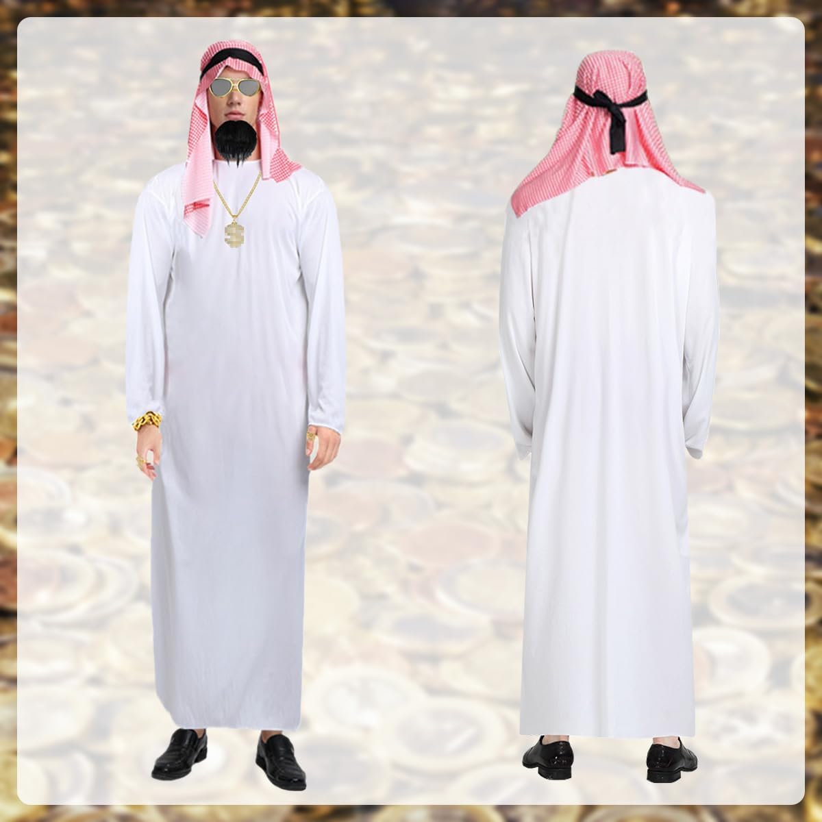 Descrizione del prodotto Costume arabo da uomo, Costume da sceicco, Costume arabo da sceicco, Costume cosplay da sceicco arabo, per carnevale in maschera, cosplay di Halloween Che tu ti stia preparando per Halloween, carnevale, festa in costume, festa a tema, carnevale o evento a tema, quando indossi questo costume da sceicco arabo da uomo a una festa a tema con gli amici, sembrerai molto elegante in mezzo a qualsiasi folla. Indossare il nostro costume da sceicco da uomo aggiungerà molto divertimento al tuo cosplay e ti divertirai a carnevale con la tua famiglia e i tuoi amici. Il costume da sceicco arabo è realizzato principalmente in tessuto di poliestere, comodo e morbido, facile da indossare e non facile da stropicciarsi. Quando indossi il costume da sceicco arabo, attirerai l'attenzione del pubblico e lascerai un'impressione profonda. Specifiche: Materiale principale: poliestere Dimensioni: come mostrato nell'immagine Colore: come mostrato nell'immagine Il pacchetto include: 1x costume da sceicco arabo 1x turbante 1x collana 1x braccialetto 2x anello 1x barba 1x occhiali da sole Nota: Si prega di consentire lievi errori di dimensione dovuti alla misurazione manuale. A causa delle diverse apparecchiature o illuminazione, il colore potrebbe differire leggermente dal colore reale del prodotto. Se hai domande, puoi contattarci. Avviso di sicurezza NO