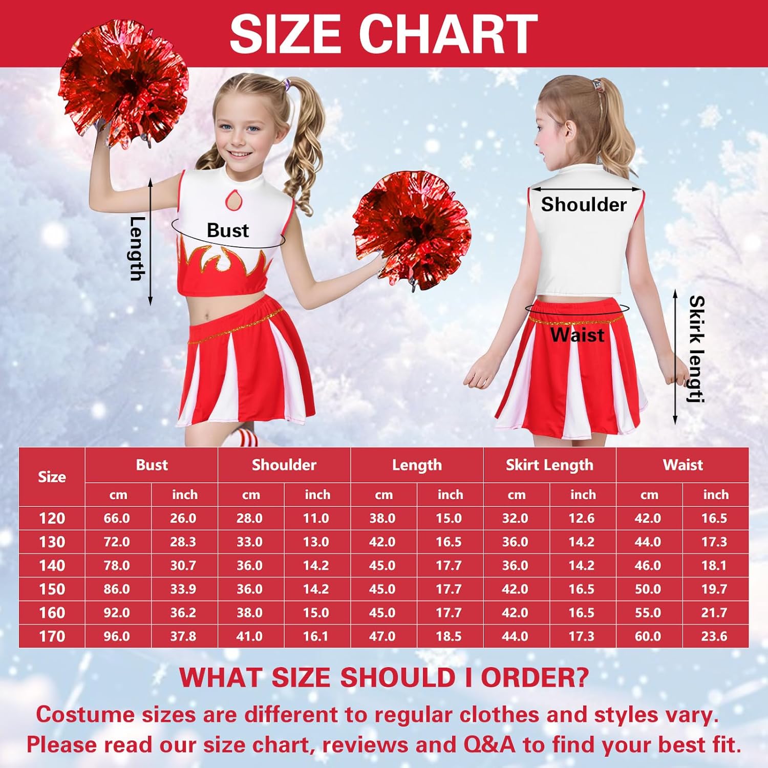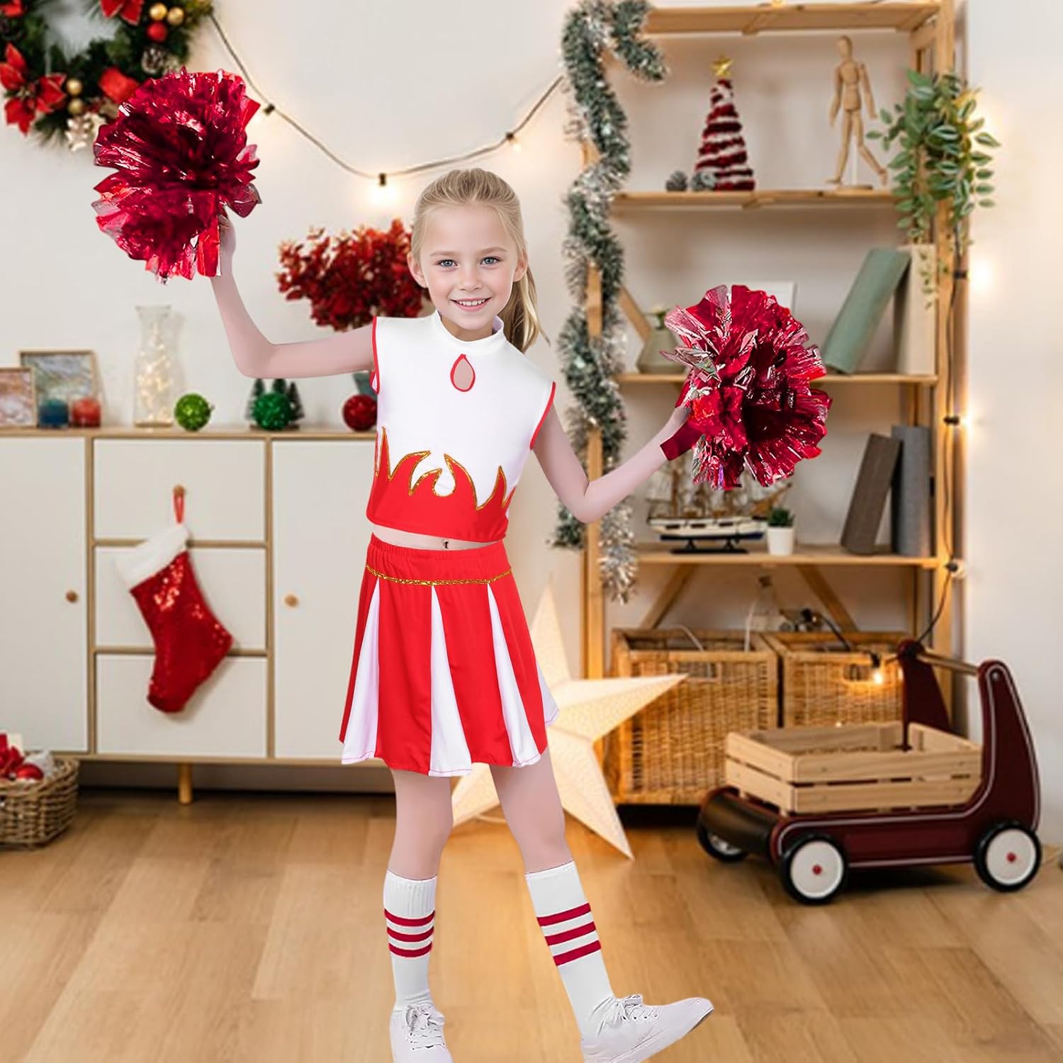 Costume Cheerleader Bambina, Vestito da Cheerleader Bambini Vestito Donna Pon Pon Festa Cosplay Carnevale Ragazze Halloween