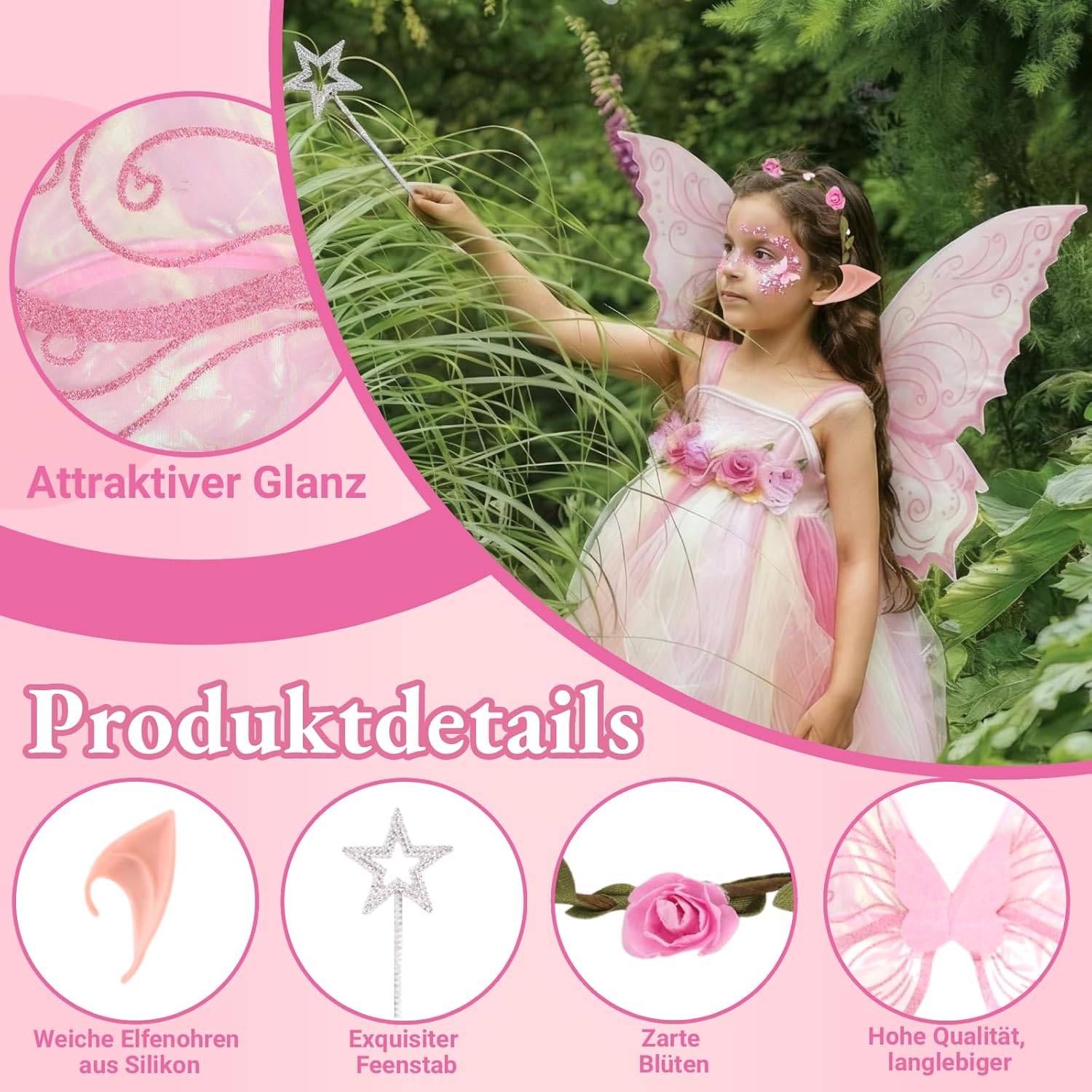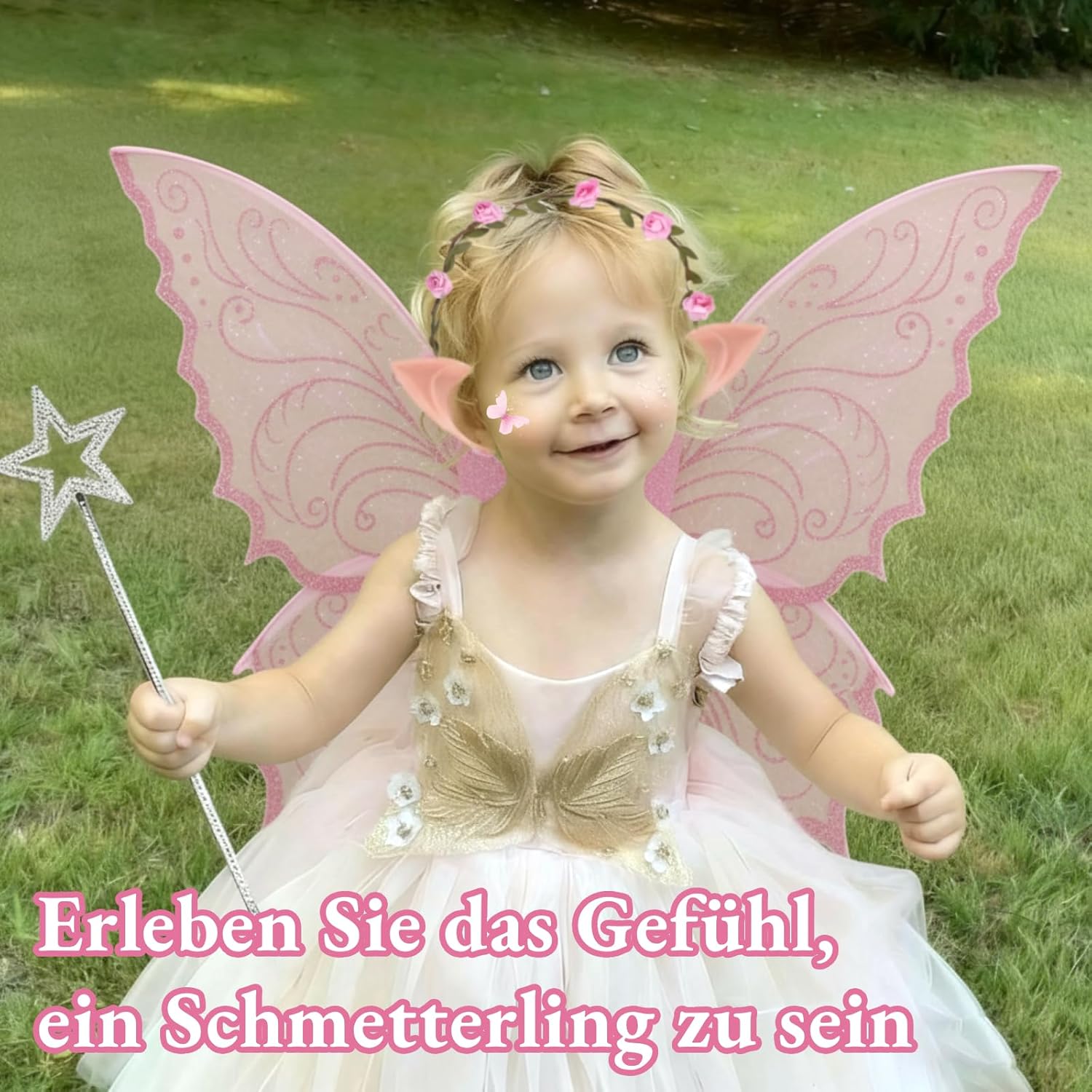 Set di ali da fata: riceverete 1 farfalla a forma di ali di fata, 1 cerchietto per capelli, 1 paio di orecchie da elfo, 1 bastone fatato a stella a cinque punte, 1 adesivo per il viso e 3 crogioli in polvere di paillettes. In questo modo completerete perfettamente il vostro outfit e attirerete l'attenzione alla festa Stile unico: la ghirlanda squisita e unica, le orecchie da elfo e le ali delle fate sono gli accessori perfetti per il tuo costume da principessa elfo. Le ali delle fate emanano un'atmosfera fiabesca, indossatele e diventate la più bella fata delle farfalle. Dai al tuo aspetto un look radioso e incantevole Materiali di alta qualità: le ali delle fate sono realizzate in organza con magico effetto glitterato, che brilla in modo diverso a seconda delle condizioni di luce. La robusta struttura ad arco permette di piegare le ali della farfalla senza rompersi, rendendole leggere e resistenti. Ogni coppia di ali è dotata di un elastico che si adatta facilmente alle spalle e alla schiena Regalo fatato: ogni ragazza sogna di diventare una fata. Questo costume da fata è adatto per bambini e adulti e perfetto per la tua principessa. Portare la sua gioia e felicità. Indossalo e trasformati in una bellissima fata che balla tra i fiori Adatto a tutte le occasioni: questo splendido set di ali da fata è perfetto per feste a tema, feste delle fate, carnevale, Halloween, Natale, feste in maschera, matrimoni, compleanni, spettacoli sul palcoscenico e uso quotidiano. È adatto anche come oggetto di scena per molte foto interessanti