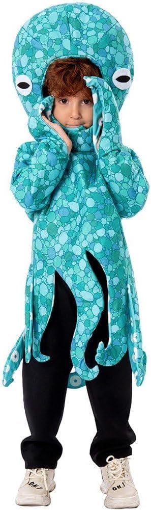 Design unico: i colori vivaci e il design unico ti fanno distinguere dalla massa. Regalo perfetto: è molto adatto come regalo per bambini, famiglia, compagni di classe e chiunque ami i giochi di ruolo. Materiali di alta qualità: tuta monopezzo polpo è realizzata in tessuto di poliestere di alta qualità, morbido e confortevole, traspirante e può essere utilizzata a lungo. Applicabile: questo è un costume appositamente progettato per festival, feste a tema oceanico, spettacoli e altro. Costume polipo: questo costume è artigianale, è comodo, ha una buona consistenza ed è sicuro usare.