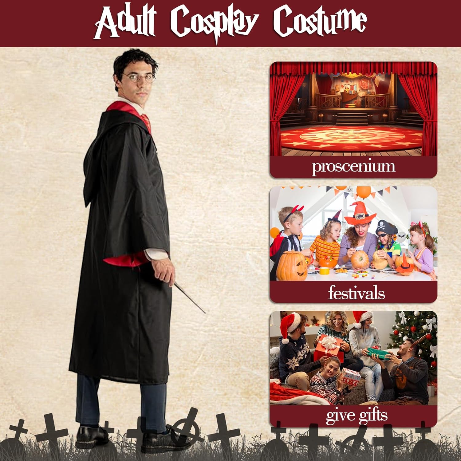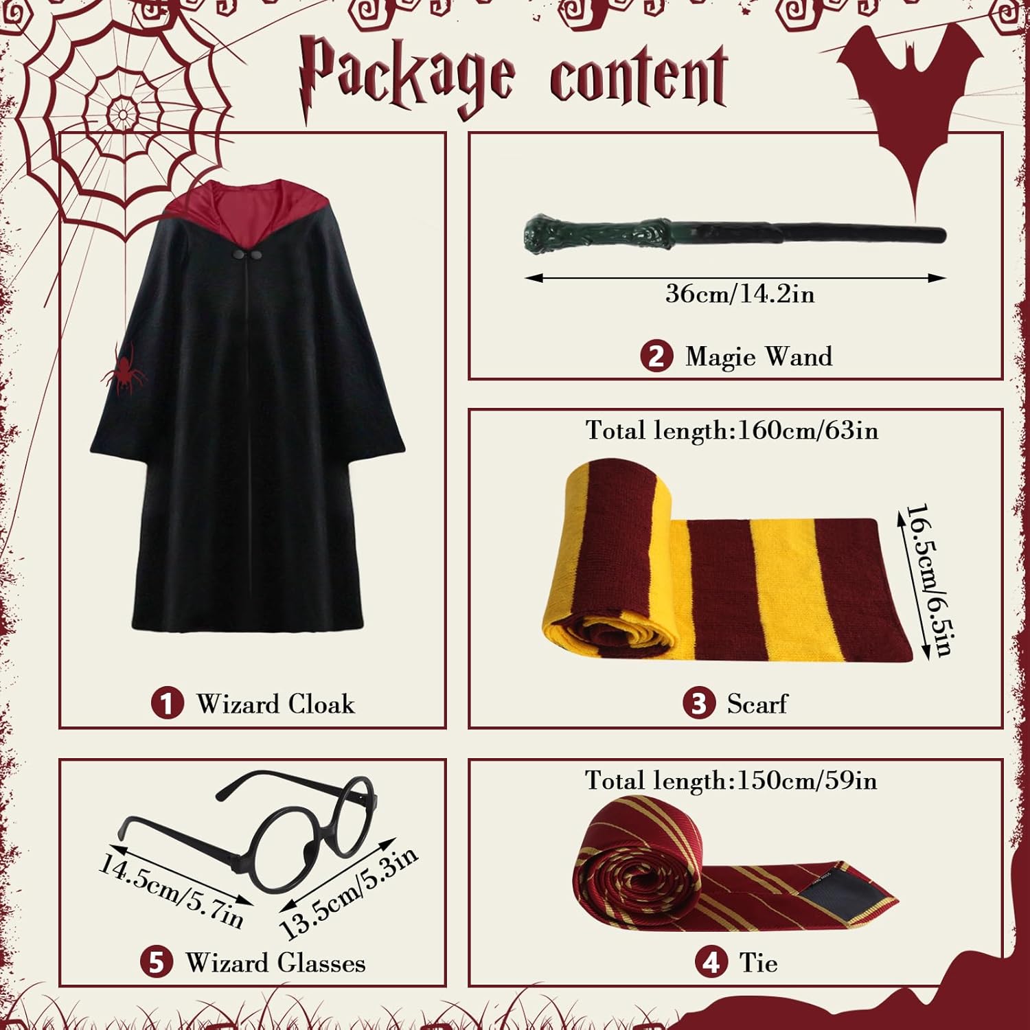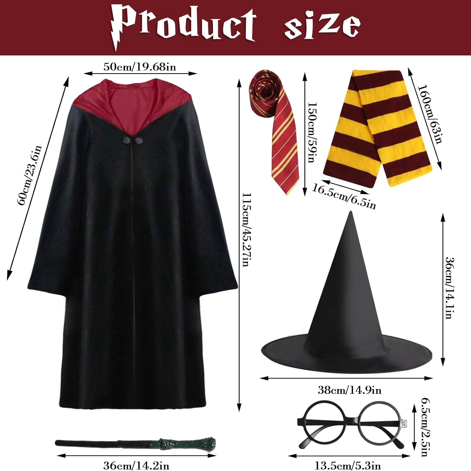 Costume cosplay da mago, veste da mago da 7 pezzi per adulti con mantello, cappello, bacchetta magica, cravatta, sciarpa, collana e occhiali, uniforme unisex per adulti Costumi cosplay di carnevale di Halloween
